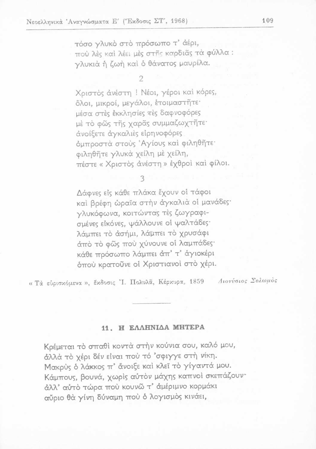 Σχολικό εγχειρίδιο Νέων Ελληνικών Ε΄ Γυμνασίου που περιέχει πεζά και ποιήματα συγγραφέων της βυζαντινής και μεταβυζαντινής περιόδου πατριωτικού και θρησκευτικού περιεχομένου. Περιλαμβάνει και πεζά και ποιήματα