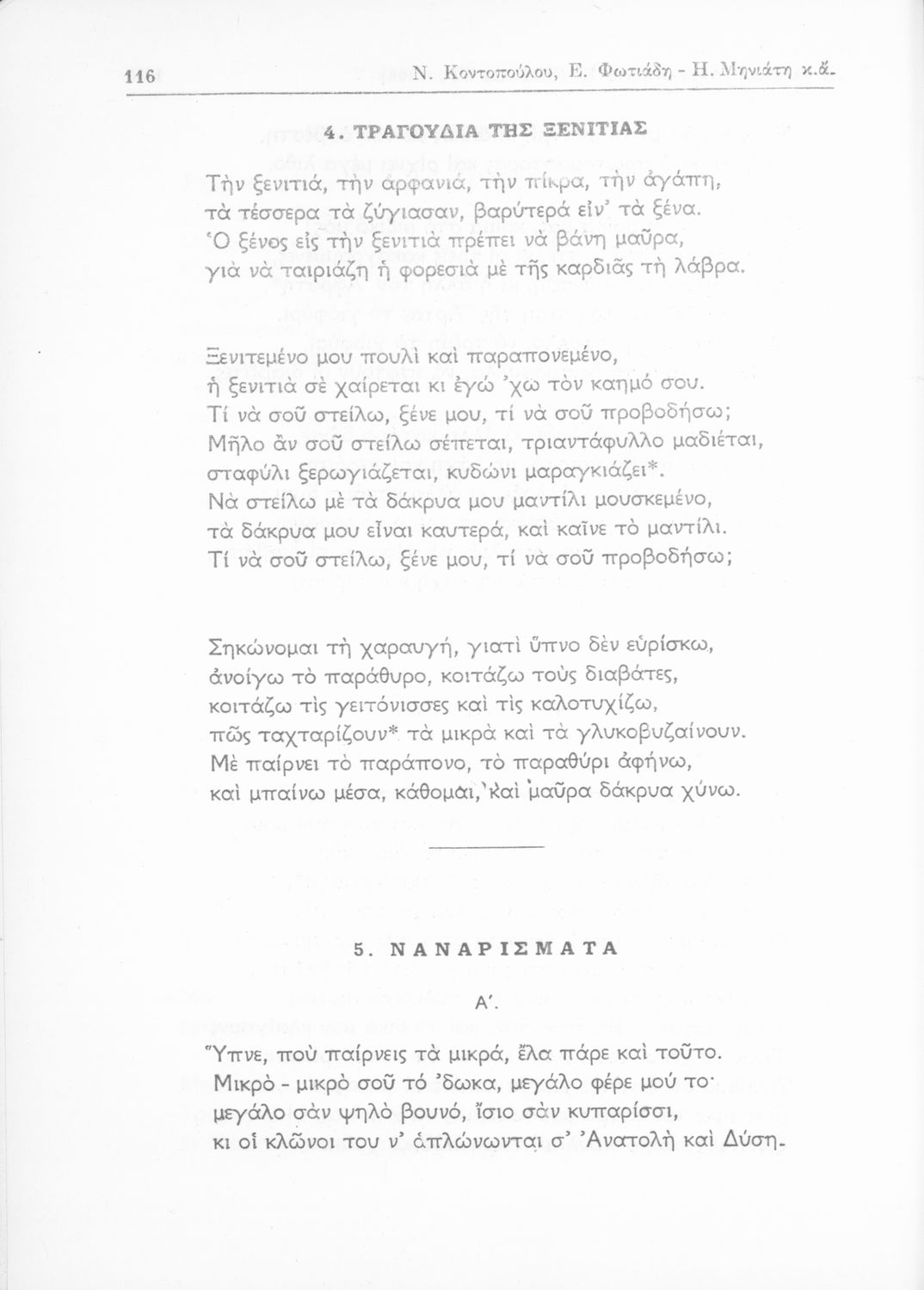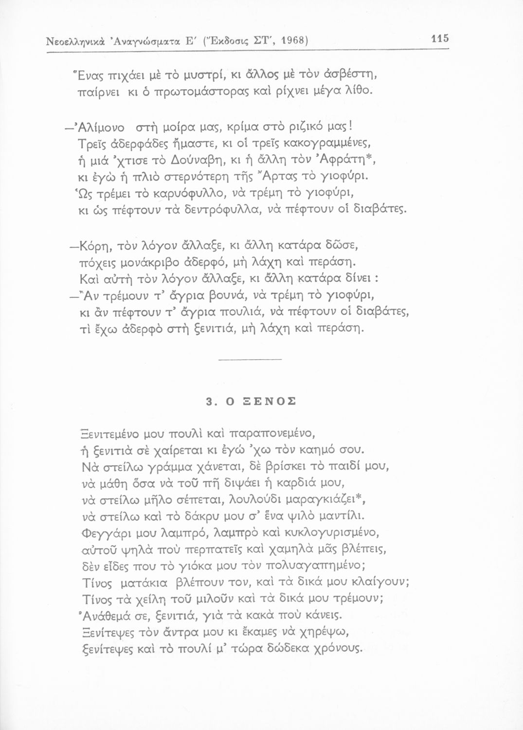 Σχολικό εγχειρίδιο Νέων Ελληνικών Ε΄ Γυμνασίου που περιλαμβάνει κείμενα Ελλήνων συγγραφέων και δημοτικά τραγούδια με θέματα από την σύγχρονη ελληνική ιστορία, τη θρησκευτική παράδοση, την οικογενειακή ζωή, και
