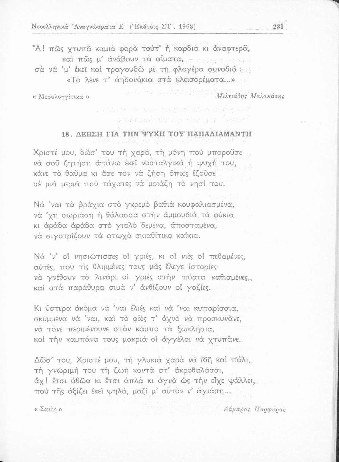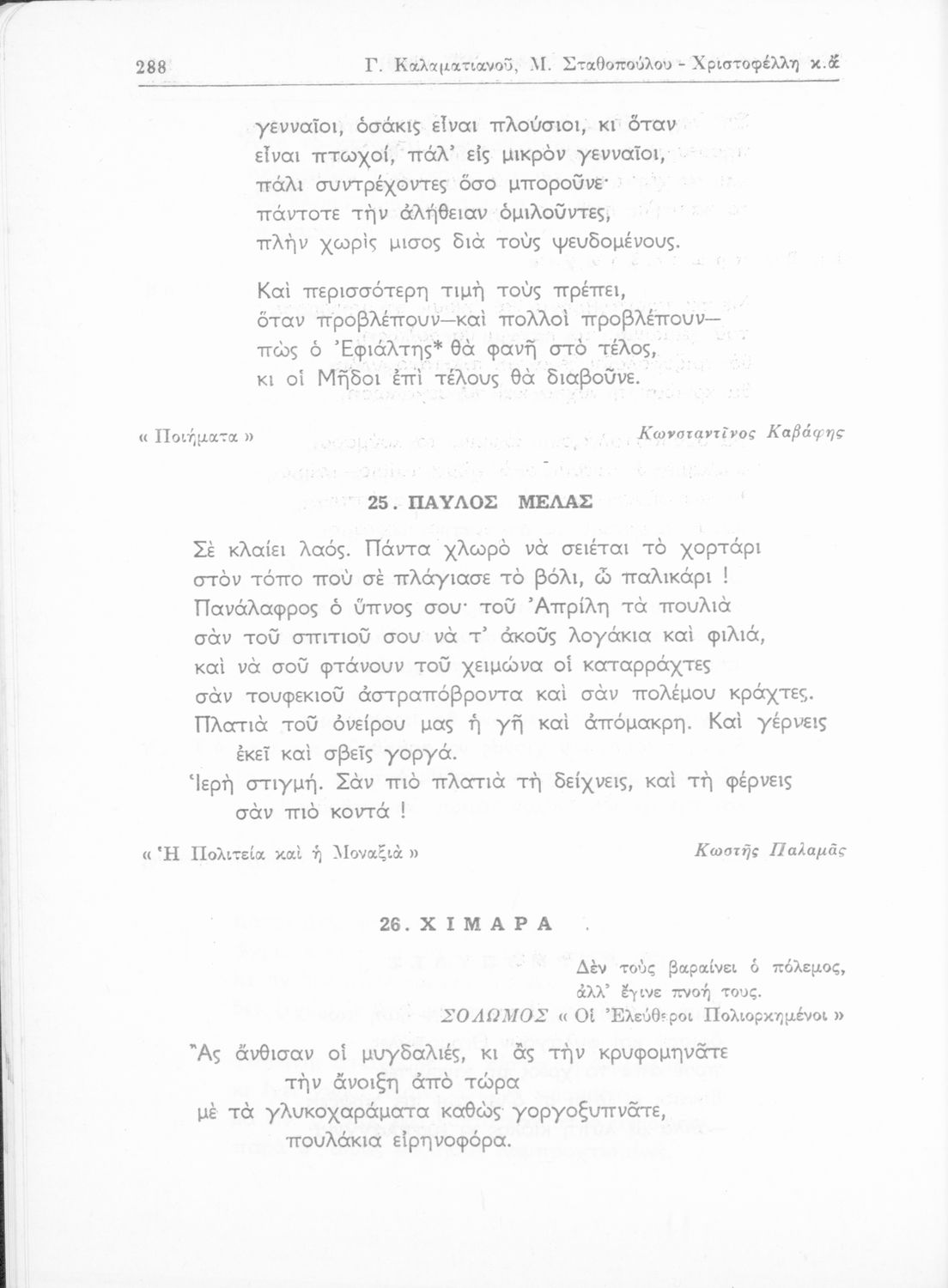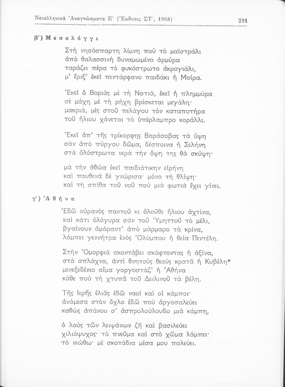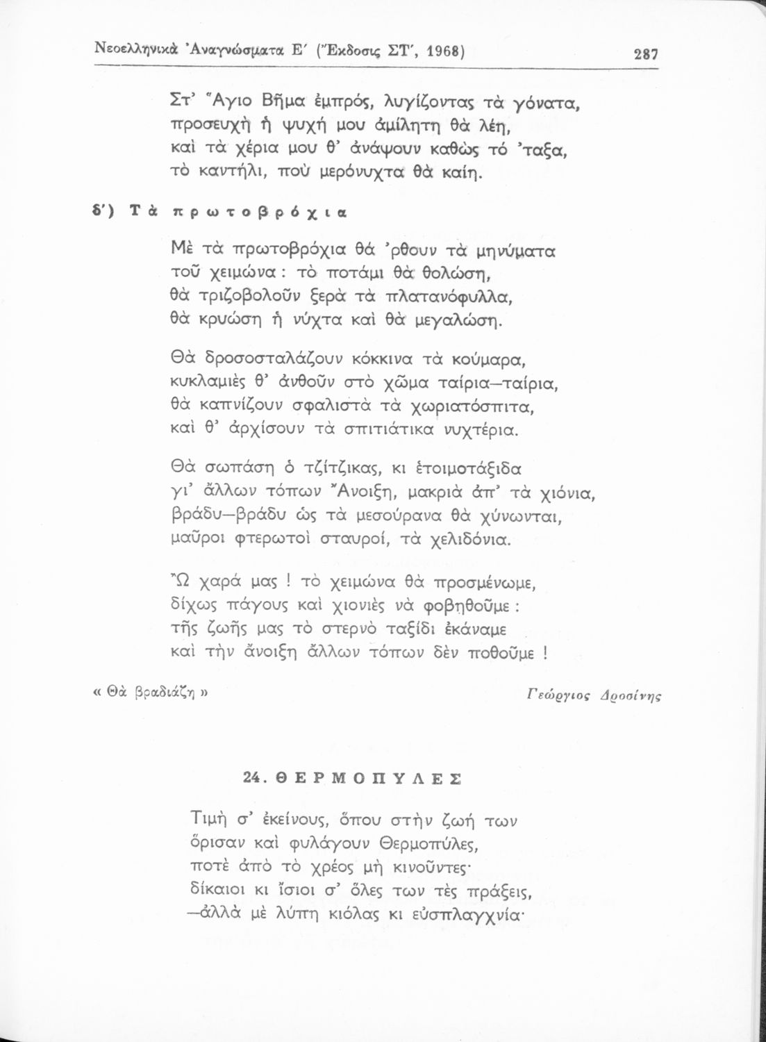 Σχολικό εγχειρίδιο Νέων Ελληνικών Ε΄ Γυμνασίου που περιέχει πεζά και ποιήματα συγγραφέων της βυζαντινής και μεταβυζαντινής περιόδου πατριωτικού και θρησκευτικού περιεχομένου. Περιλαμβάνει και πεζά και ποιήματα