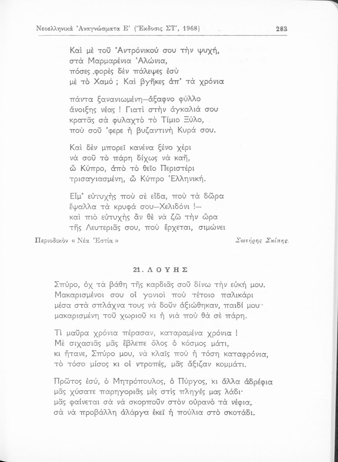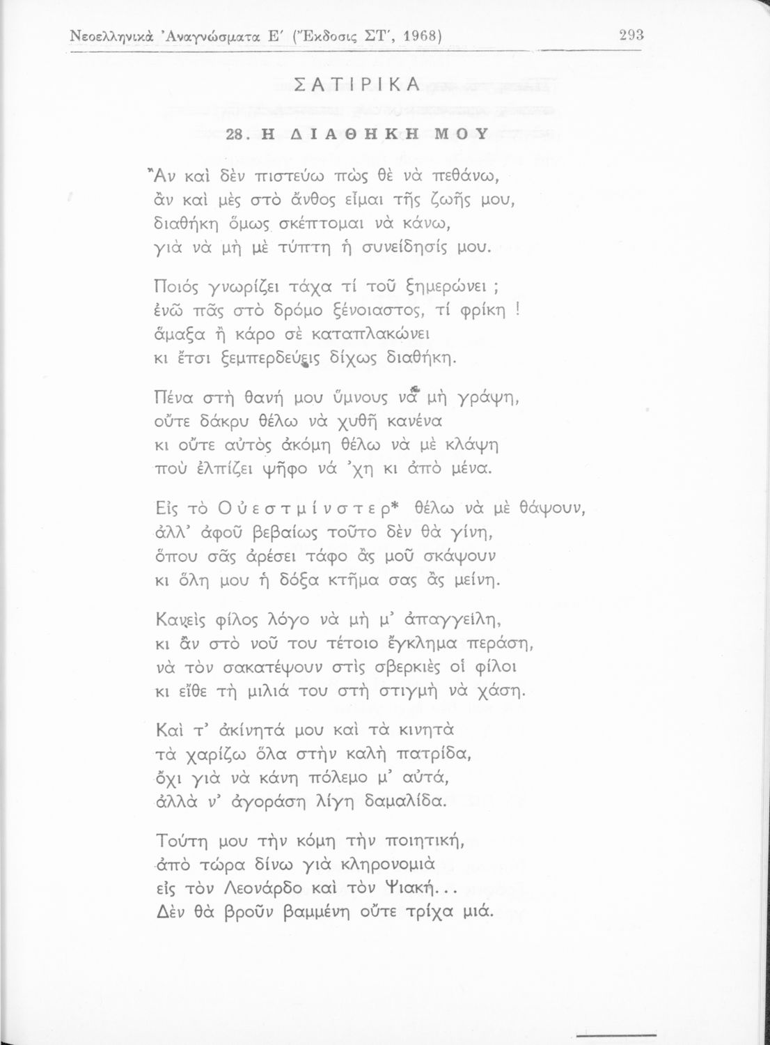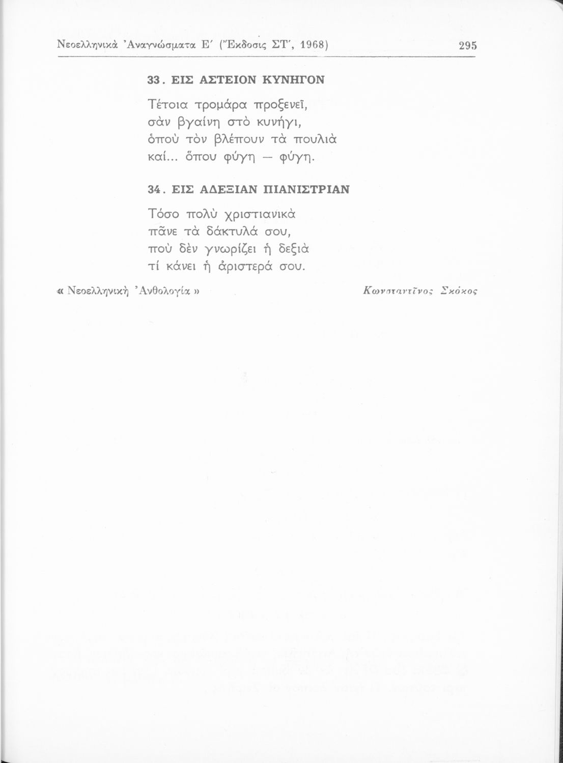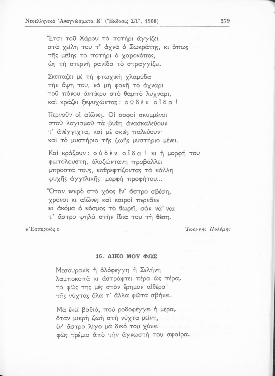 Σχολικό εγχειρίδιο Νέων Ελληνικών Ε΄ Γυμνασίου που περιέχει πεζά και ποιήματα συγγραφέων της βυζαντινής και μεταβυζαντινής περιόδου πατριωτικού και θρησκευτικού περιεχομένου. Περιλαμβάνει και πεζά και ποιήματα