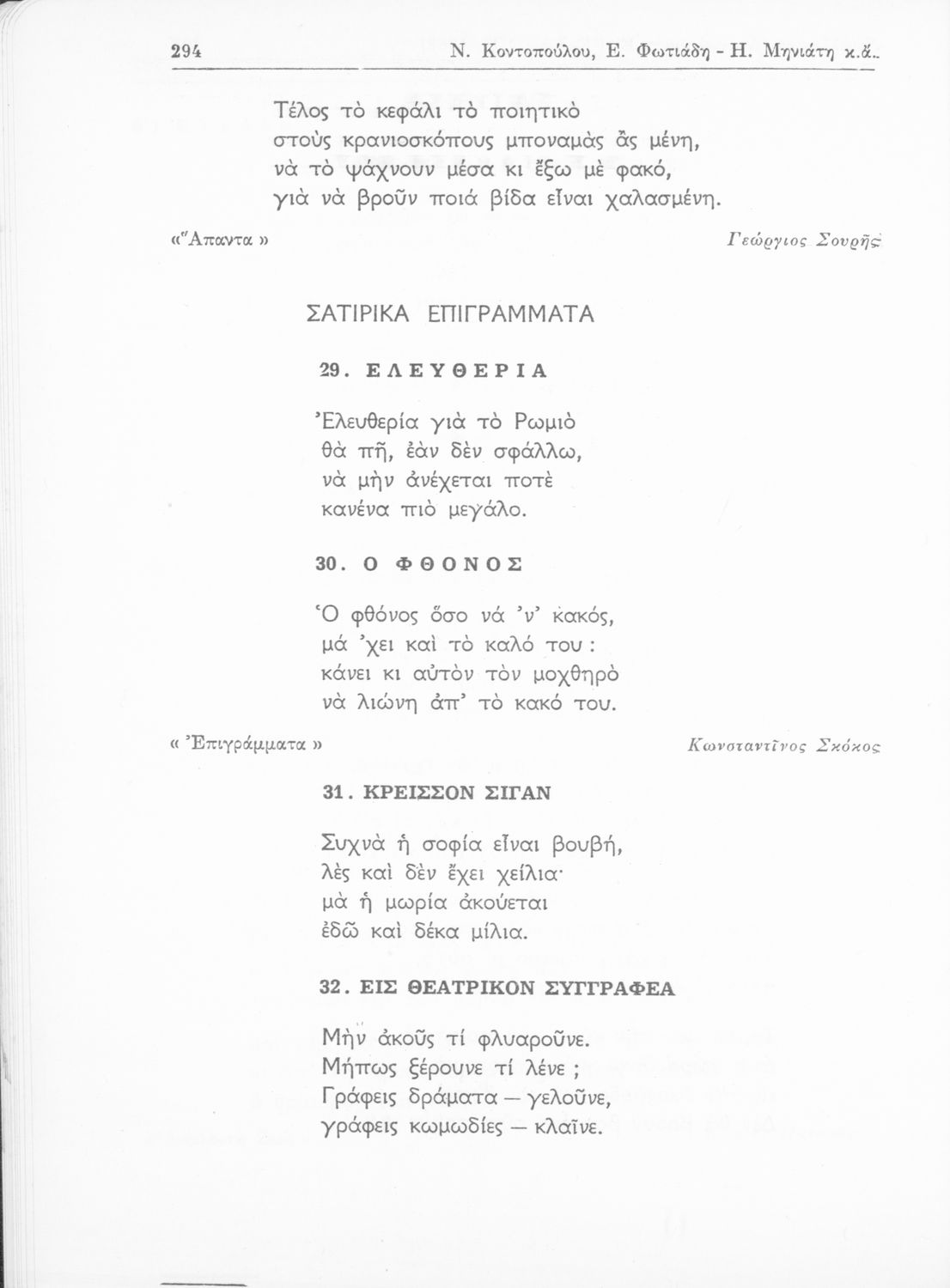Γ. Καλαματιανός, Μ. Σταθοπούλου-Χριστοφέλλη, Ν. Κοντόπουλος, Ευ Φωτιάδης, Ηλ. Μηνιάτης