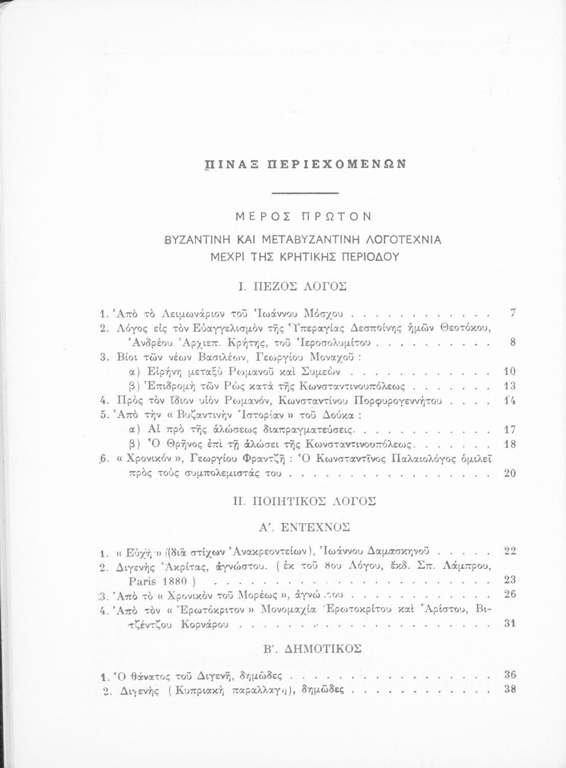 Σχολικό εγχειρίδιο Νέων Ελληνικών Ε΄ Γυμνασίου που περιέχει πεζά και ποιήματα συγγραφέων της βυζαντινής και μεταβυζαντινής περιόδου πατριωτικού και θρησκευτικού περιεχομένου. Περιλαμβάνει και πεζά και ποιήματα