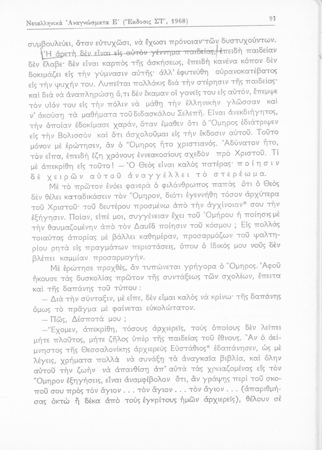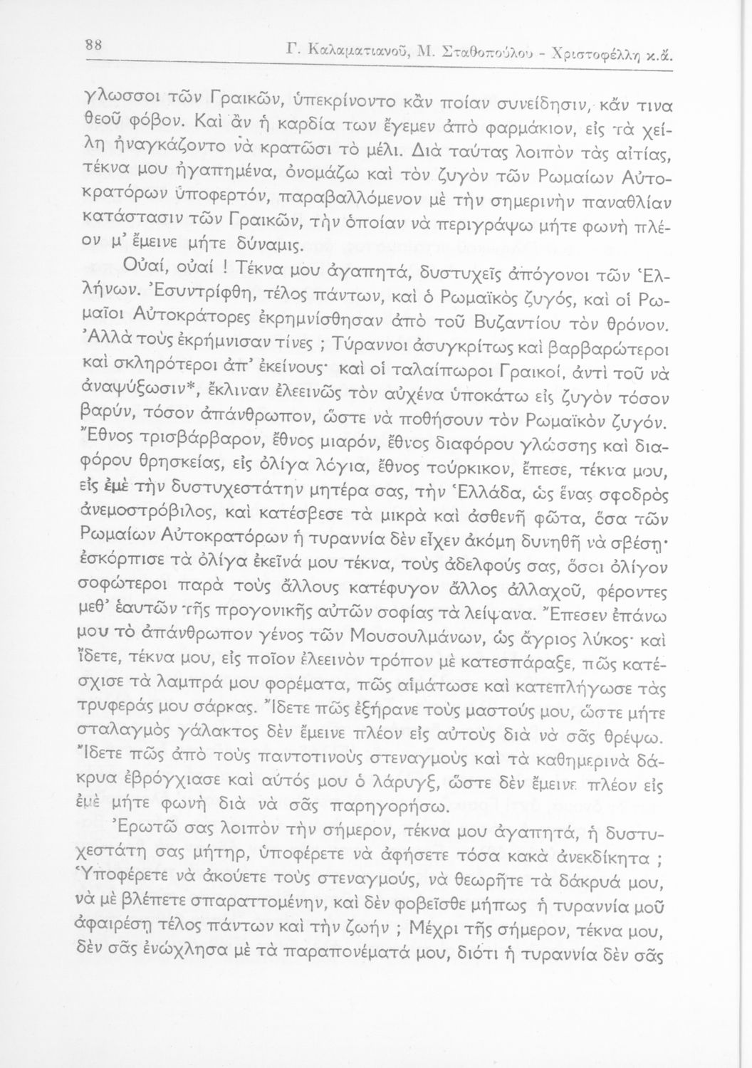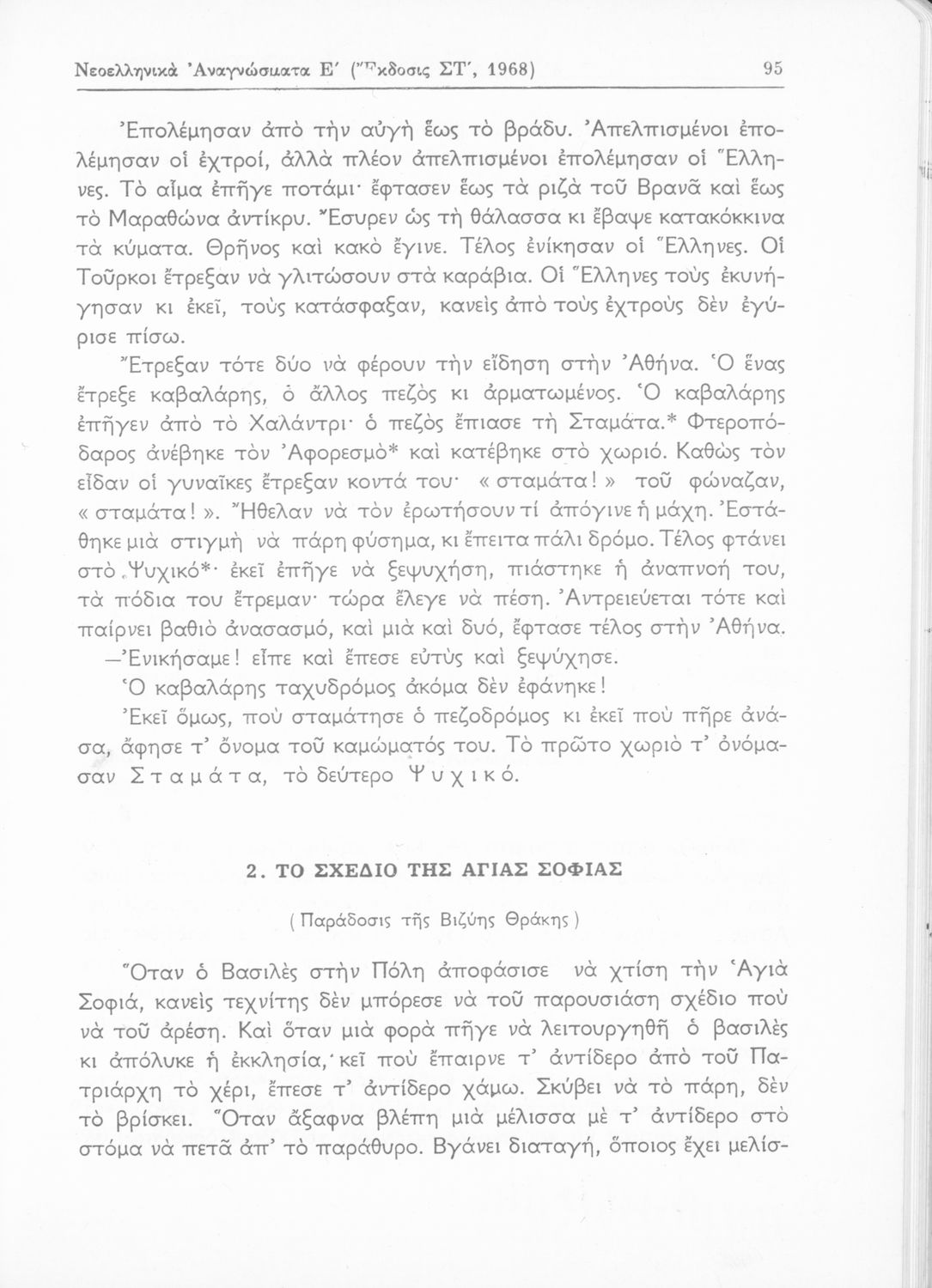 Σχολικό εγχειρίδιο Νέων Ελληνικών Ε΄ Γυμνασίου που περιέχει πεζά και ποιήματα συγγραφέων της βυζαντινής και μεταβυζαντινής περιόδου πατριωτικού και θρησκευτικού περιεχομένου. Περιλαμβάνει και πεζά και ποιήματα