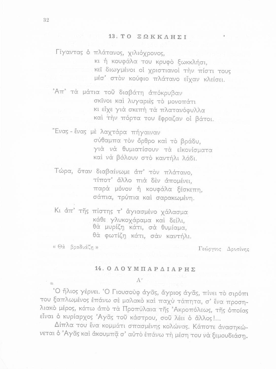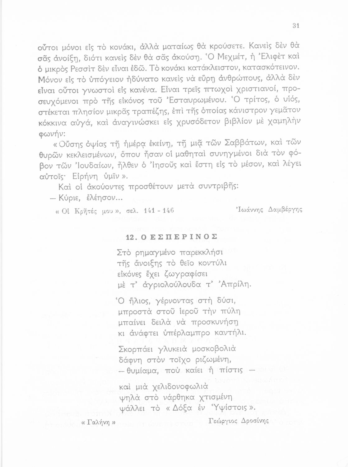 Σχολικό εγχειρίδιο Νέων Ελληνικών Β' Γυμνασίου που περιέχει ποιήματα και πεζά Ελλήνων συγγραφέων εμπνευσμένα από τη θρησκευτική, εθνική, οικογενειακή και κοινωνική ζωή και την ελληνική φύση. Περιέχει παράρτημα με βιογραφίες των συγγραφέων και λεξιλόγιο. Φέρει το σύμβολο της δικτατορίας.