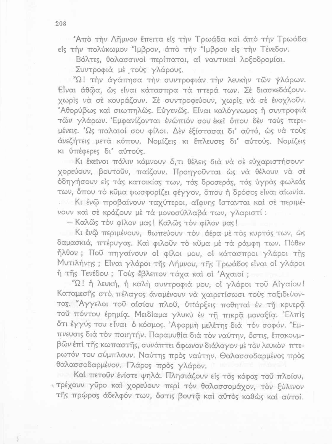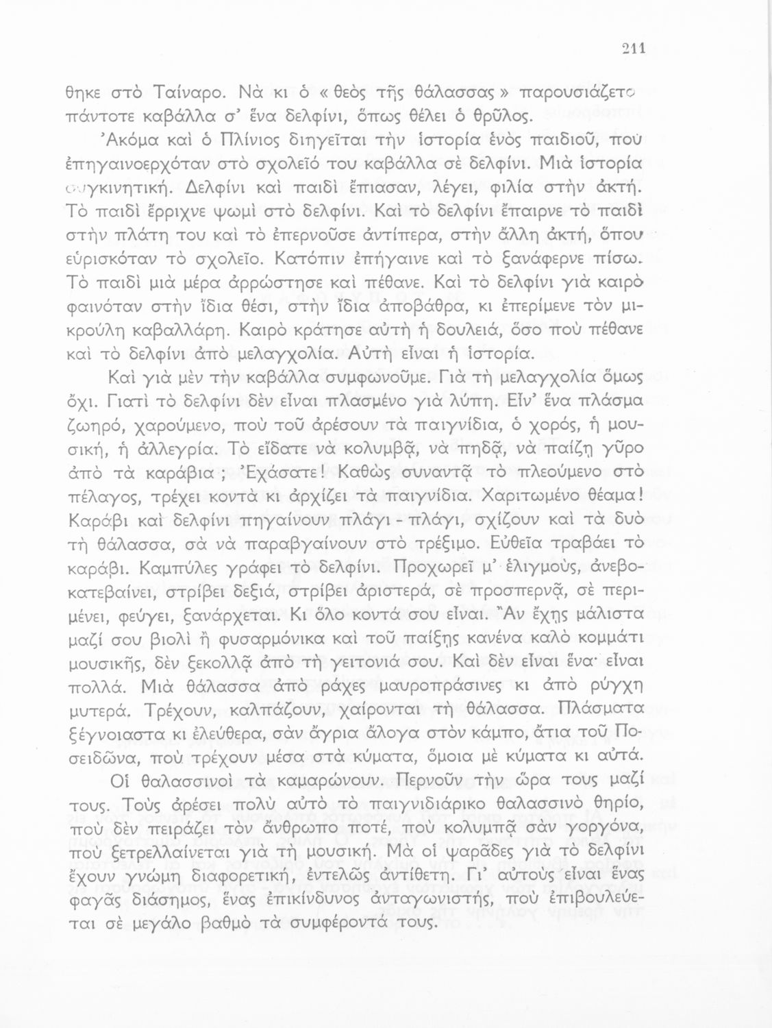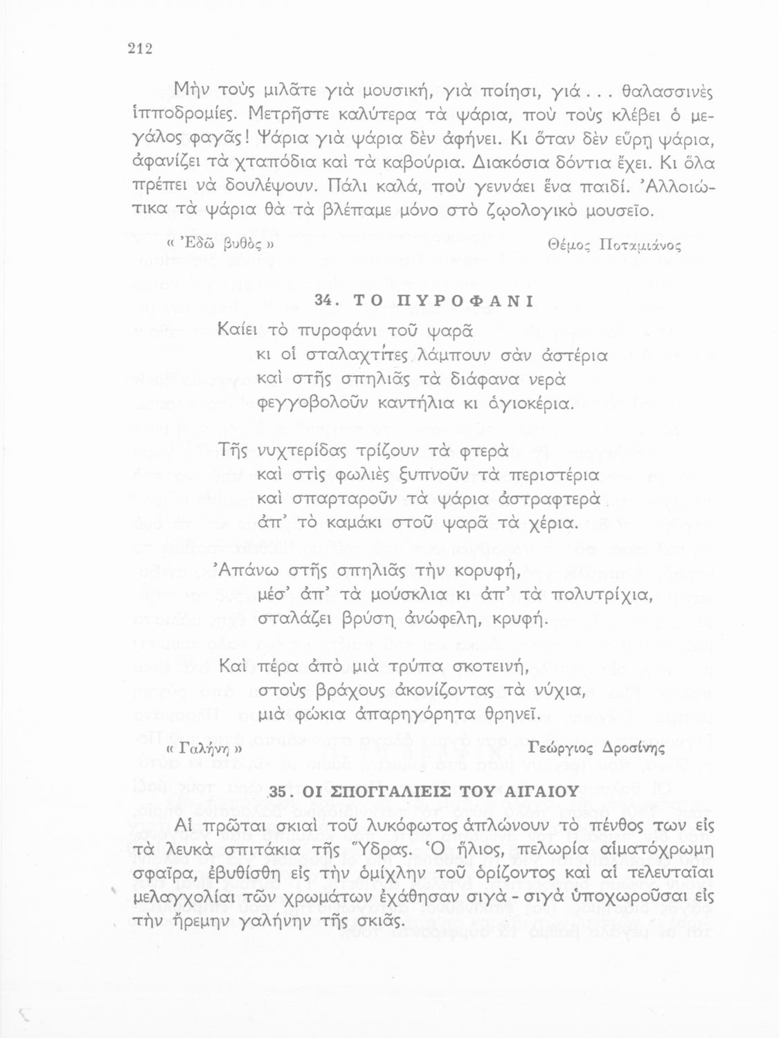 Σχολικό εγχειρίδιο Νέων Ελληνικών Β' Γυμνασίου που περιέχει ποιήματα και πεζά Ελλήνων συγγραφέων εμπνευσμένα από τη θρησκευτική, εθνική, οικογενειακή και κοινωνική ζωή και την ελληνική φύση. Περιέχει παράρτημα με βιογραφίες των συγγραφέων και λεξιλόγιο. Φέρει το σύμβολο της δικτατορίας.