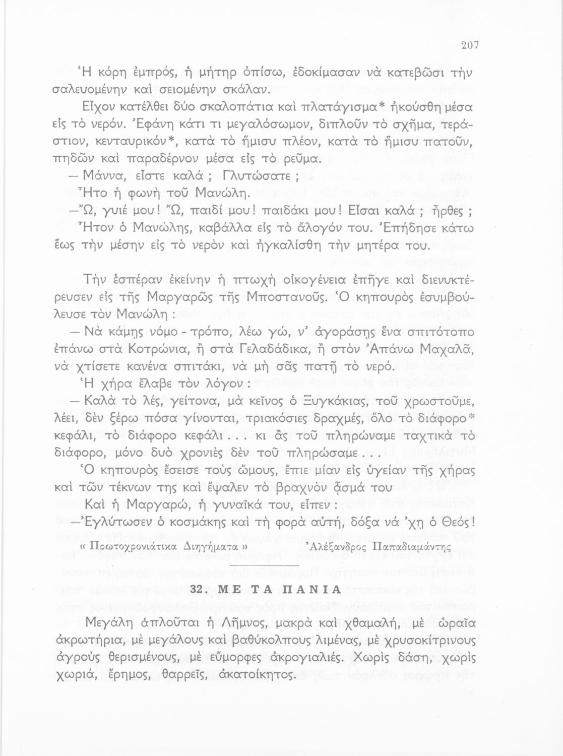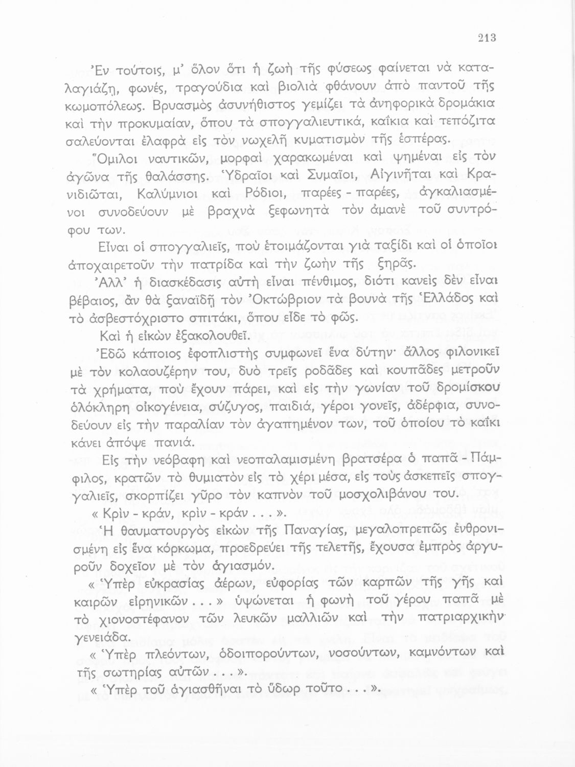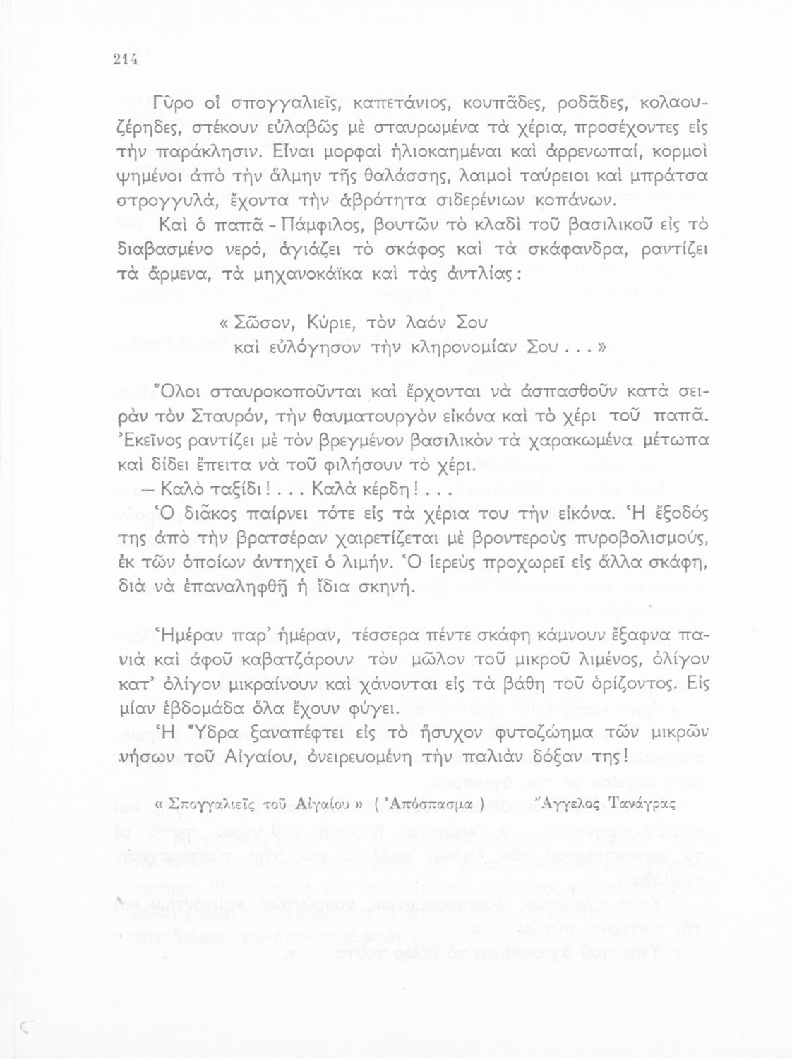 Σχολικό εγχειρίδιο Νέων Ελληνικών Β' Γυμνασίου που περιέχει ποιήματα και πεζά Ελλήνων συγγραφέων εμπνευσμένα από τη θρησκευτική, εθνική, οικογενειακή και κοινωνική ζωή και την ελληνική φύση. Περιέχει παράρτημα με βιογραφίες των συγγραφέων και λεξιλόγιο. Φέρει το σύμβολο της δικτατορίας.