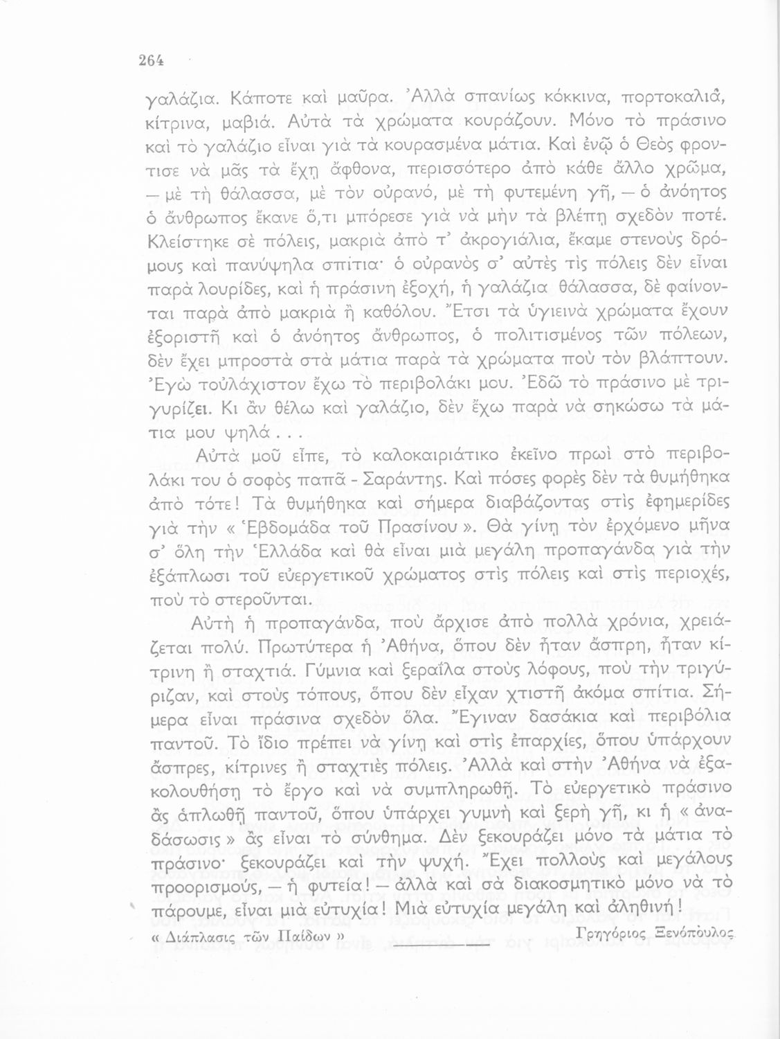 Σχολικό εγχειρίδιο Νέων Ελληνικών Β' Γυμνασίου που περιέχει ποιήματα και πεζά Ελλήνων συγγραφέων εμπνευσμένα από τη θρησκευτική, εθνική, οικογενειακή και κοινωνική ζωή και την ελληνική φύση. Περιέχει παράρτημα με βιογραφίες των συγγραφέων και λεξιλόγιο. Φέρει το σύμβολο της δικτατορίας.