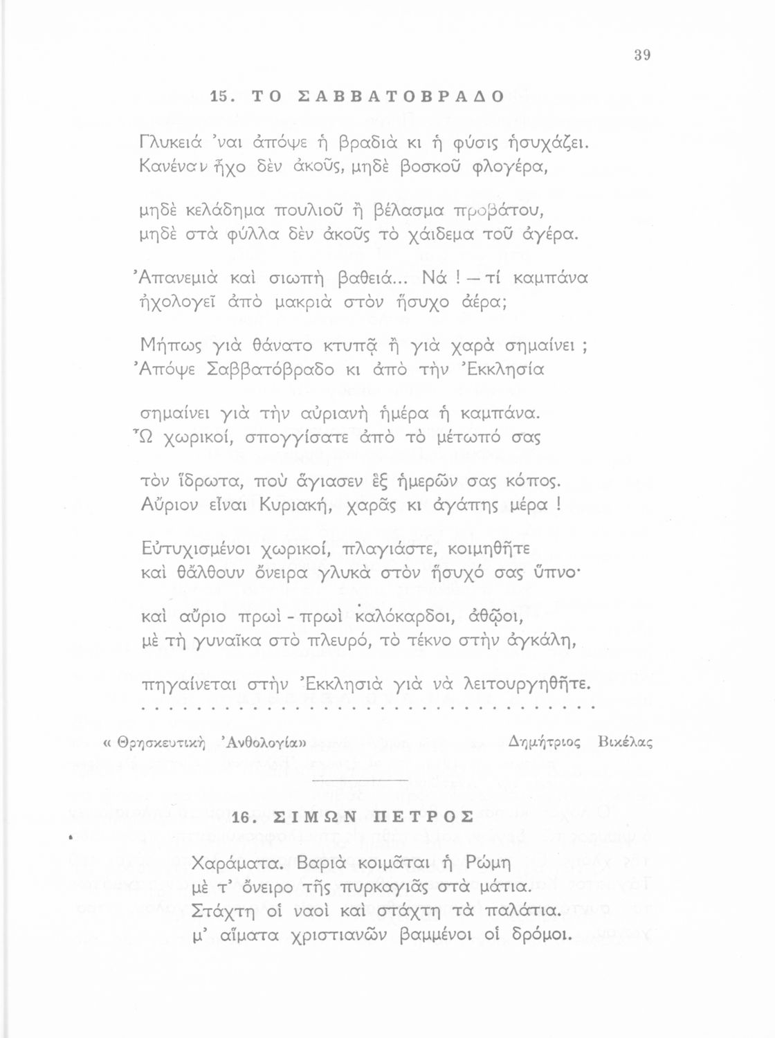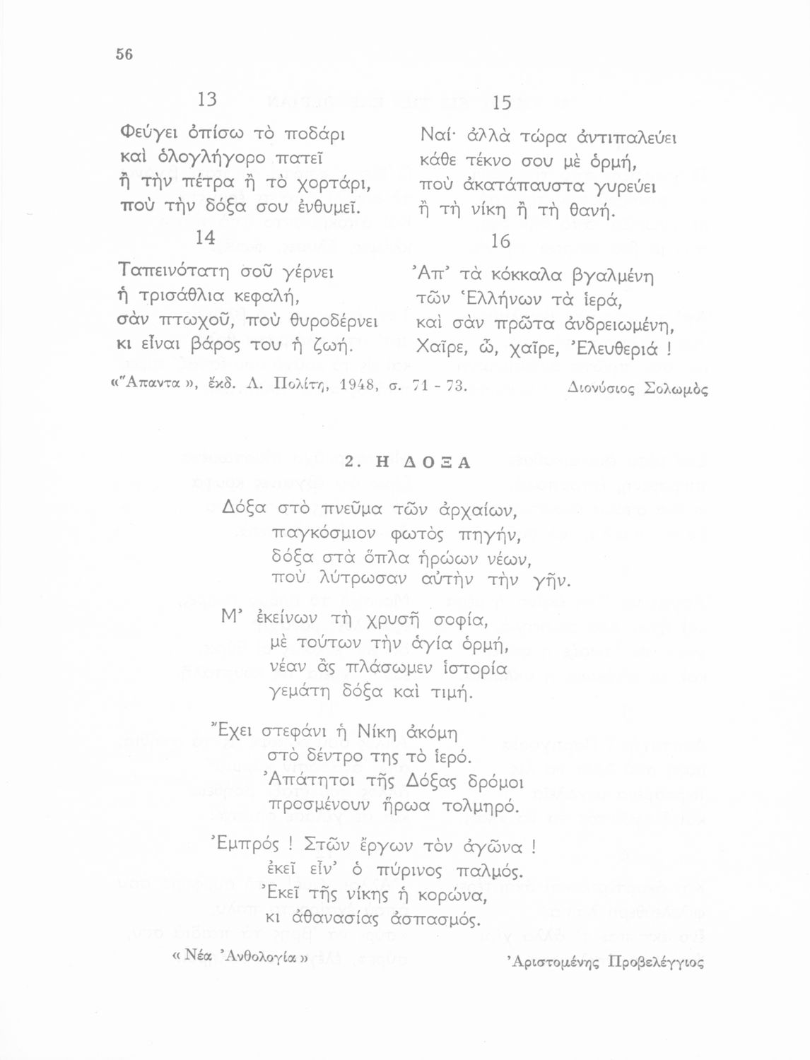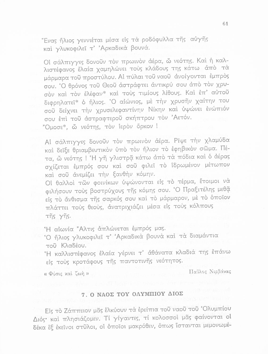 Σχολικό εγχειρίδιο Νέων Ελληνικών Β' Γυμνασίου που περιέχει ποιήματα και πεζά Ελλήνων συγγραφέων εμπνευσμένα από τη θρησκευτική, εθνική, οικογενειακή και κοινωνική ζωή και την ελληνική φύση. Περιέχει παράρτημα με βιογραφίες των συγγραφέων και λεξιλόγιο. Φέρει το σύμβολο της δικτατορίας.