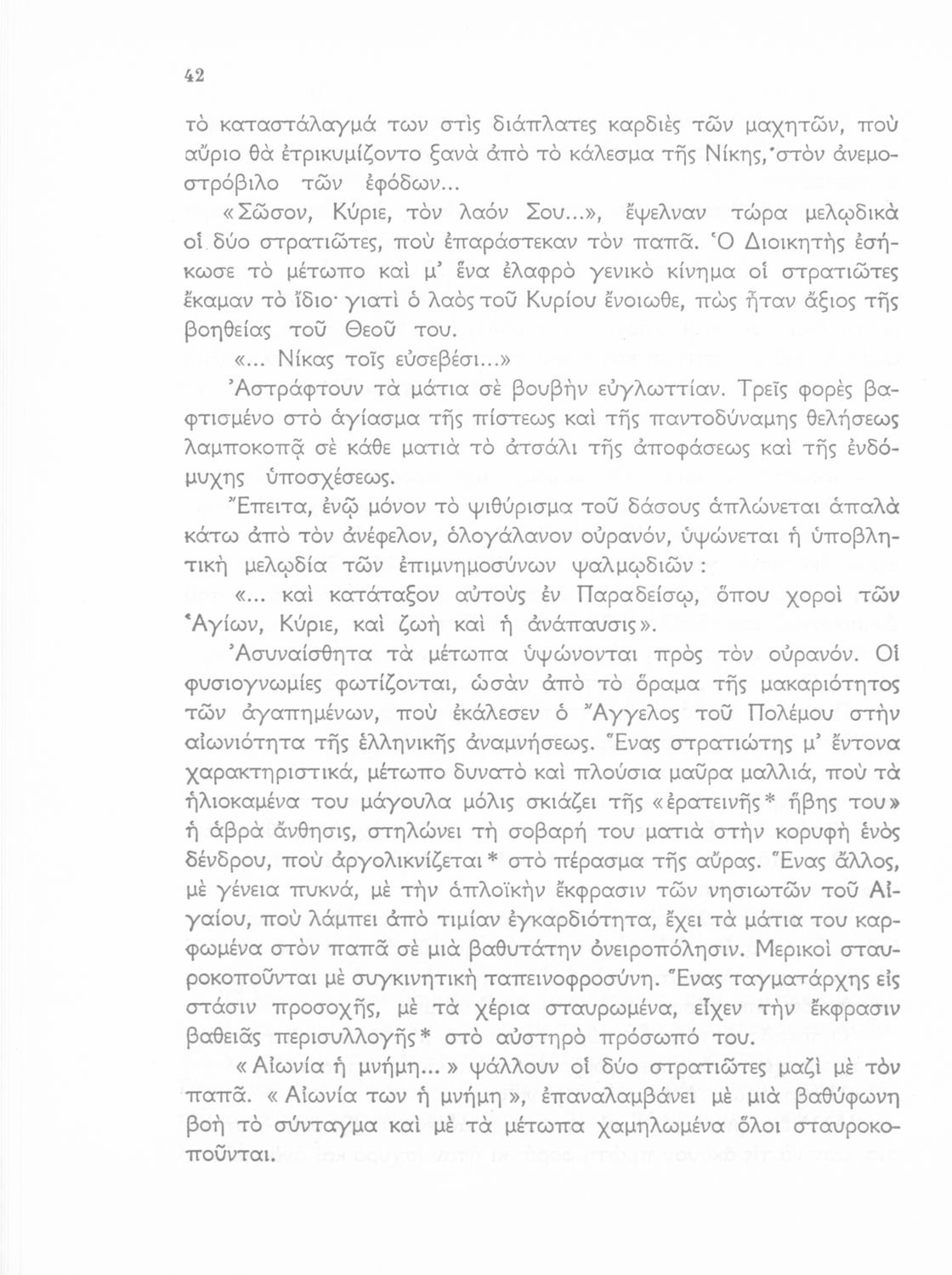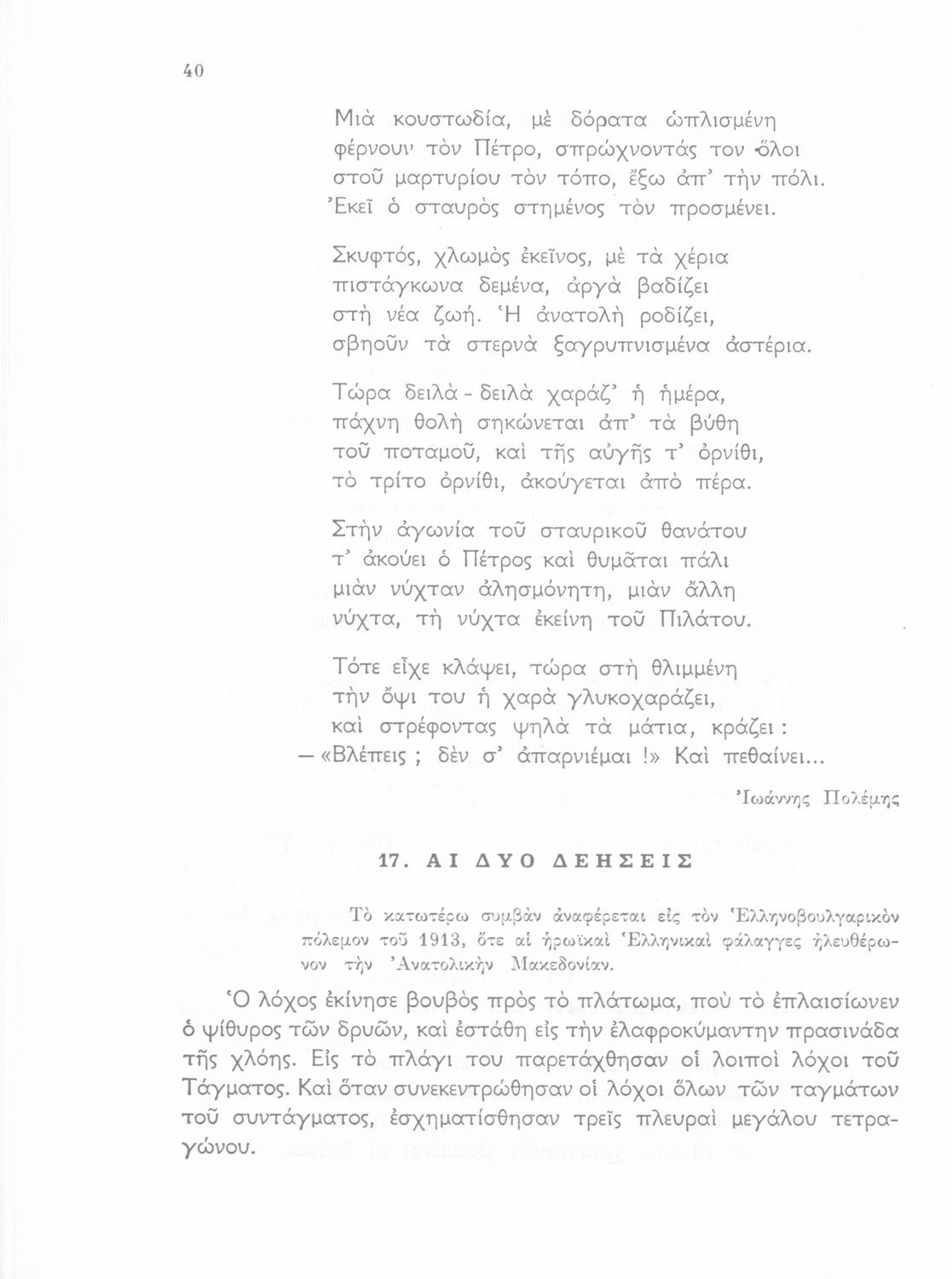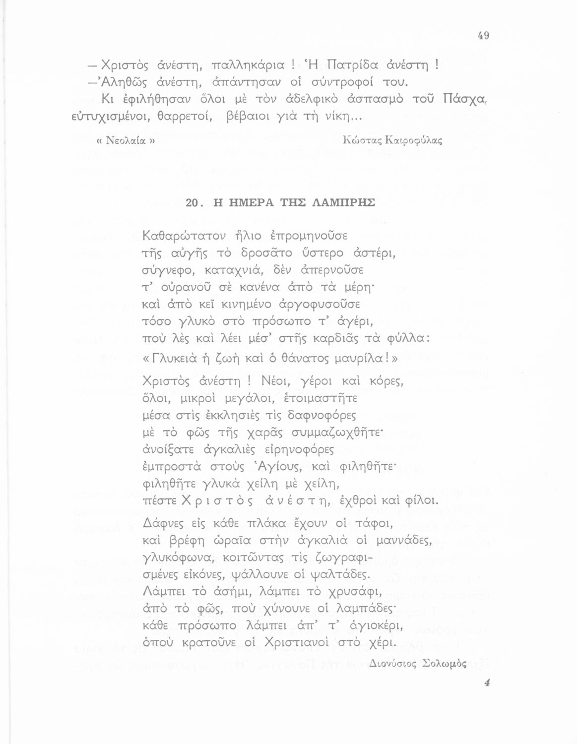 Σχολικό εγχειρίδιο Νέων Ελληνικών Β' Γυμνασίου που περιέχει ποιήματα και πεζά Ελλήνων συγγραφέων εμπνευσμένα από τη θρησκευτική, εθνική, οικογενειακή και κοινωνική ζωή και την ελληνική φύση. Περιέχει παράρτημα με βιογραφίες των συγγραφέων και λεξιλόγιο. Φέρει το σύμβολο της δικτατορίας.