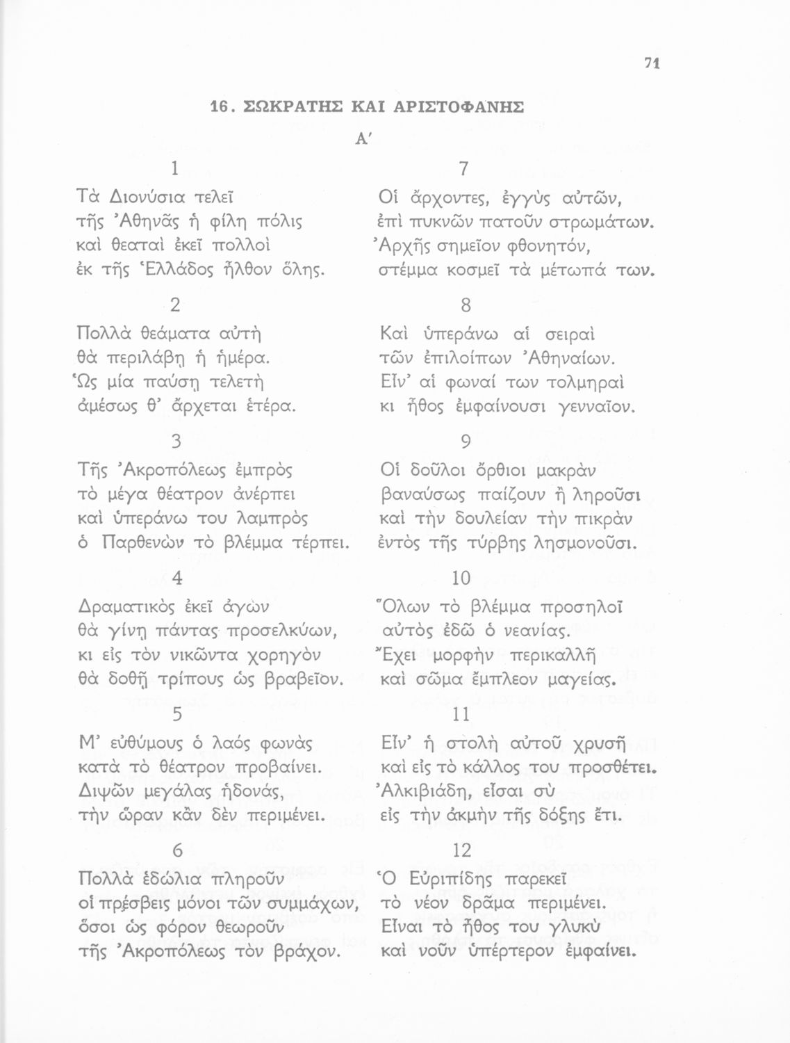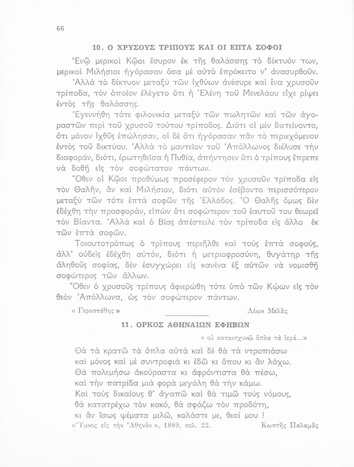 Σχολικό εγχειρίδιο Νέων Ελληνικών Δ΄ Γυμνασίου και Β΄ Αστικού Σχολείου που περιέχει πεζά και ποιήματα Ελλήνων συγγραφέων εμπνευσμένα από τη θρησκευτική και κοινωνική ζωή, την ελληνική μυθολογία, την αρχαία και