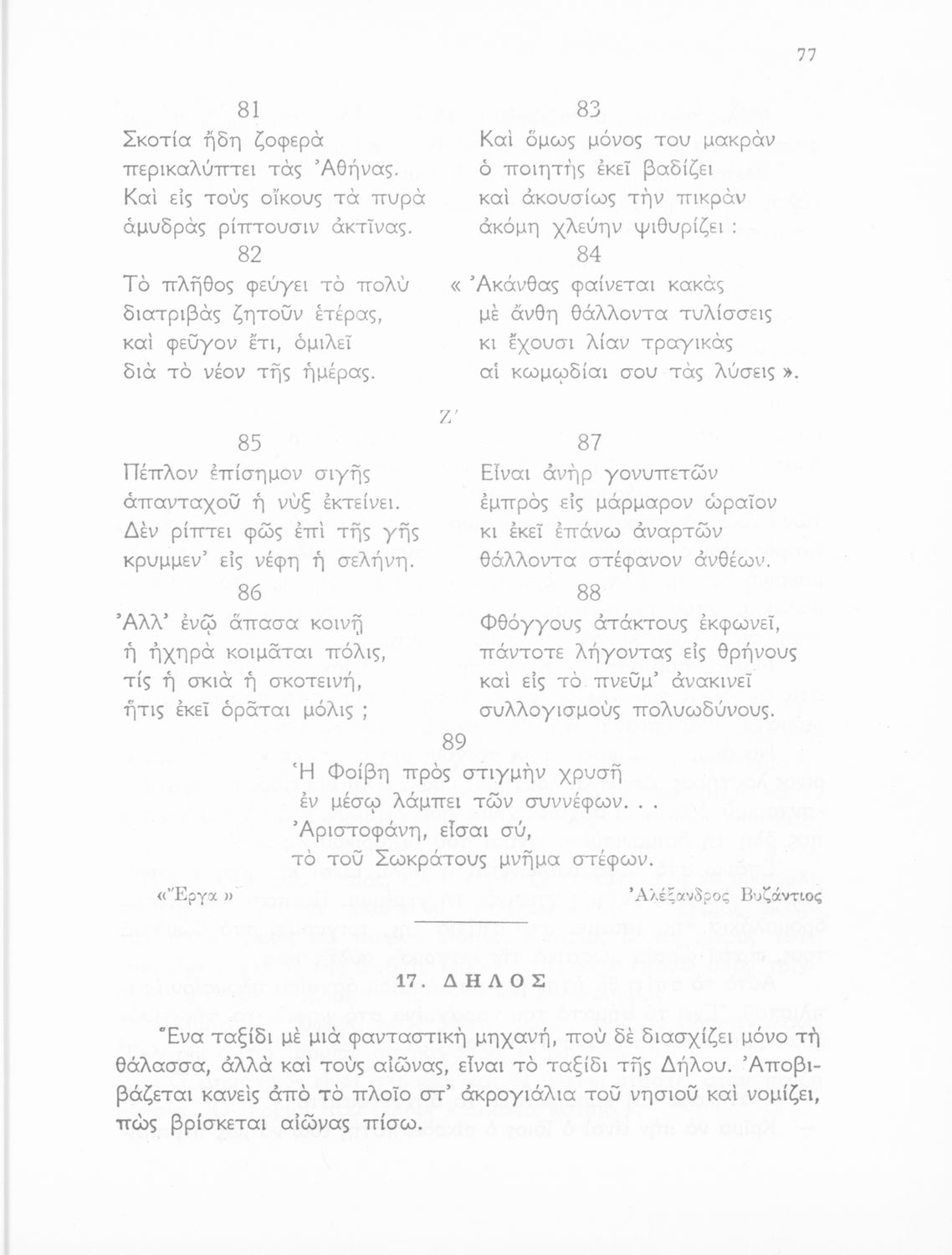 Σχολικό εγχειρίδιο Νέων Ελληνικών Β' Γυμνασίου που περιέχει ποιήματα και πεζά Ελλήνων συγγραφέων εμπνευσμένα από τη θρησκευτική, εθνική, οικογενειακή και κοινωνική ζωή και την ελληνική φύση. Περιέχει παράρτημα