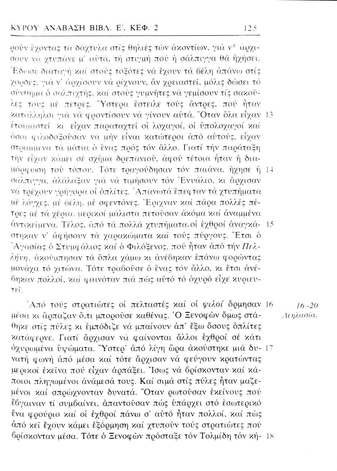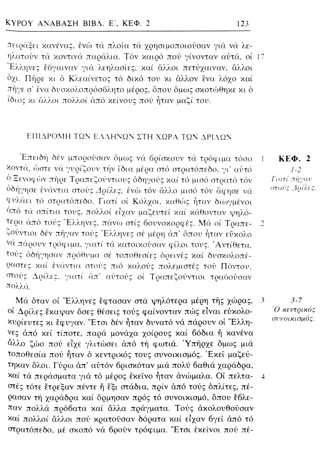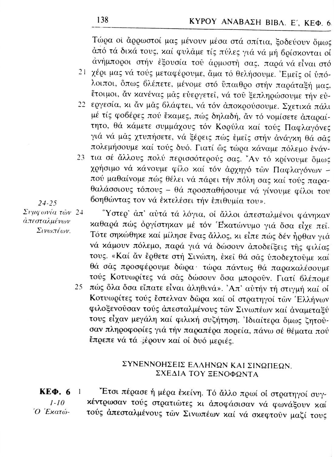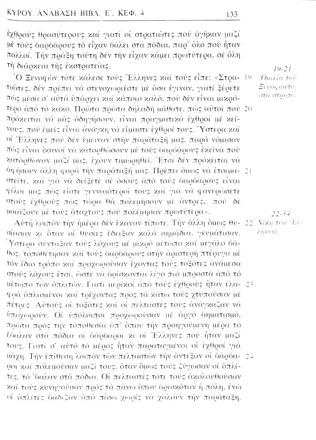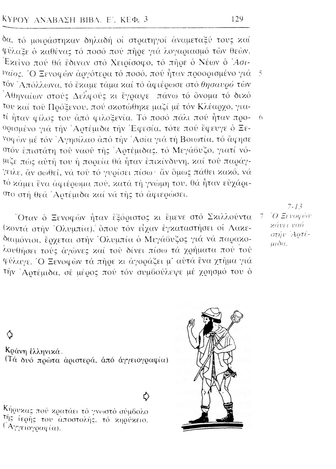 Σχολικό εγχειρίδιο Αρχαίων Ελληνικών. Αρχικά ένα εισαγωγικό σημείωμα αναφέρεται στη ζωή και το έργο του Ξενοφώντα και ακολουθεί το έργο του "Κύρου Ανάβασις". Στο εγχειρίδιο παραθέτονται σε περίληψη το Πρώτο και Έβδομο βιβλίο και σε μεταφρασμένο κείμενο το Δεύτερο, Τρίτο, Τέταρτο, Πέμπτο και Έκτο βιβλίο. Ακολουθούν σημειώσεις πάνω στα κείμενα τα οποία διανθίζονται από έγχρωμες εικόνες που παραχωρήθηκαν από την «Εκδοτική Αθηνών Α.Ε.»