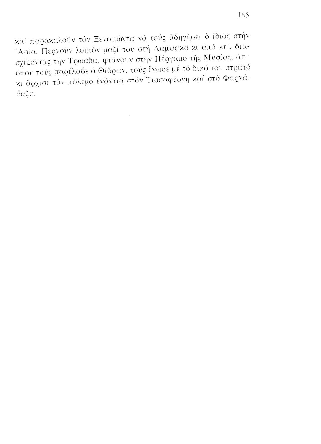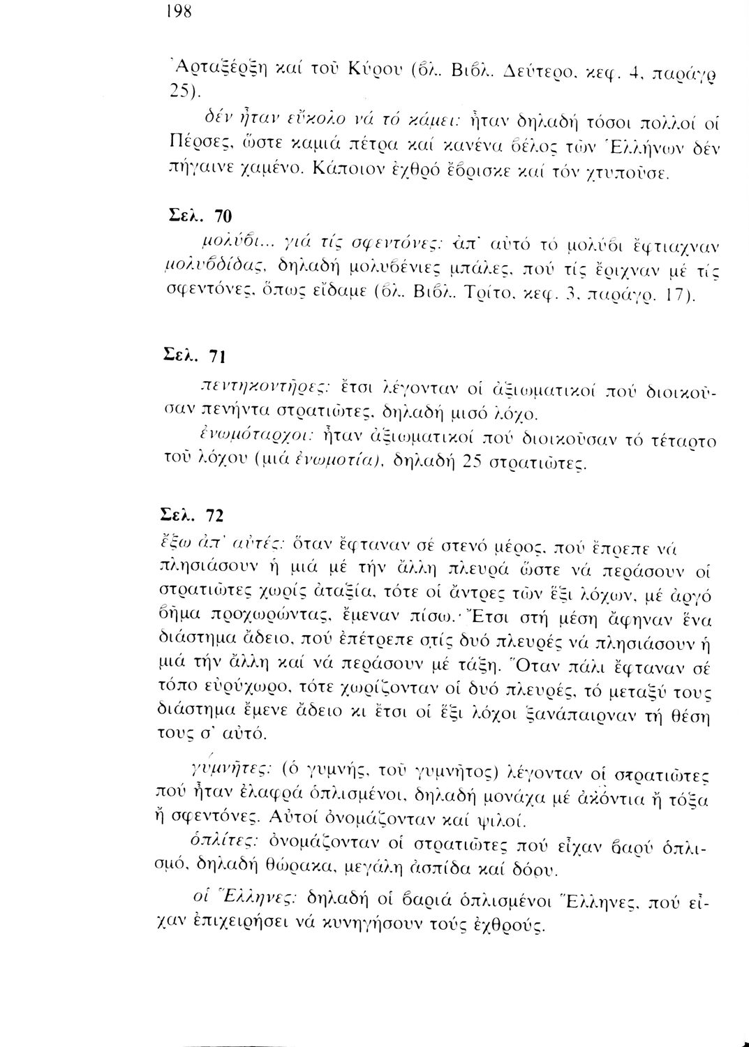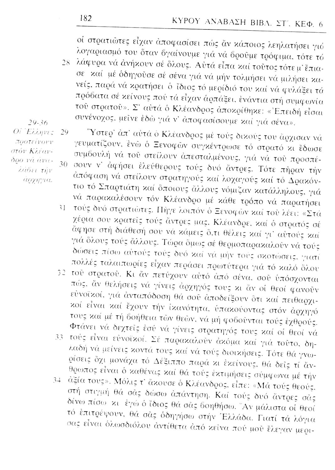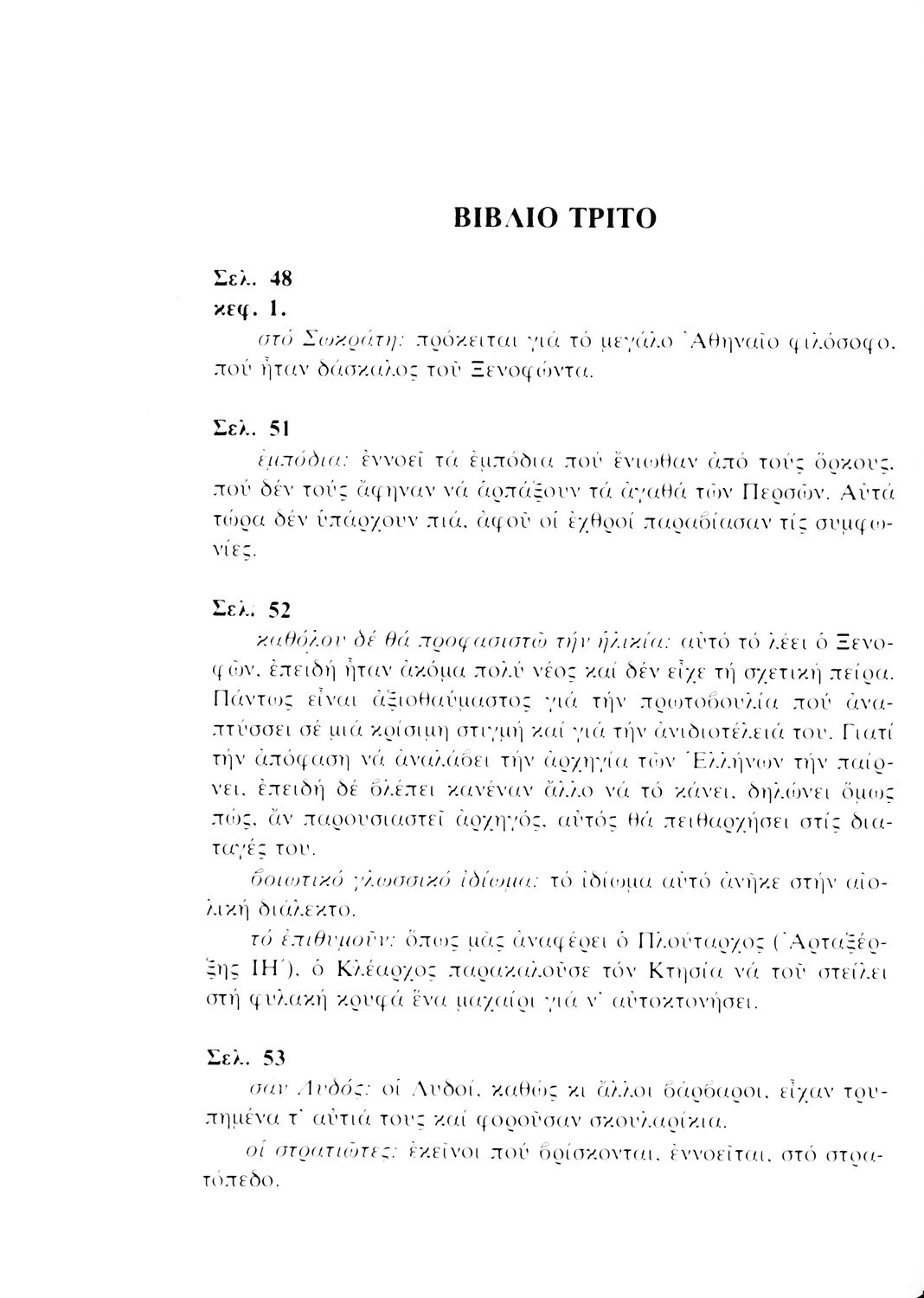 Σχολικό εγχειρίδιο Αρχαίων Ελληνικών. Αρχικά ένα εισαγωγικό σημείωμα αναφέρεται στη ζωή και το έργο του Ξενοφώντα και ακολουθεί το έργο του "Κύρου Ανάβασις". Στο εγχειρίδιο παραθέτονται σε περίληψη το Πρώτο και Έβδομο βιβλίο και σε μεταφρασμένο κείμενο το Δεύτερο, Τρίτο, Τέταρτο, Πέμπτο και Έκτο βιβλίο. Ακολουθούν σημειώσεις πάνω στα κείμενα τα οποία διανθίζονται από έγχρωμες εικόνες που παραχωρήθηκαν από την «Εκδοτική Αθηνών Α.Ε.»