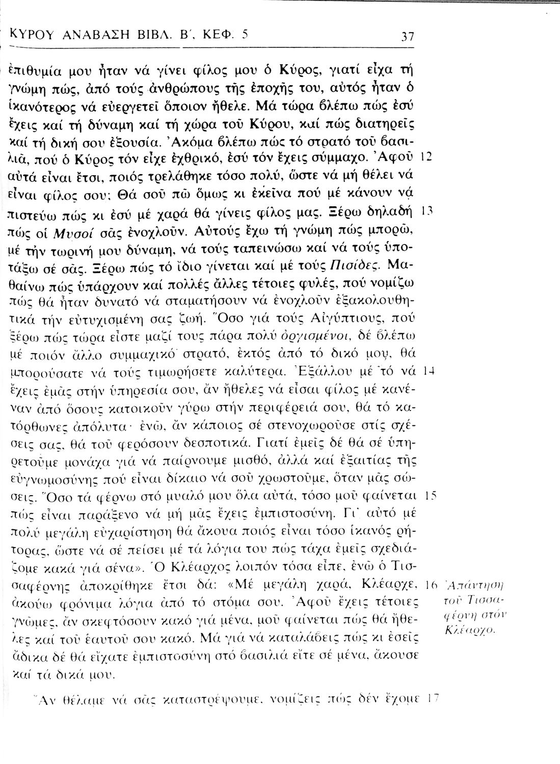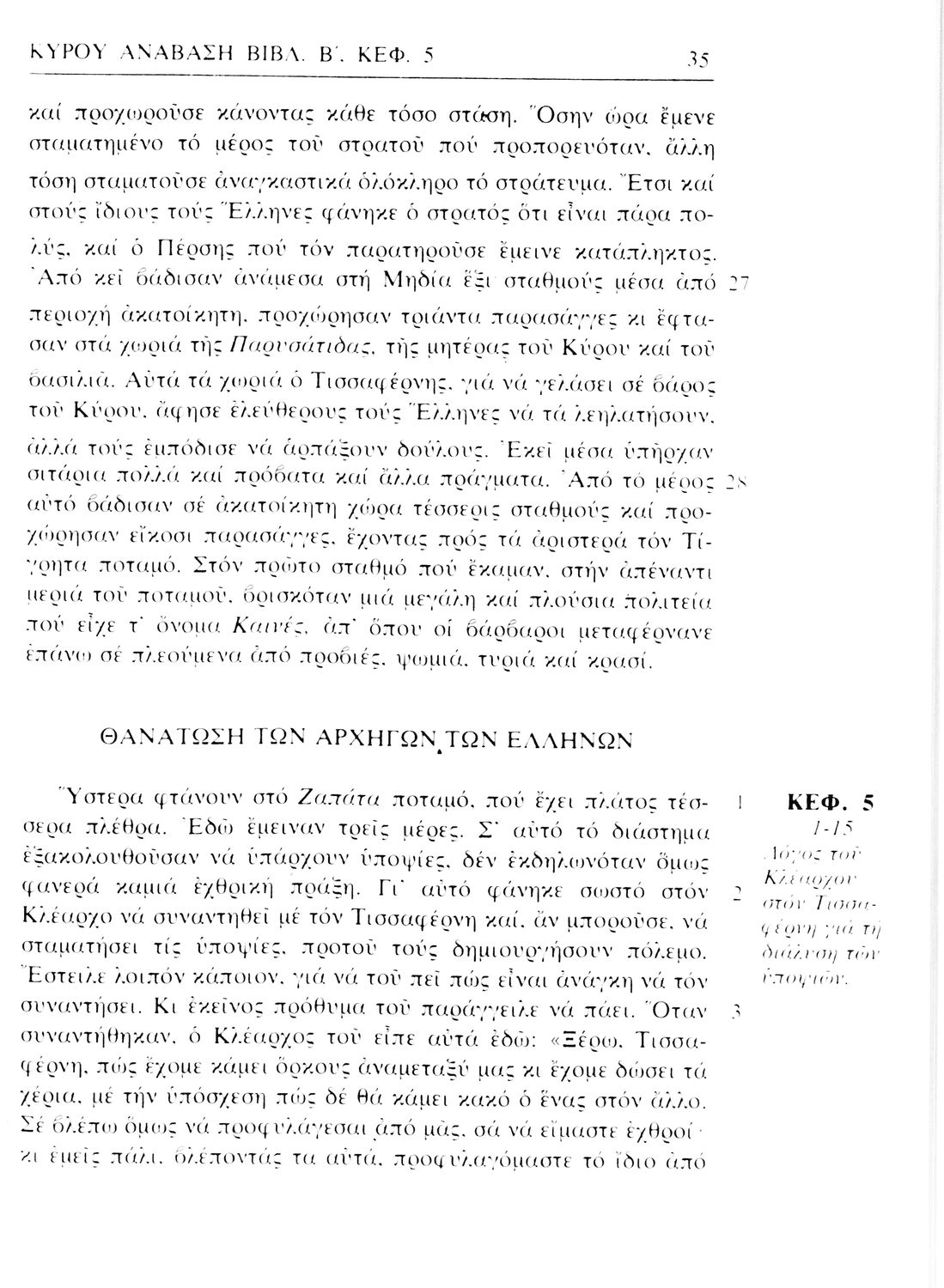 Σχολικό εγχειρίδιο Αρχαίων Ελληνικών α΄ Γυμνασίου που περιλαμβάνει μετάφραση του έργου του Ξενοφώντα Κύρου Ανάβασις, εισαγωγικά σχόλια για τη ζωή και το έργο του, και ερμηνευτικές παρατηρήσεις.