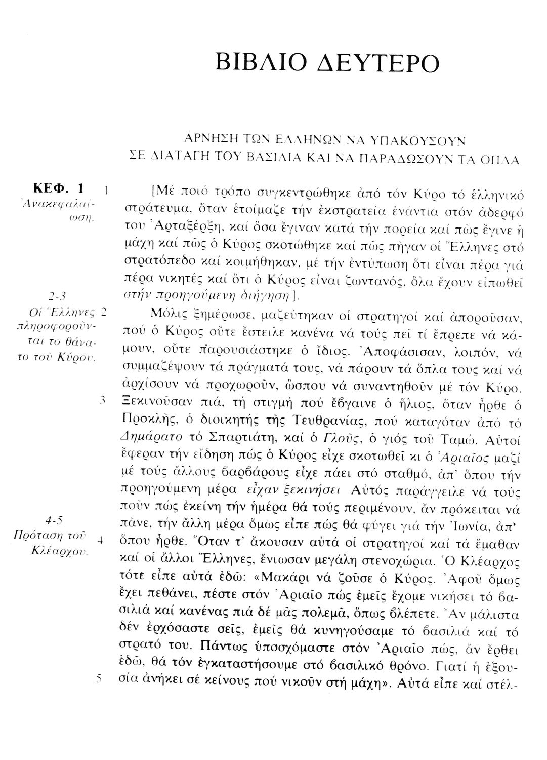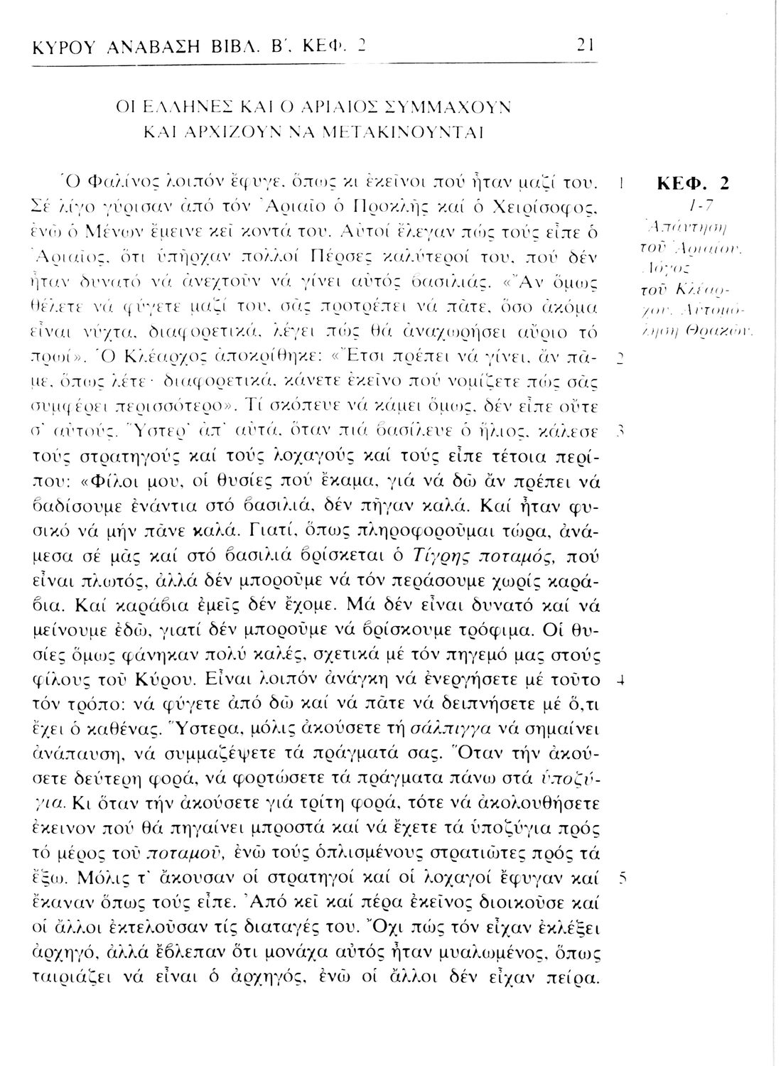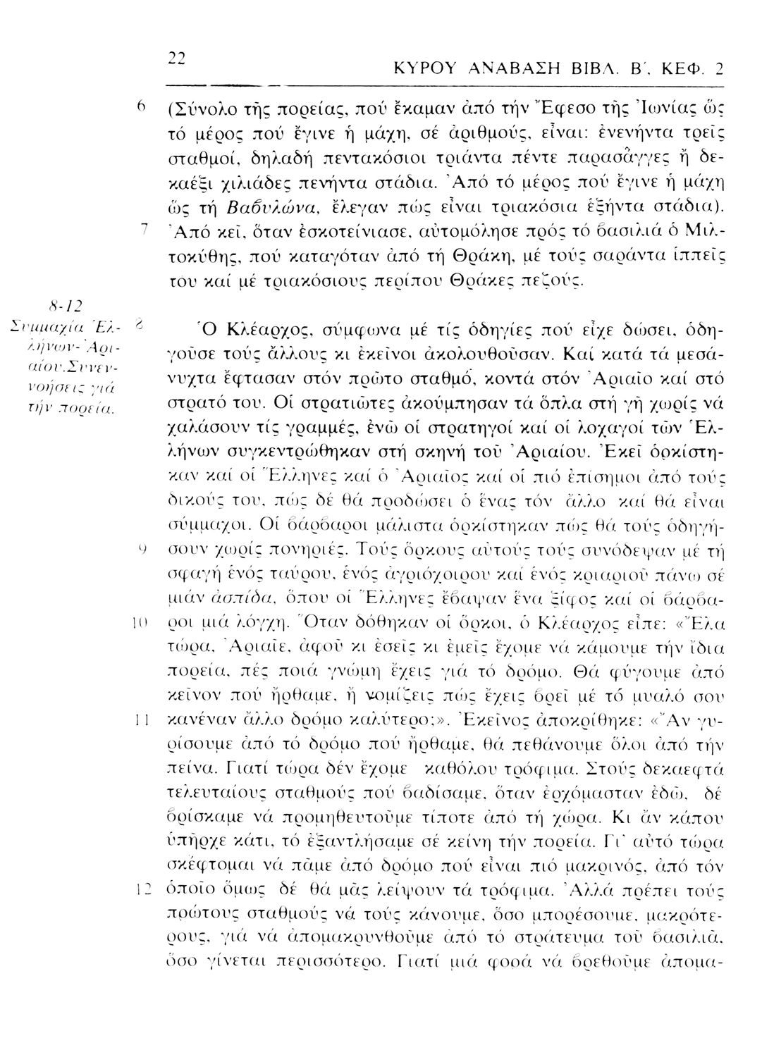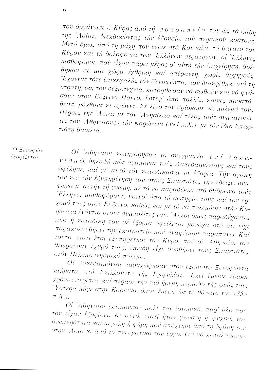 Σχολικό εγχειρίδιο Αρχαίων Ελληνικών. Αρχικά ένα εισαγωγικό σημείωμα αναφέρεται στη ζωή και το έργο του Ξενοφώντα και ακολουθεί το έργο του "Κύρου Ανάβασις". Στο εγχειρίδιο παραθέτονται σε περίληψη το Πρώτο και Έβδομο βιβλίο και σε μεταφρασμένο κείμενο το Δεύτερο, Τρίτο, Τέταρτο, Πέμπτο και Έκτο βιβλίο. Ακολουθούν σημειώσεις πάνω στα κείμενα τα οποία διανθίζονται από έγχρωμες εικόνες που παραχωρήθηκαν από την «Εκδοτική Αθηνών Α.Ε.»