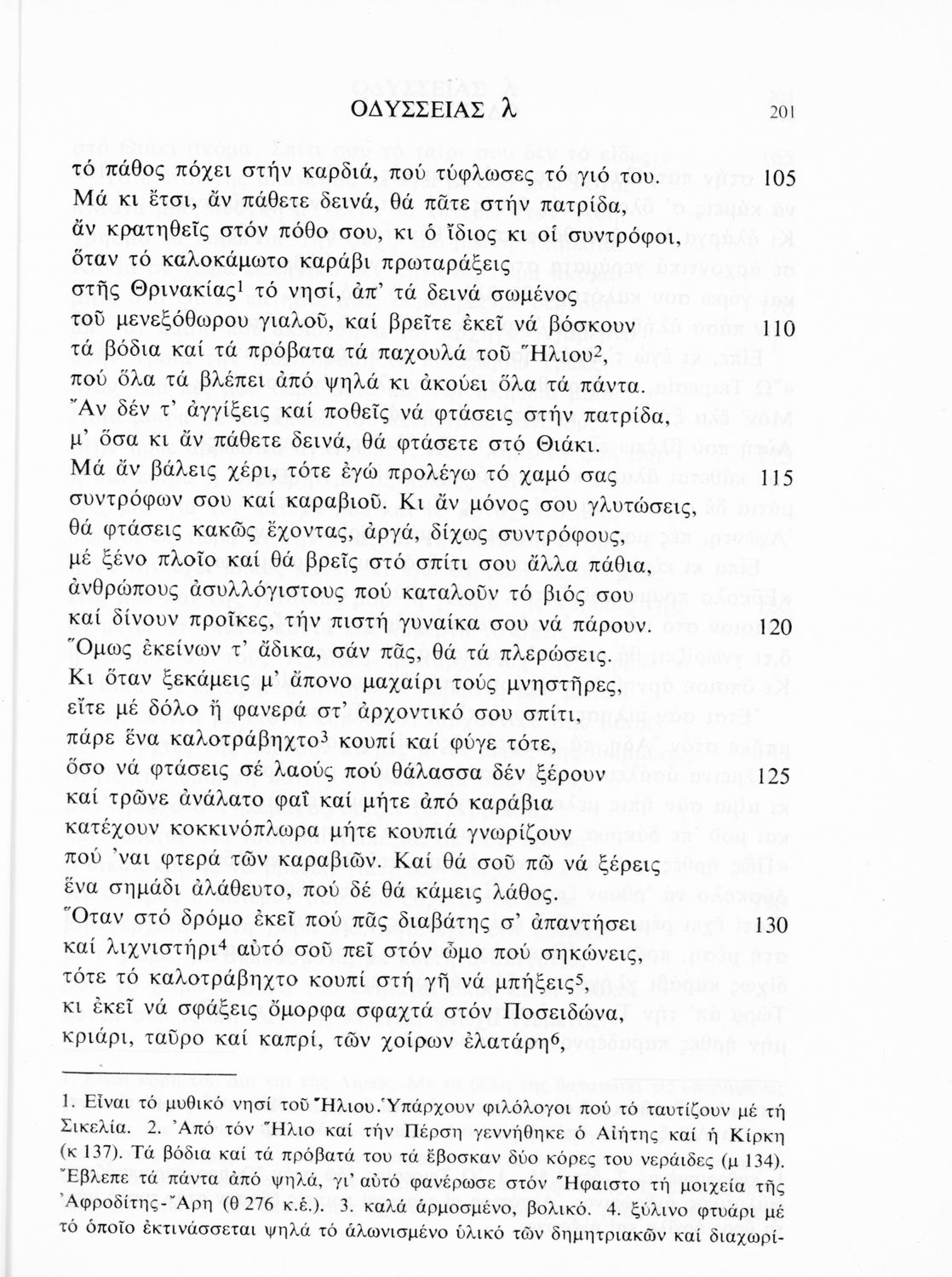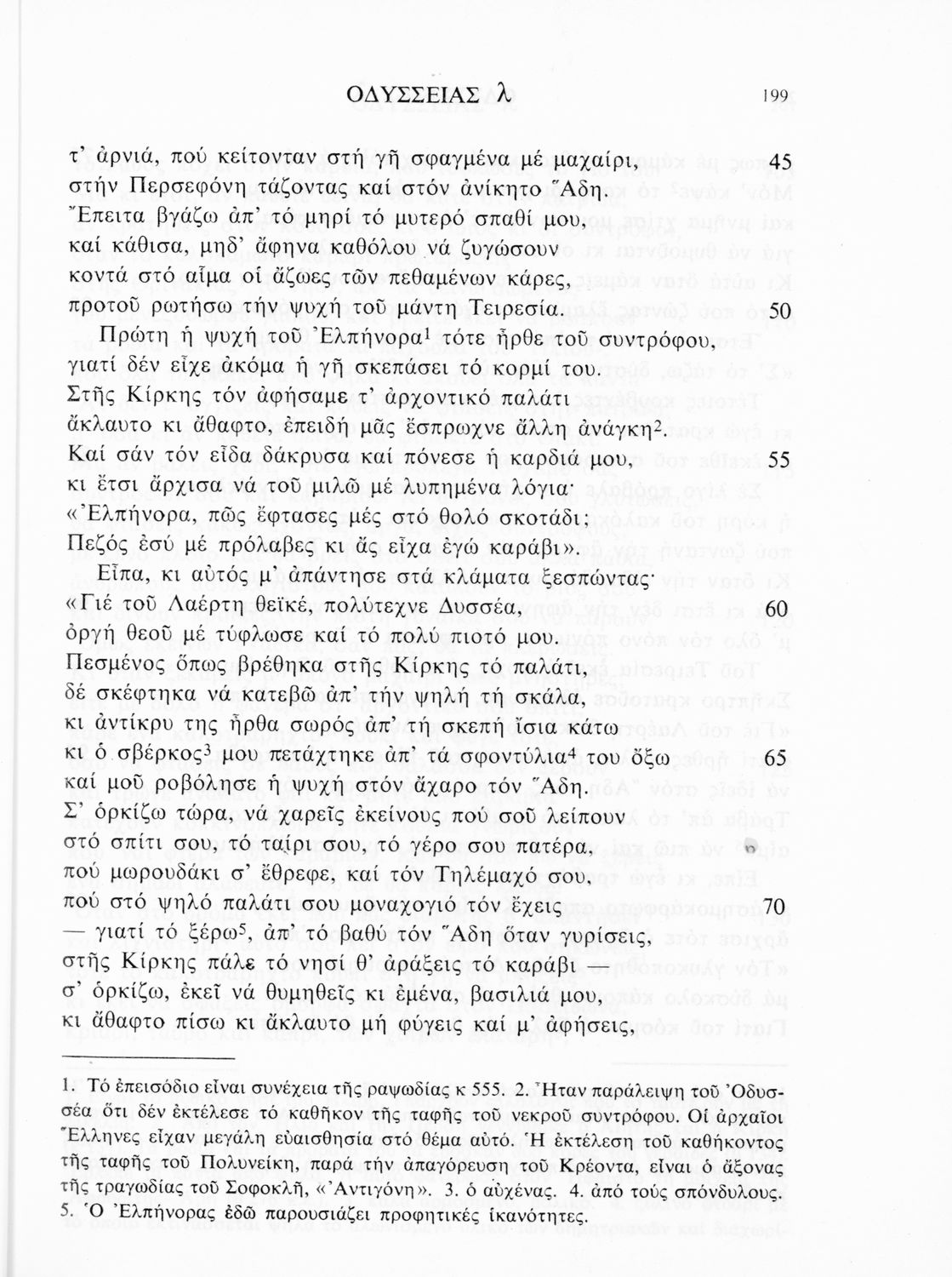 Σχολικό εγχειρίδιο Αρχαίων Ελληνικών για τις τάξεις του Γυμνασίου. Βιβλίο Οδύσσειας του Ομήρου για το Γυμνάσιο. Το προοίμιο αναφέρεται στο πρωτότυπο κείμενο. Η μετάφραση είναι έμμετρη.
