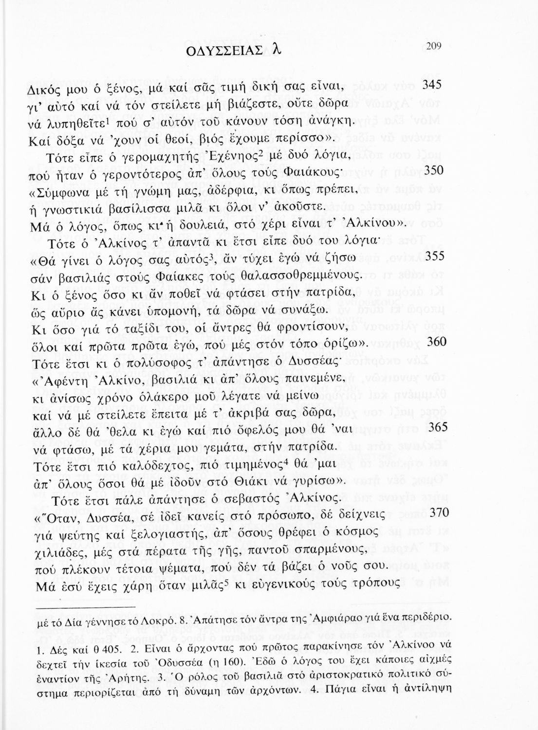 Σχολικό εγχειρίδιο Αρχαίων Ελληνικών Γυμνασίου που περιλαμβάνει αποσπάσματα από τις ραψωδίες της Οδύσσειας, ερμηνευτικά και πραγματολογικά σχόλια, και λεξιλογικές παρατηρήσεις.