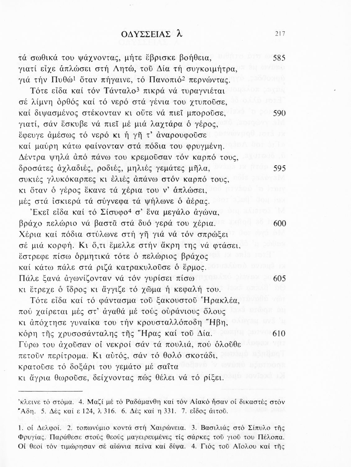 Σχολικό εγχειρίδιο Αρχαίων Ελληνικών. Το βιβλίο περιλαμβάνει εισαγωγή σχετικά με το έργο του Ομήρου, τη δομή και το περιεχόμενο της Οδύσσειας. Ακολουθεί το έπος της Οδύσσειας σε μετάφραση του Ζήσιμου Σιδέρη. Τα κείμενα συνοδεύουν ερμηνευτικές υποσημειώσεις και σχόλια. Η εισαγωγή και τα σχόλια είναι του Γεν. Επιθεωρητή Τριαντ. Ι. Δελή. Η ορθογραφική προσαρμογή της μετάφρασης έγινε από το Γεν. Επιθ. Κ. Μικρούδη. Η επιλογή των αγγειογραφιών έγινε με τη συνεργασία της αρχαιολόγου Ίριδας Ντούσκου και του Τριαντάφυλλου Ι. Δέλη.