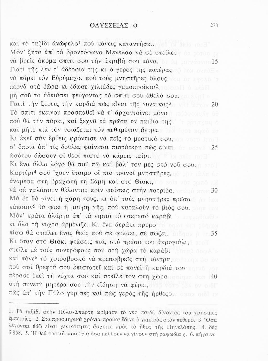 Σχολικό εγχειρίδιο Αρχαίων Ελληνικών. Το βιβλίο περιλαμβάνει εισαγωγή σχετικά με το έργο του Ομήρου, τη δομή και το περιεχόμενο της Οδύσσειας. Ακολουθεί το έπος της Οδύσσειας σε μετάφραση του Ζήσιμου Σιδέρη. Τα κείμενα συνοδεύουν ερμηνευτικές υποσημειώσεις και σχόλια. Η εισαγωγή και τα σχόλια είναι του Γεν. Επιθεωρητή Τριαντ. Ι. Δελή. Η ορθογραφική προσαρμογή της μετάφρασης έγινε από το Γεν. Επιθ. Κ. Μικρούδη. Η επιλογή των αγγειογραφιών έγινε με τη συνεργασία της αρχαιολόγου Ίριδας Ντούσκου και του Τριαντάφυλλου Ι. Δέλη.