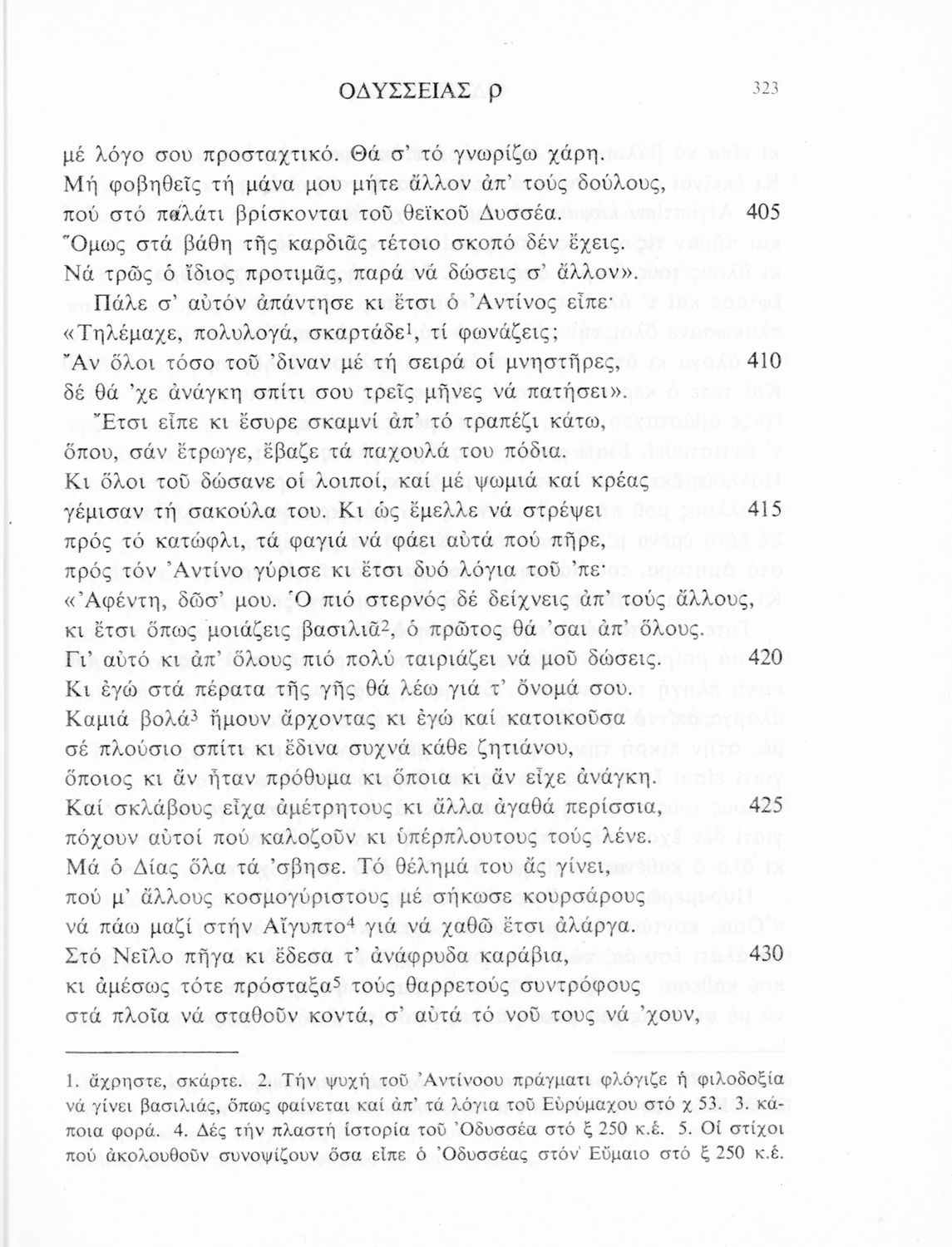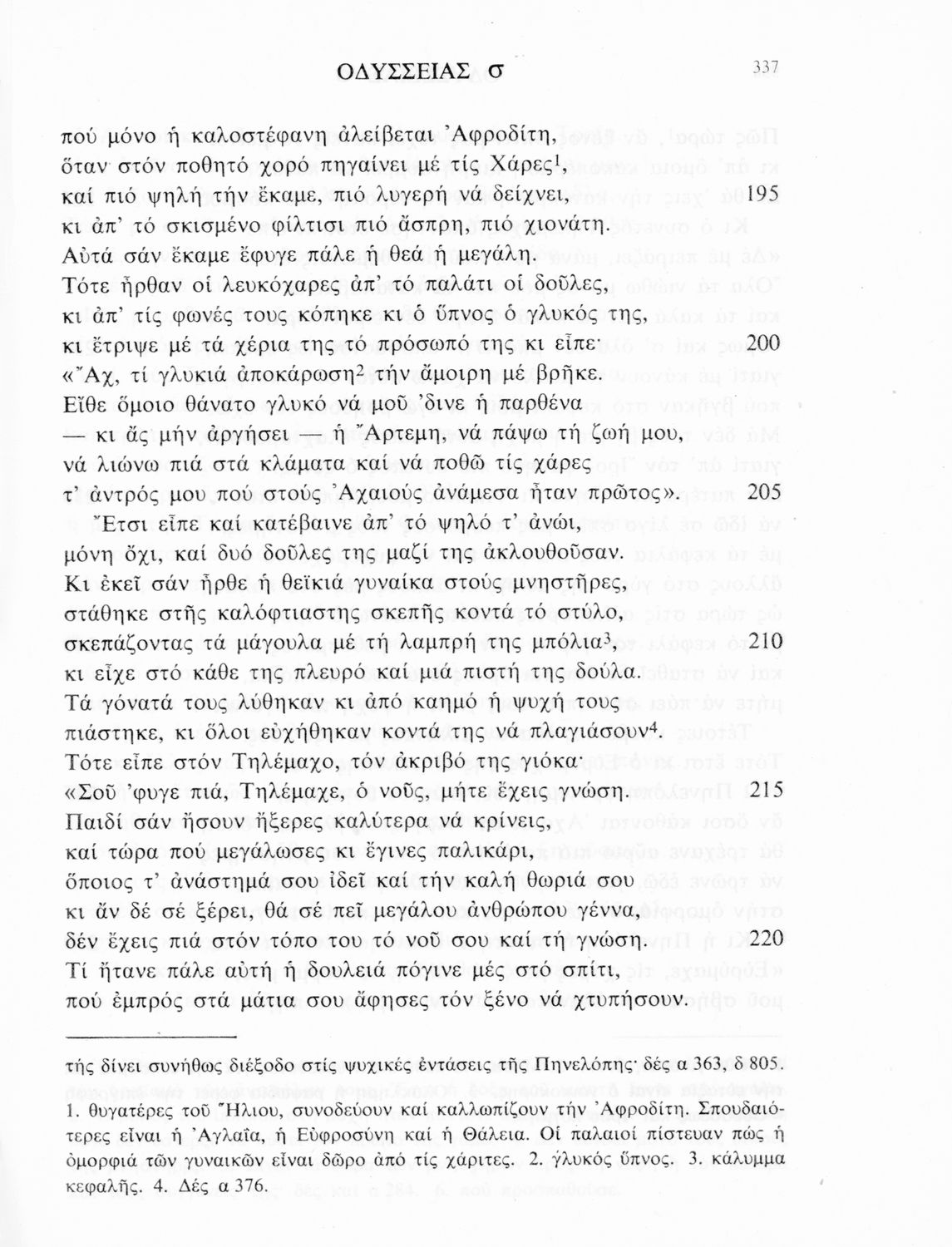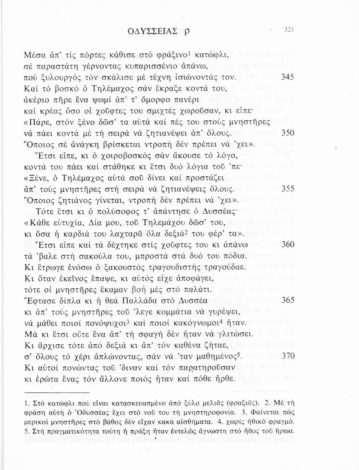 Σχολικό εγχειρίδιο Αρχαίων Ελληνικών. Το βιβλίο περιλαμβάνει εισαγωγή σχετικά με το έργο του Ομήρου, τη δομή και το περιεχόμενο της Οδύσσειας. Ακολουθεί το έπος της Οδύσσειας σε μετάφραση του Ζήσιμου Σιδέρη. Τα κείμενα συνοδεύουν ερμηνευτικές υποσημειώσεις και σχόλια. Η εισαγωγή και τα σχόλια είναι του Γεν. Επιθεωρητή Τριαντ. Ι. Δελή. Η ορθογραφική προσαρμογή της μετάφρασης έγινε από το Γεν. Επιθ. Κ. Μικρούδη. Η επιλογή των αγγειογραφιών έγινε με τη συνεργασία της αρχαιολόγου Ίριδας Ντούσκου και του Τριαντάφυλλου Ι. Δέλη.
