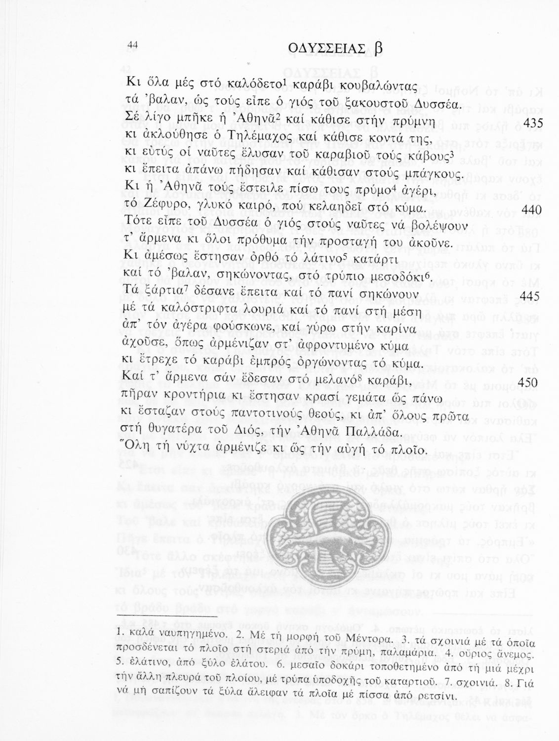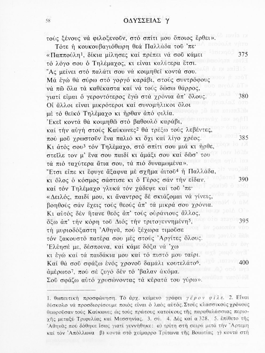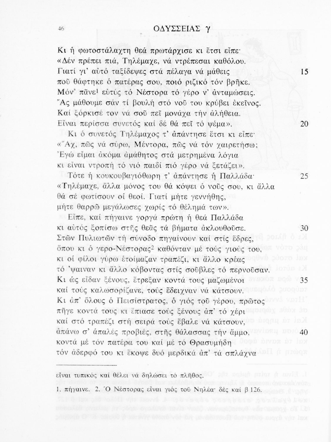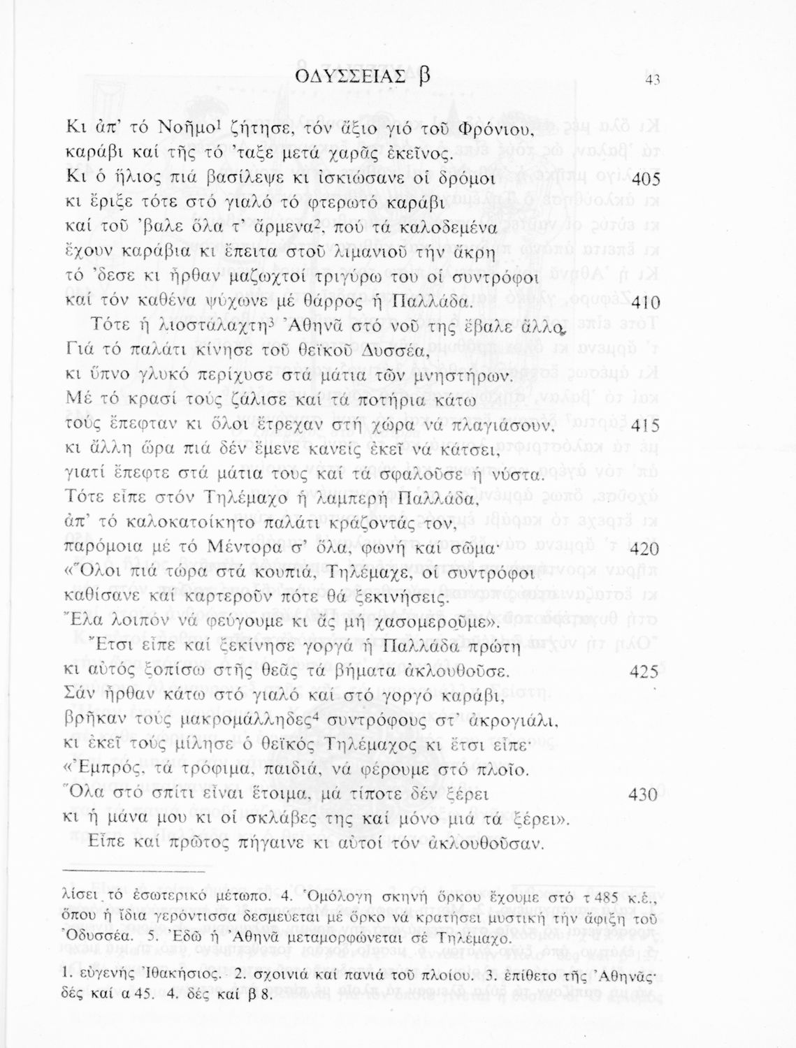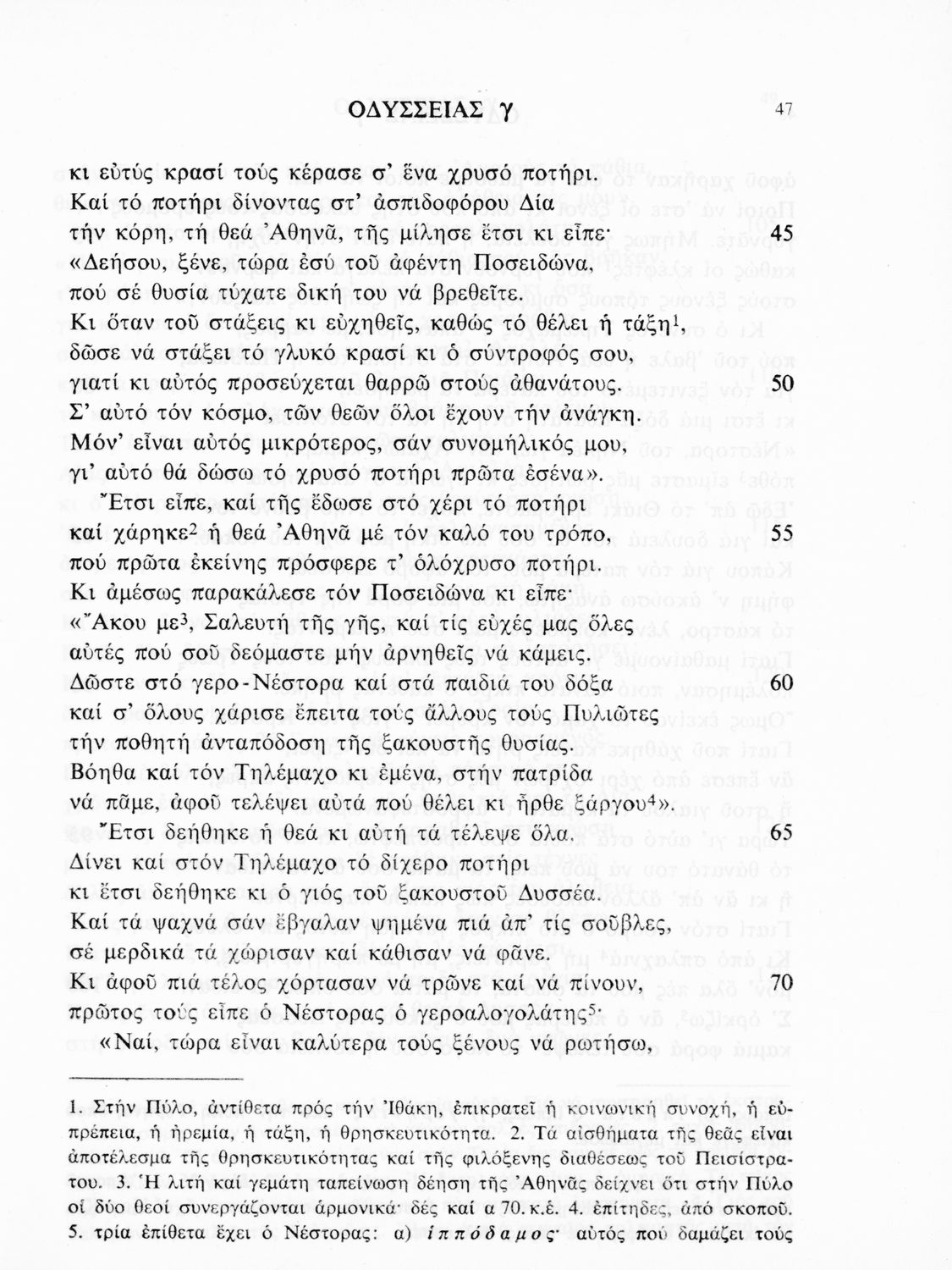 Σχολικό εγχειρίδιο Αρχαίων Ελληνικών για τις τάξεις του Γυμνασίου. Βιβλίο Οδύσσειας του Ομήρου για το Γυμνάσιο. Το προοίμιο αναφέρεται στο πρωτότυπο κείμενο. Η μετάφραση είναι έμμετρη.