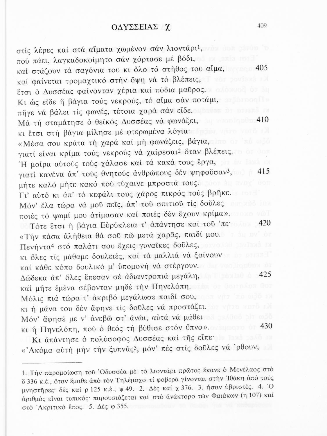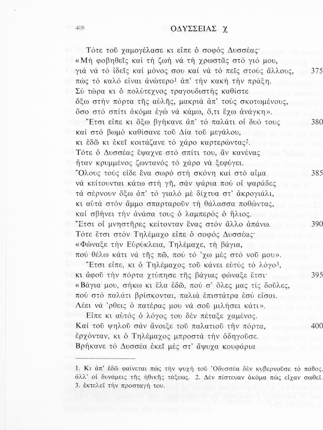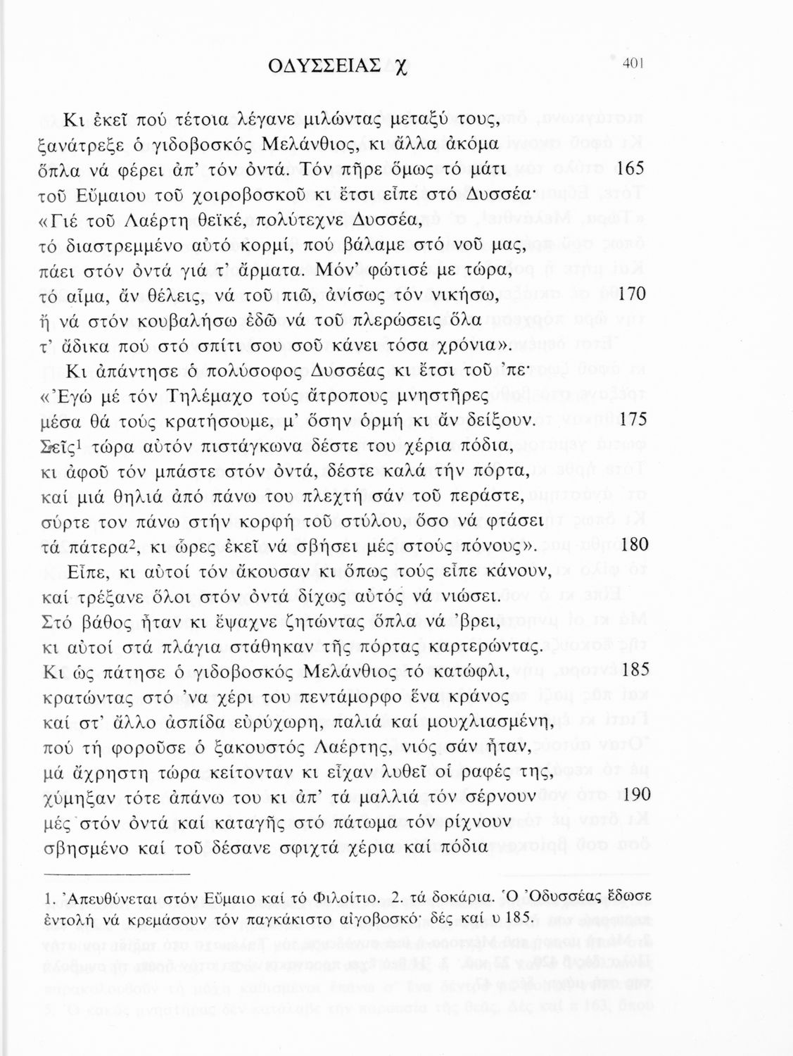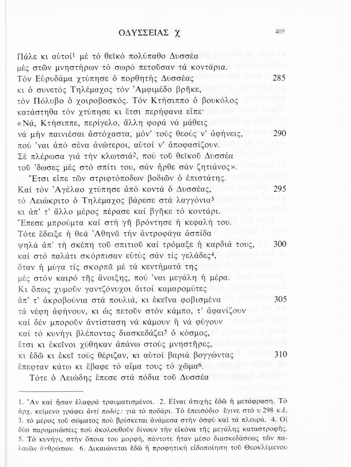 Σχολικό εγχειρίδιο Αρχαίων Ελληνικών Γυμνασίου που περιλαμβάνει αποσπάσματα από τις ραψωδίες της Οδύσσειας, ερμηνευτικά και πραγματολογικά σχόλια, και λεξιλογικές παρατηρήσεις.