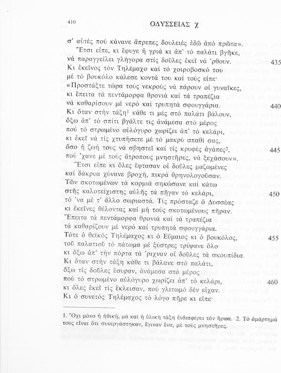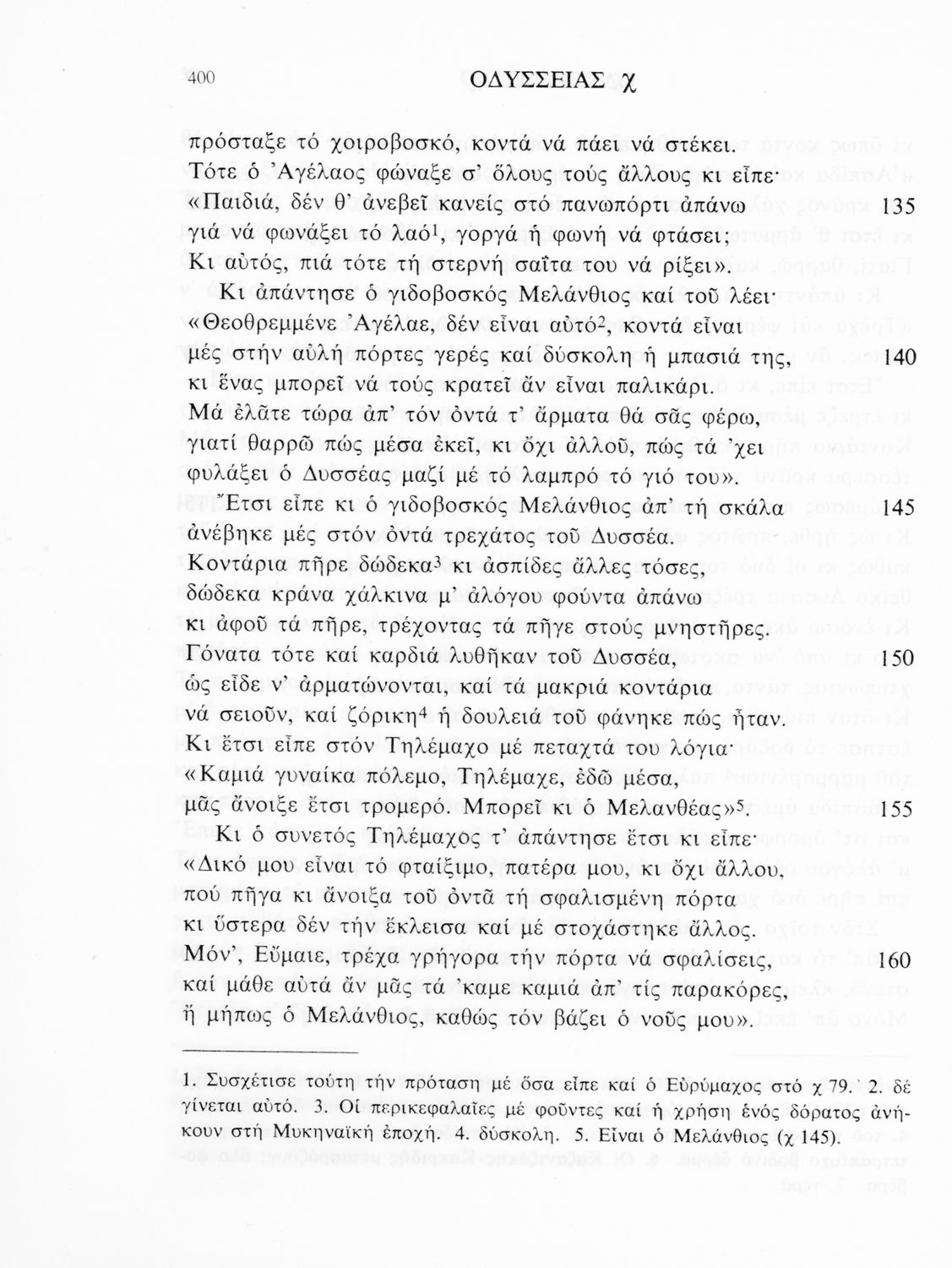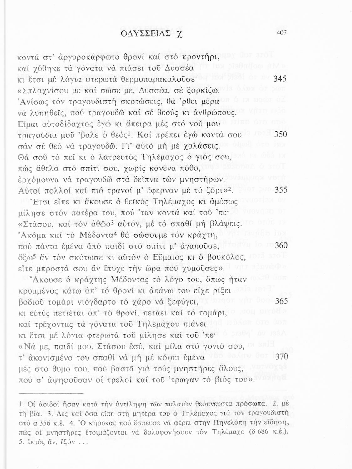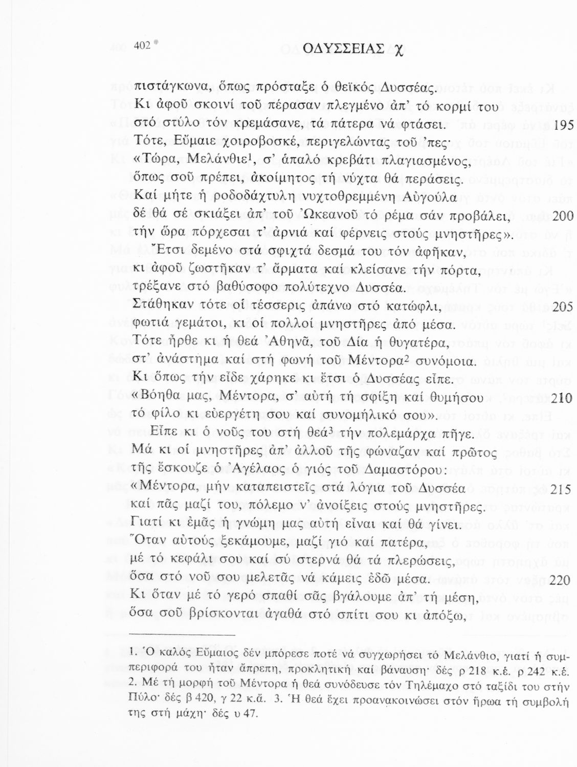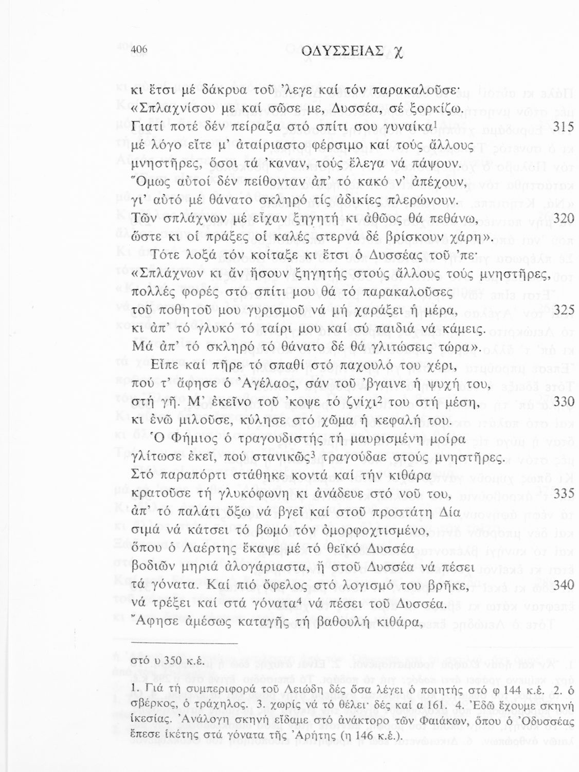 Σχολικό εγχειρίδιο Αρχαίων Ελληνικών Γυμνασίου που περιλαμβάνει αποσπάσματα από τις ραψωδίες της Οδύσσειας, ερμηνευτικά και πραγματολογικά σχόλια, και λεξιλογικές παρατηρήσεις.