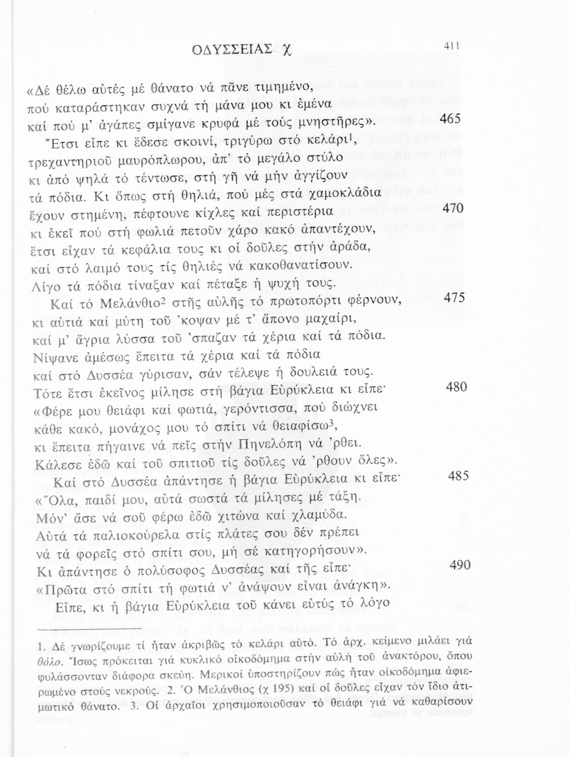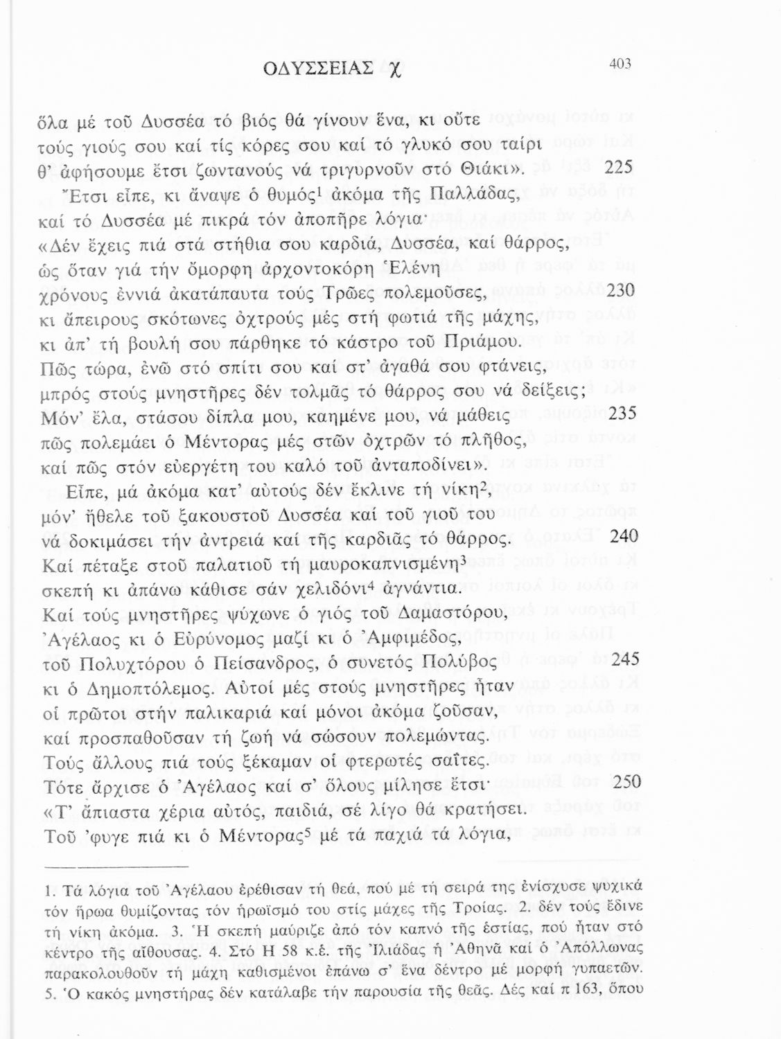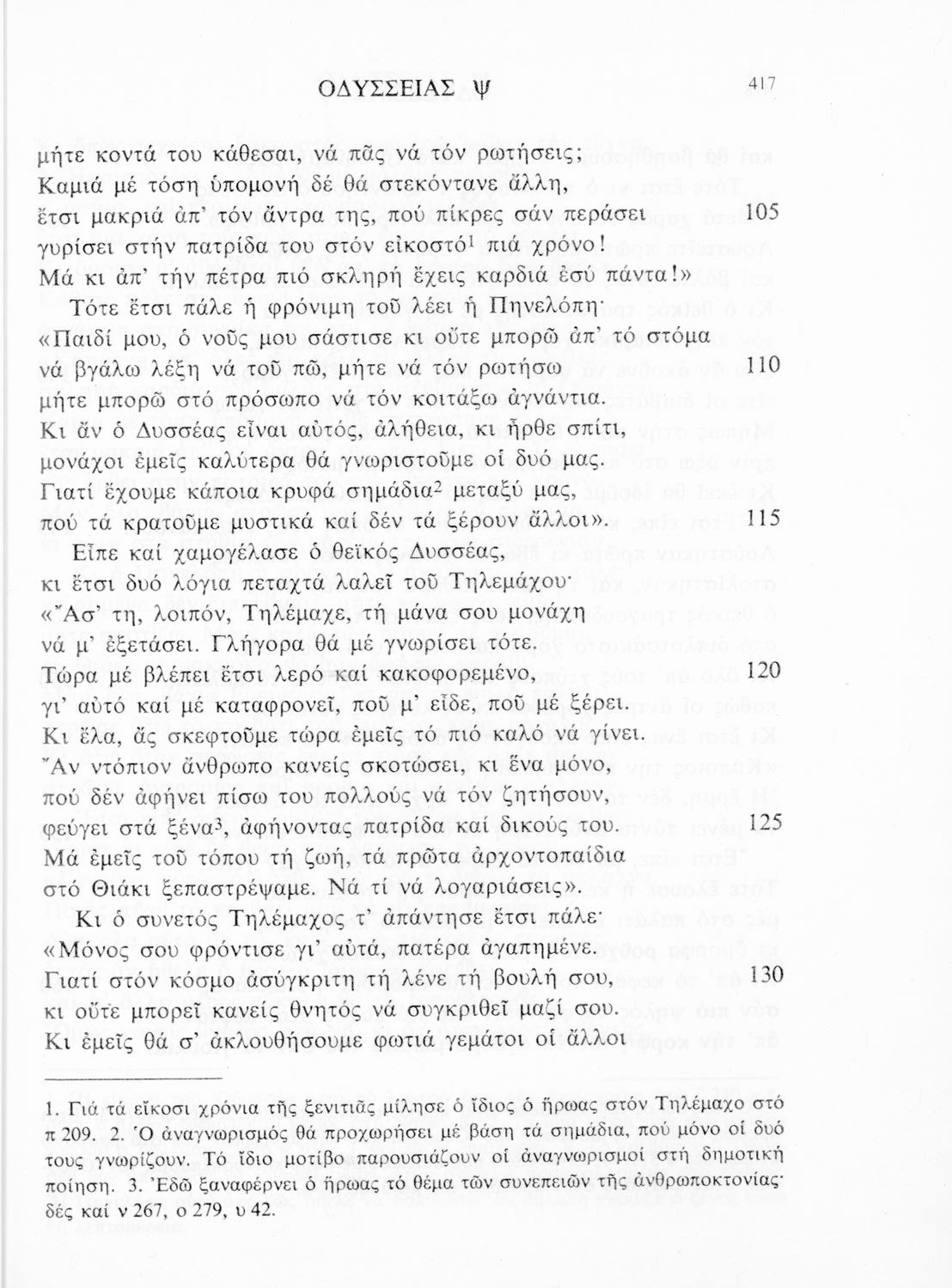 Σχολικό εγχειρίδιο Αρχαίων Ελληνικών για τις τάξεις του Γυμνασίου. Βιβλίο Οδύσσειας του Ομήρου για το Γυμνάσιο. Το προοίμιο αναφέρεται στο πρωτότυπο κείμενο. Η μετάφραση είναι έμμετρη.
