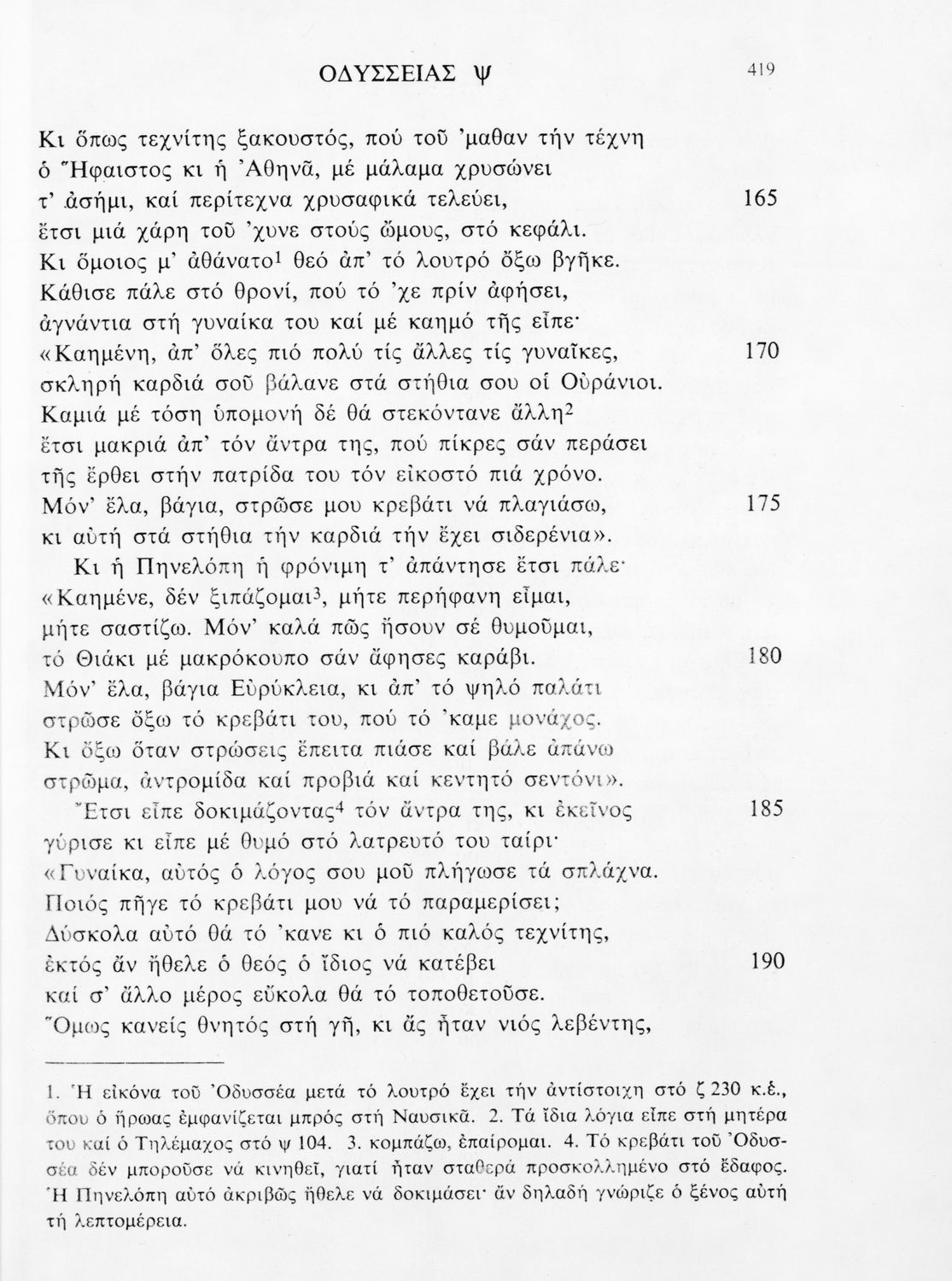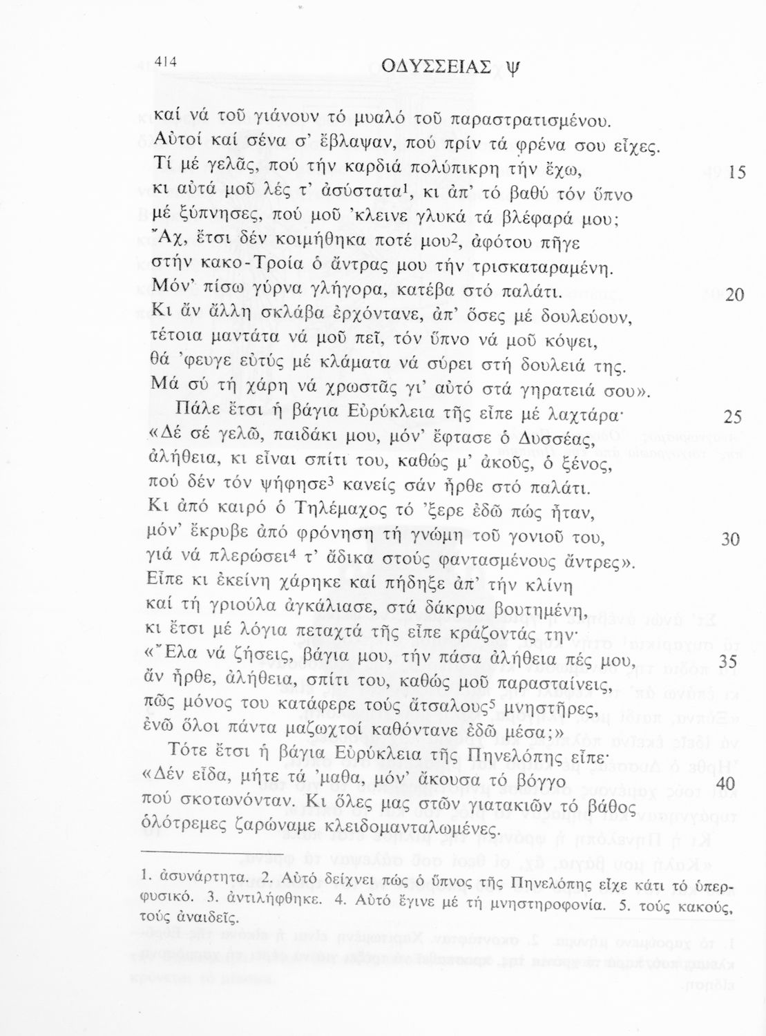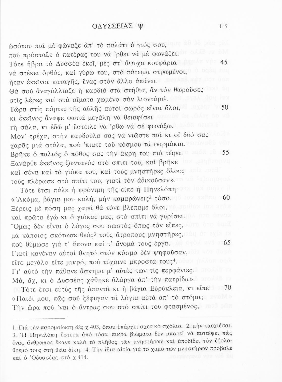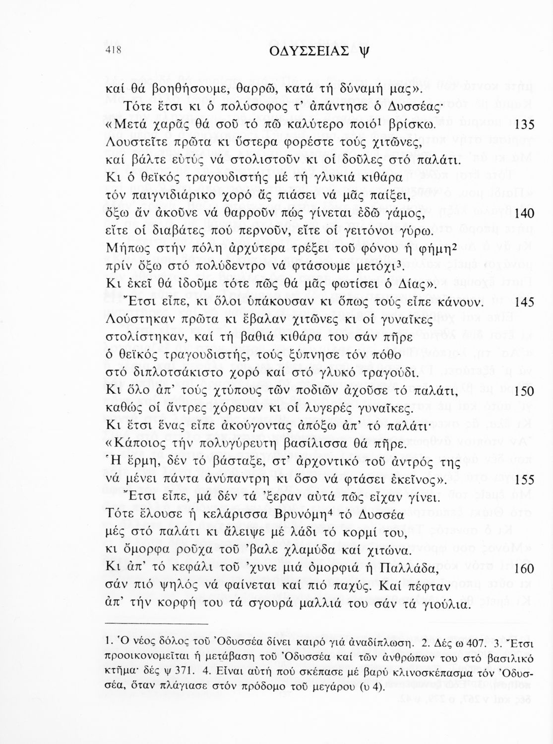 Σχολικό εγχειρίδιο Αρχαίων Ελληνικών για τις τάξεις του Γυμνασίου. Βιβλίο Οδύσσειας του Ομήρου για το Γυμνάσιο. Το προοίμιο αναφέρεται στο πρωτότυπο κείμενο. Η μετάφραση είναι έμμετρη.