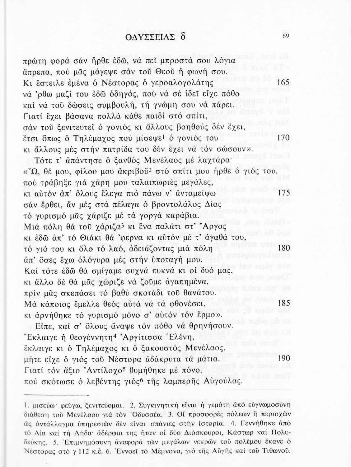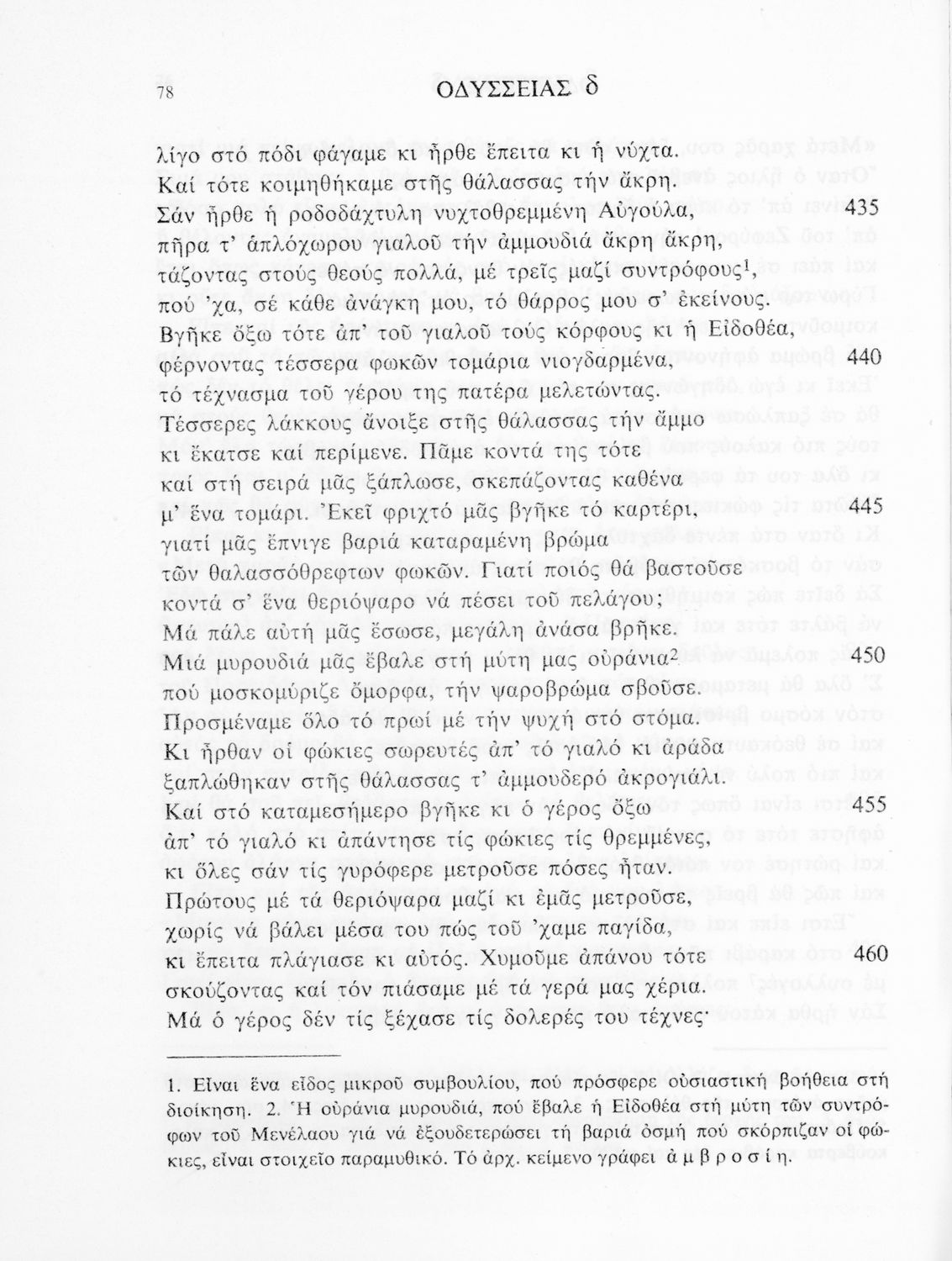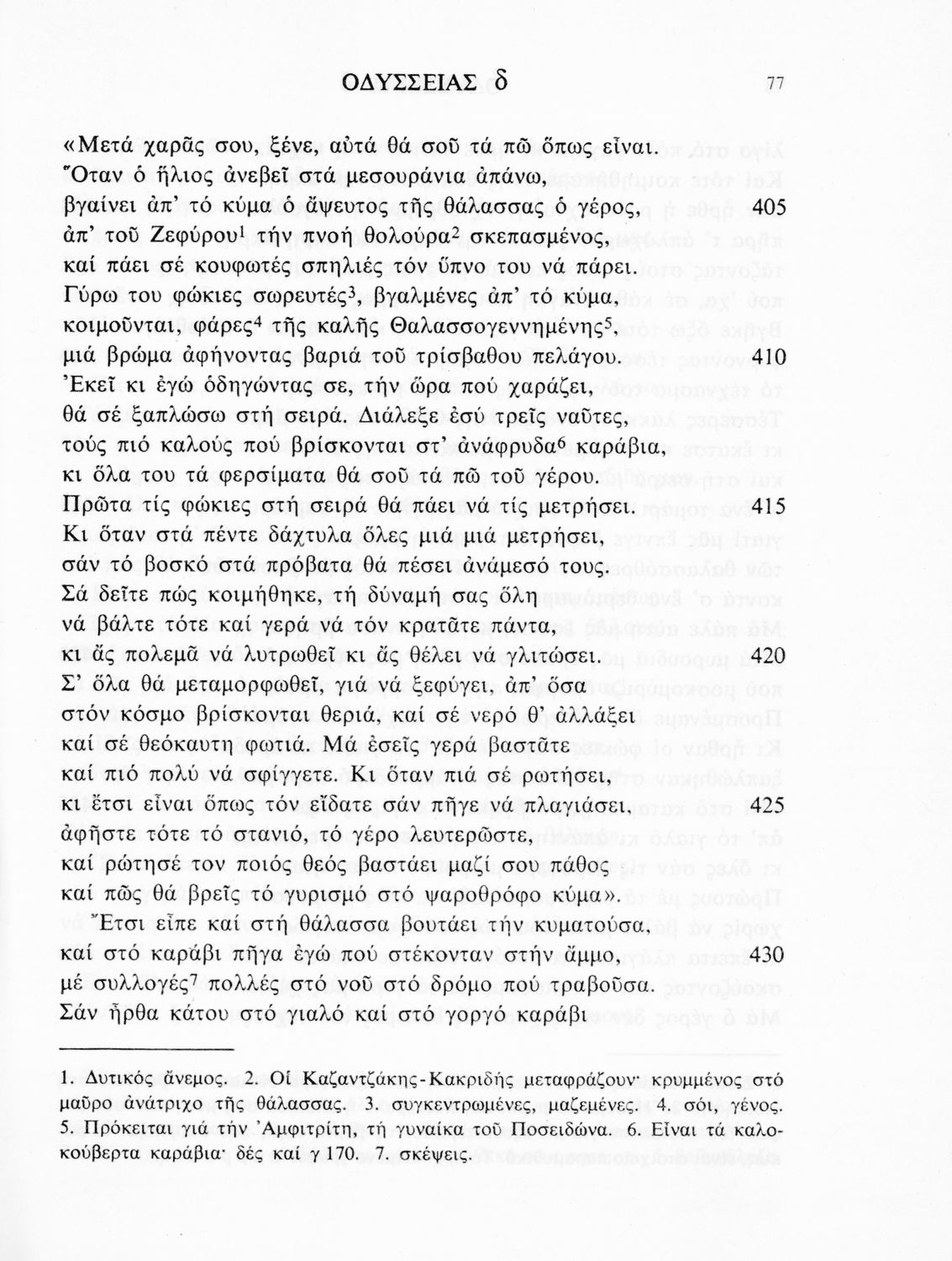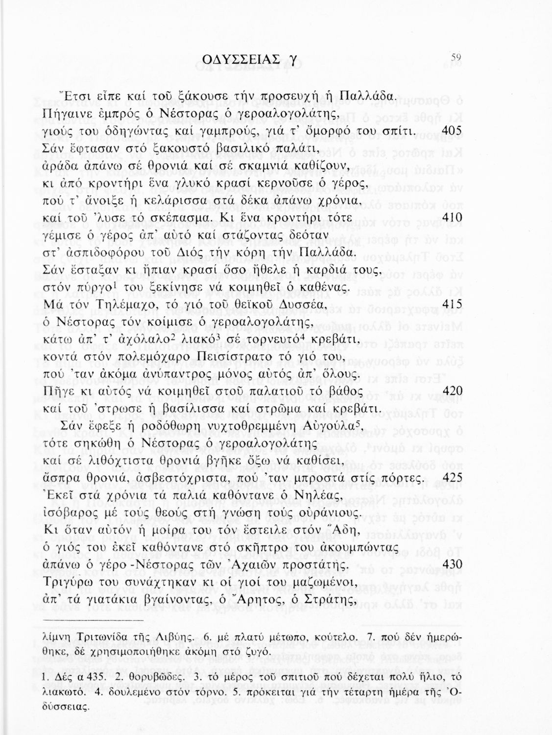 Σχολικό εγχειρίδιο Αρχαίων Ελληνικών. Το βιβλίο περιλαμβάνει εισαγωγή σχετικά με το έργο του Ομήρου, τη δομή και το περιεχόμενο της Οδύσσειας. Ακολουθεί το έπος της Οδύσσειας σε μετάφραση του Ζήσιμου Σιδέρη. Τα κείμενα συνοδεύουν ερμηνευτικές υποσημειώσεις και σχόλια. Η εισαγωγή και τα σχόλια είναι του Γεν. Επιθεωρητή Τριαντ. Ι. Δελή. Η ορθογραφική προσαρμογή της μετάφρασης έγινε από το Γεν. Επιθ. Κ. Μικρούδη. Η επιλογή των αγγειογραφιών έγινε με τη συνεργασία της αρχαιολόγου Ίριδας Ντούσκου και του Τριαντάφυλλου Ι. Δέλη.