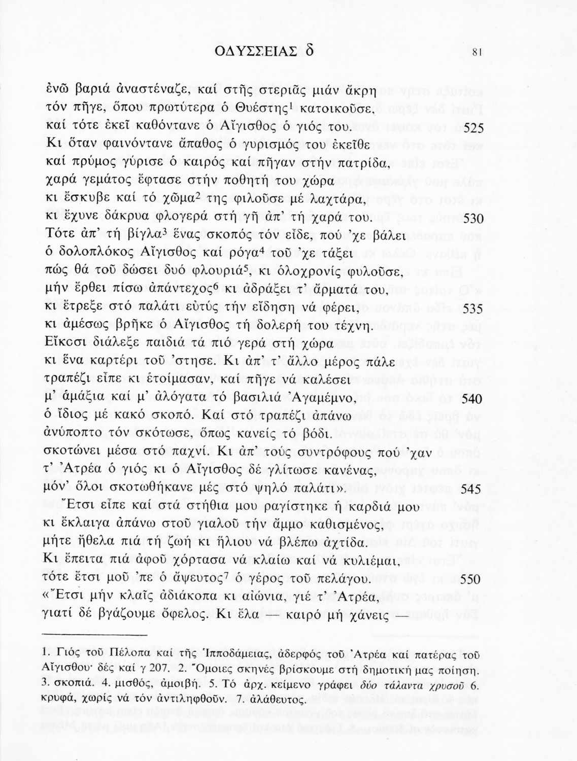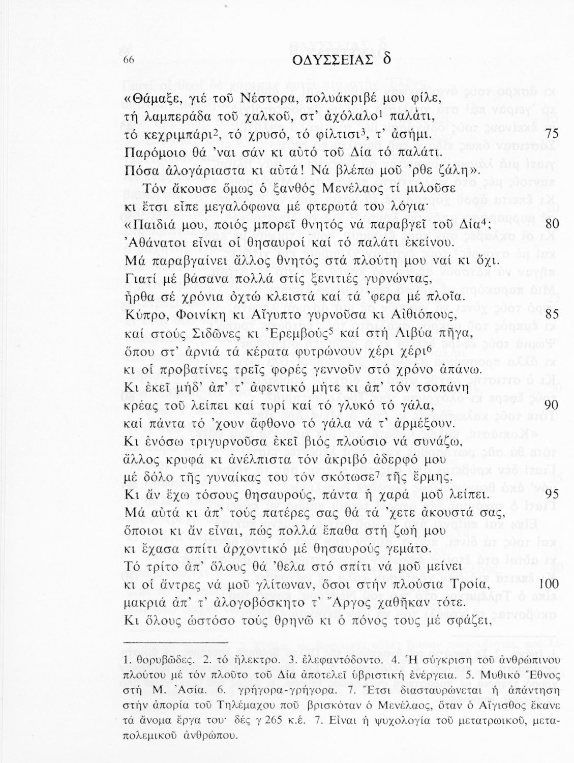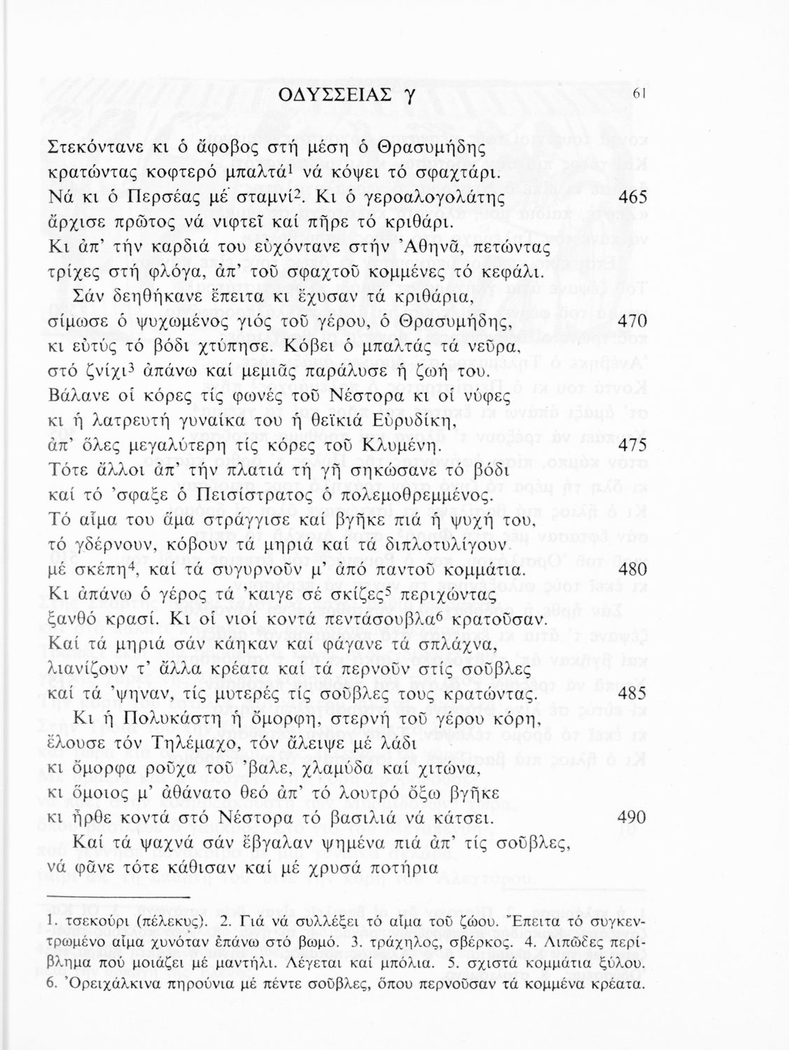 Σχολικό εγχειρίδιο Αρχαίων Ελληνικών. Το βιβλίο περιλαμβάνει εισαγωγή σχετικά με το έργο του Ομήρου, τη δομή και το περιεχόμενο της Οδύσσειας. Ακολουθεί το έπος της Οδύσσειας σε μετάφραση του Ζήσιμου Σιδέρη. Τα κείμενα συνοδεύουν ερμηνευτικές υποσημειώσεις και σχόλια. Η εισαγωγή και τα σχόλια είναι του Γεν. Επιθεωρητή Τριαντ. Ι. Δελή. Η ορθογραφική προσαρμογή της μετάφρασης έγινε από το Γεν. Επιθ. Κ. Μικρούδη. Η επιλογή των αγγειογραφιών έγινε με τη συνεργασία της αρχαιολόγου Ίριδας Ντούσκου και του Τριαντάφυλλου Ι. Δέλη.
