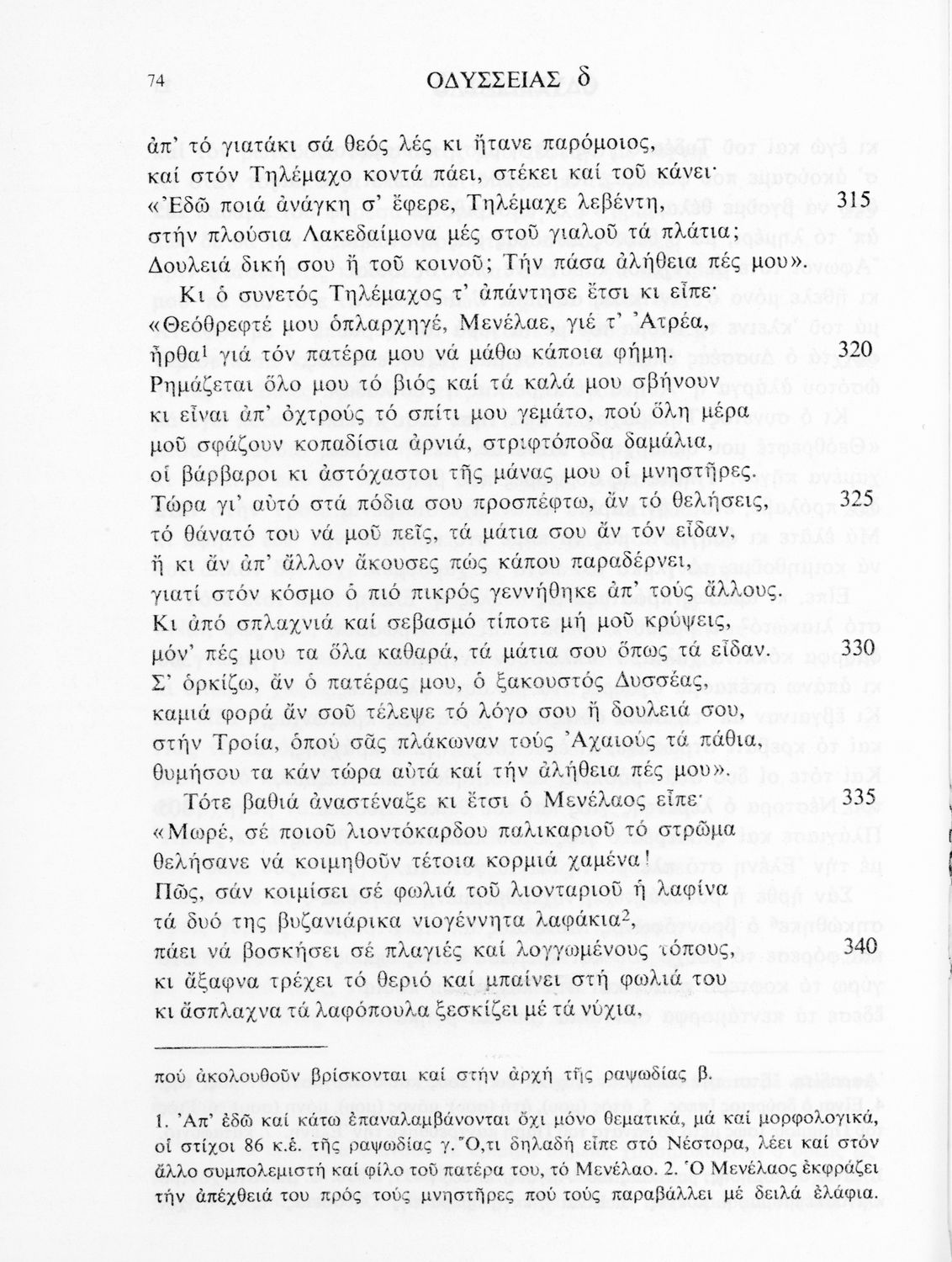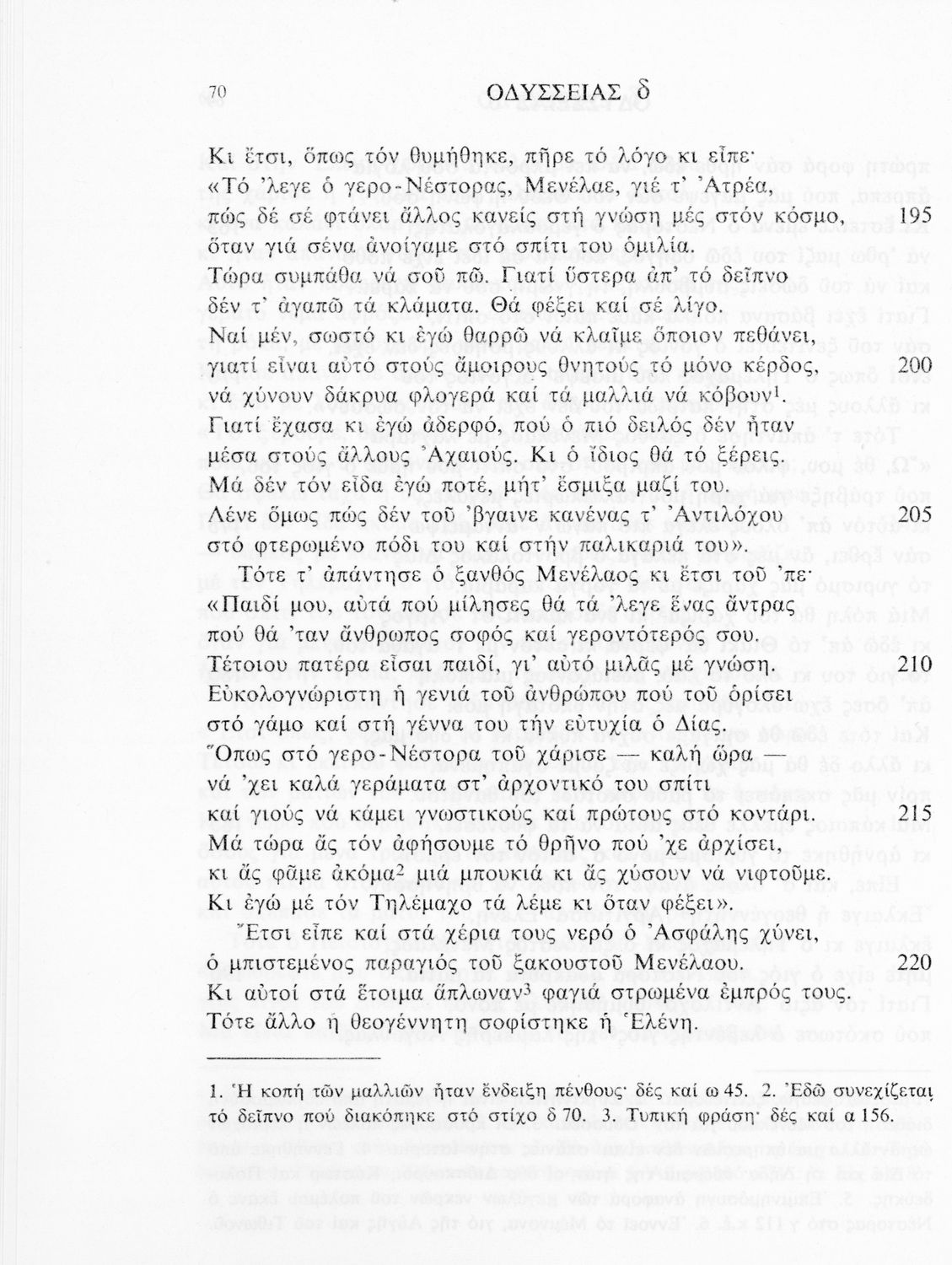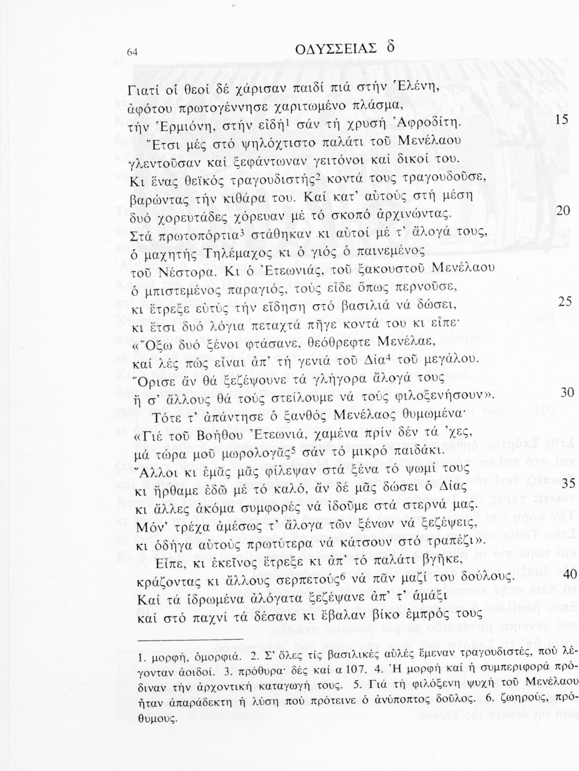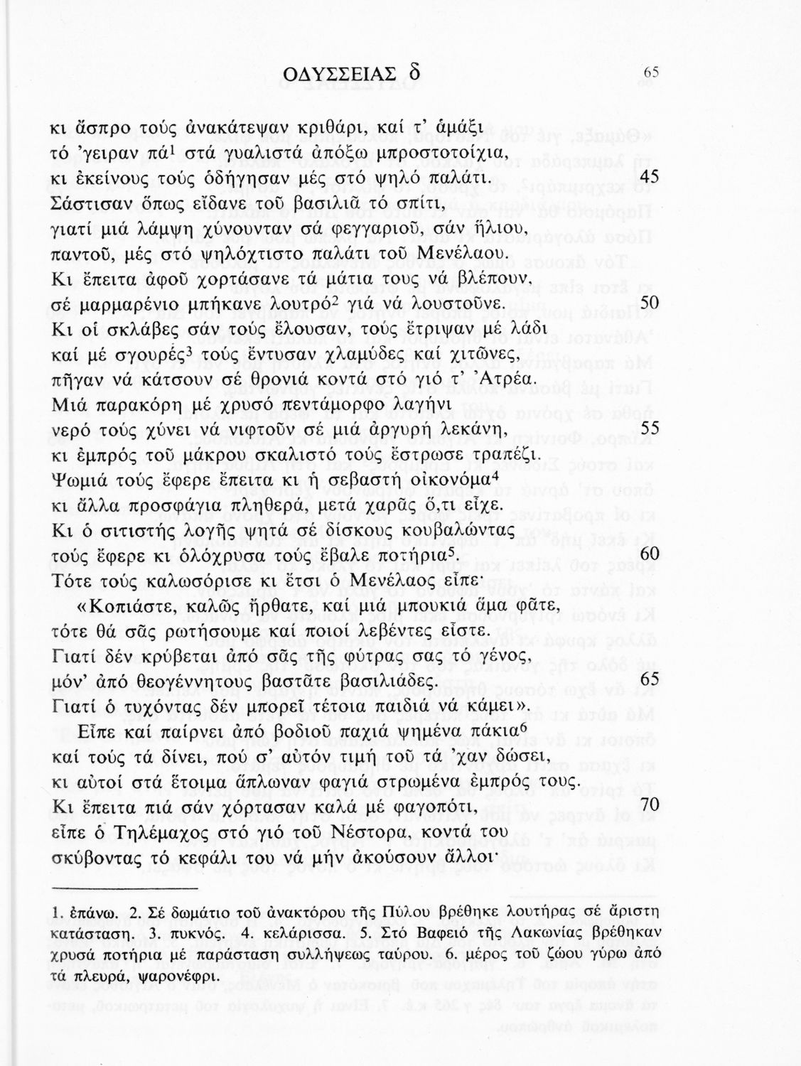 Σχολικό εγχειρίδιο Αρχαίων Ελληνικών. Το βιβλίο περιλαμβάνει εισαγωγή σχετικά με το έργο του Ομήρου, τη δομή και το περιεχόμενο της Οδύσσειας. Ακολουθεί το έπος της Οδύσσειας σε μετάφραση του Ζήσιμου Σιδέρη. Τα κείμενα συνοδεύουν ερμηνευτικές υποσημειώσεις και σχόλια. Η εισαγωγή και τα σχόλια είναι του Γεν. Επιθεωρητή Τριαντ. Ι. Δελή. Η ορθογραφική προσαρμογή της μετάφρασης έγινε από το Γεν. Επιθ. Κ. Μικρούδη. Η επιλογή των αγγειογραφιών έγινε με τη συνεργασία της αρχαιολόγου Ίριδας Ντούσκου και του Τριαντάφυλλου Ι. Δέλη.