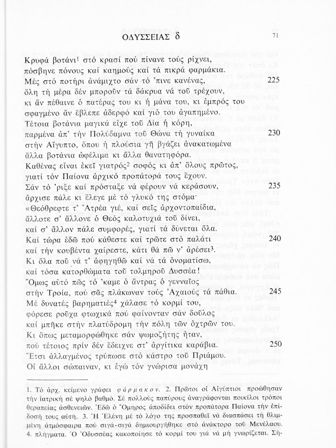 Βαθμίδα εκπαίδευσης: Δευτεροβάθμια Τάξη: Α' Γυμνασίου Μάθημα: Αρχαία Ελληνικά Γλώσσα: Δημοτική Παρουσίαση περιεχομένου: Σχολικό εγχειρίδιο Αρχαίων Ελληνικών. Το βιβλίο περιλαμβάνει εισαγωγή σχετικά με το έργο του Ομήρου, τη δομή και το περιεχόμενο της Οδύσσειας. Ακολουθεί το έπος της Οδύσσειας σε μετάφραση του Ζήσιμου Σιδέρη. Τα κείμενα συνοδεύουν ερμηνευτικές υποσημειώσεις και σχόλια. Η εισαγωγή και τα σχόλια είναι του Γεν. Επιθεωρητή Τριαντ. Ι. Δελή. Η ορθογραφική προσαρμογή της μετάφρασης έγινε από το Γεν. Επιθ. Κ. Μικρούδη. Η επιλογή των αγγειογραφιών έγινε με τη συνεργασία της αρχαιολόγου Ίριδας Ντούσκου και του Τριαντάφυλλου Ι. Δέλη. |