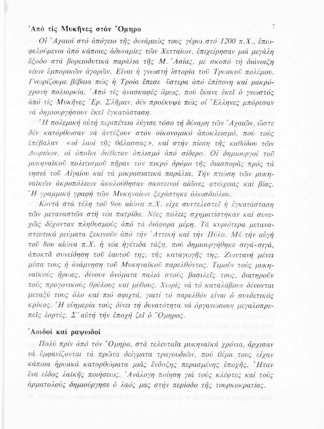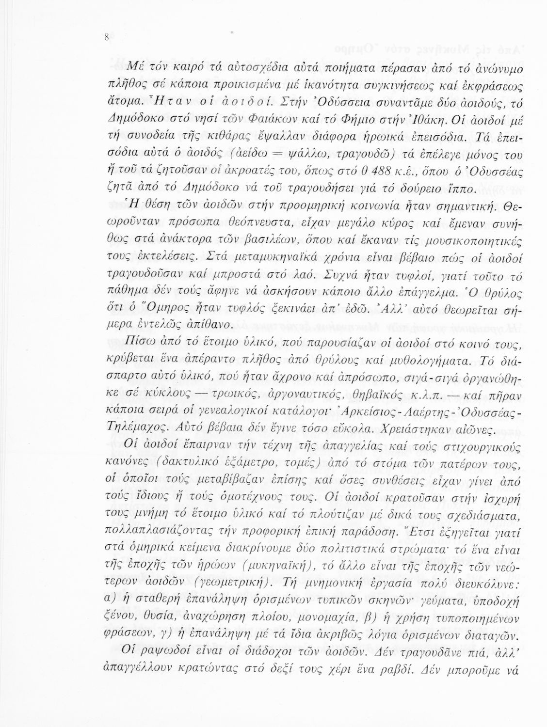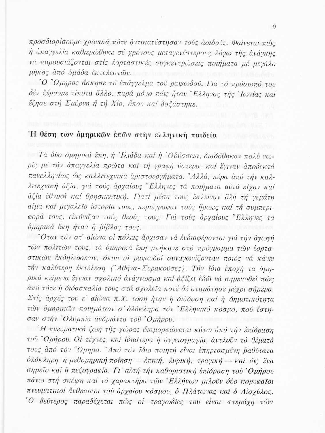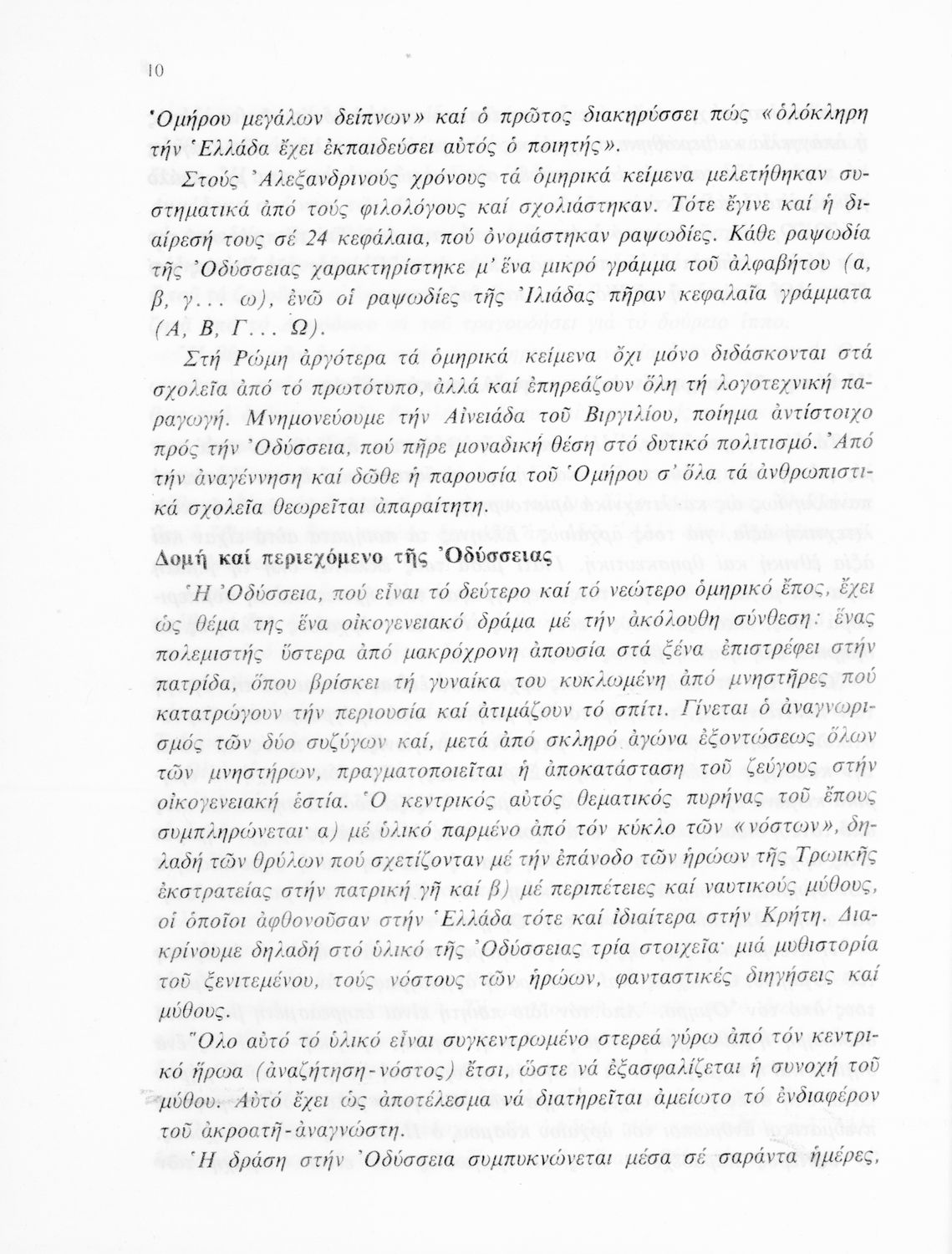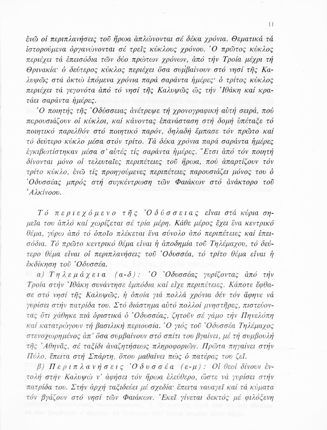Σχολικό εγχειρίδιο Αρχαίων Ελληνικών Γυμνασίου που περιλαμβάνει αποσπάσματα από τις ραψωδίες της Οδύσσειας, ερμηνευτικά και πραγματολογικά σχόλια, και λεξιλογικές παρατηρήσεις.