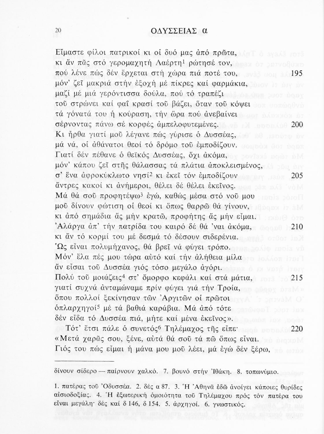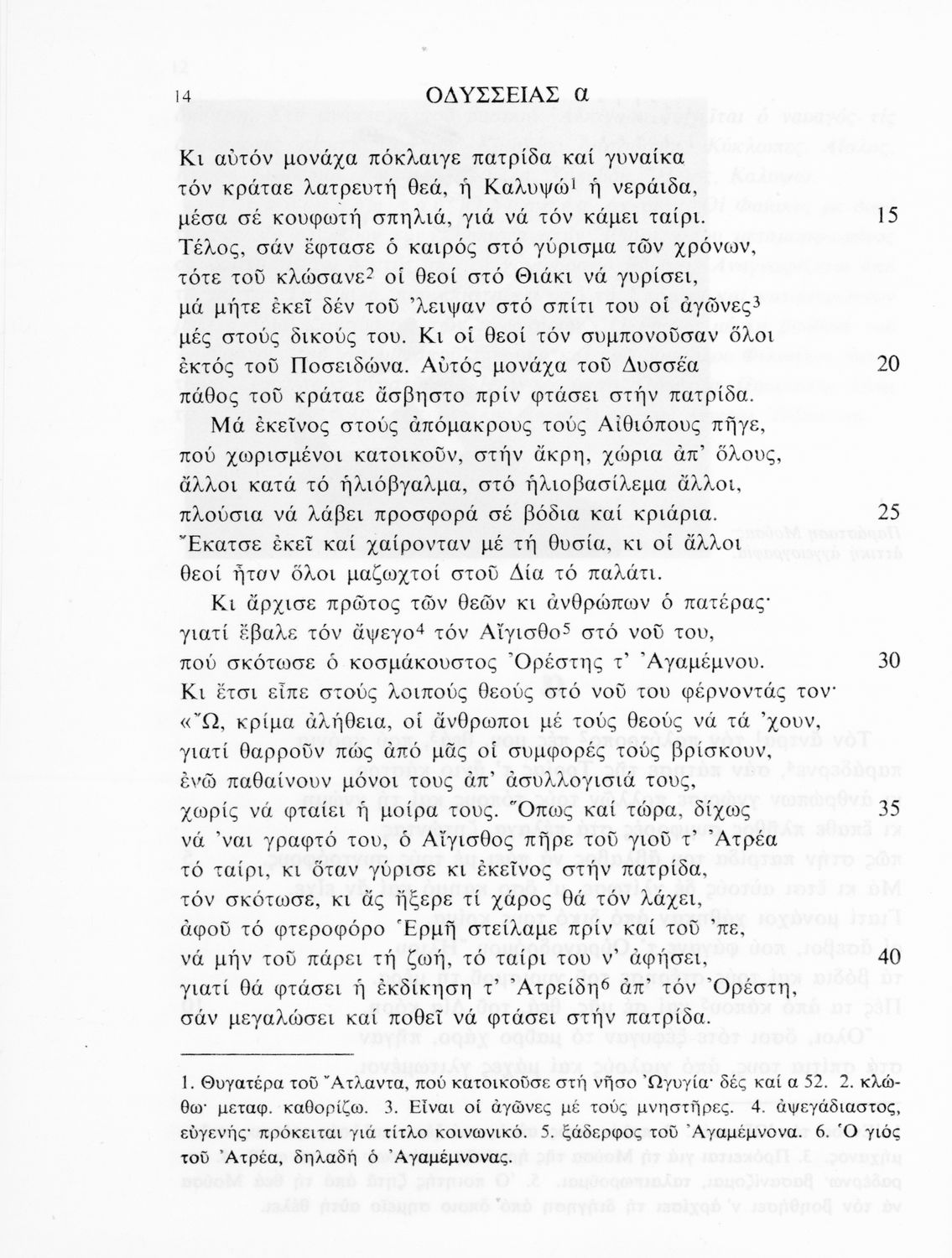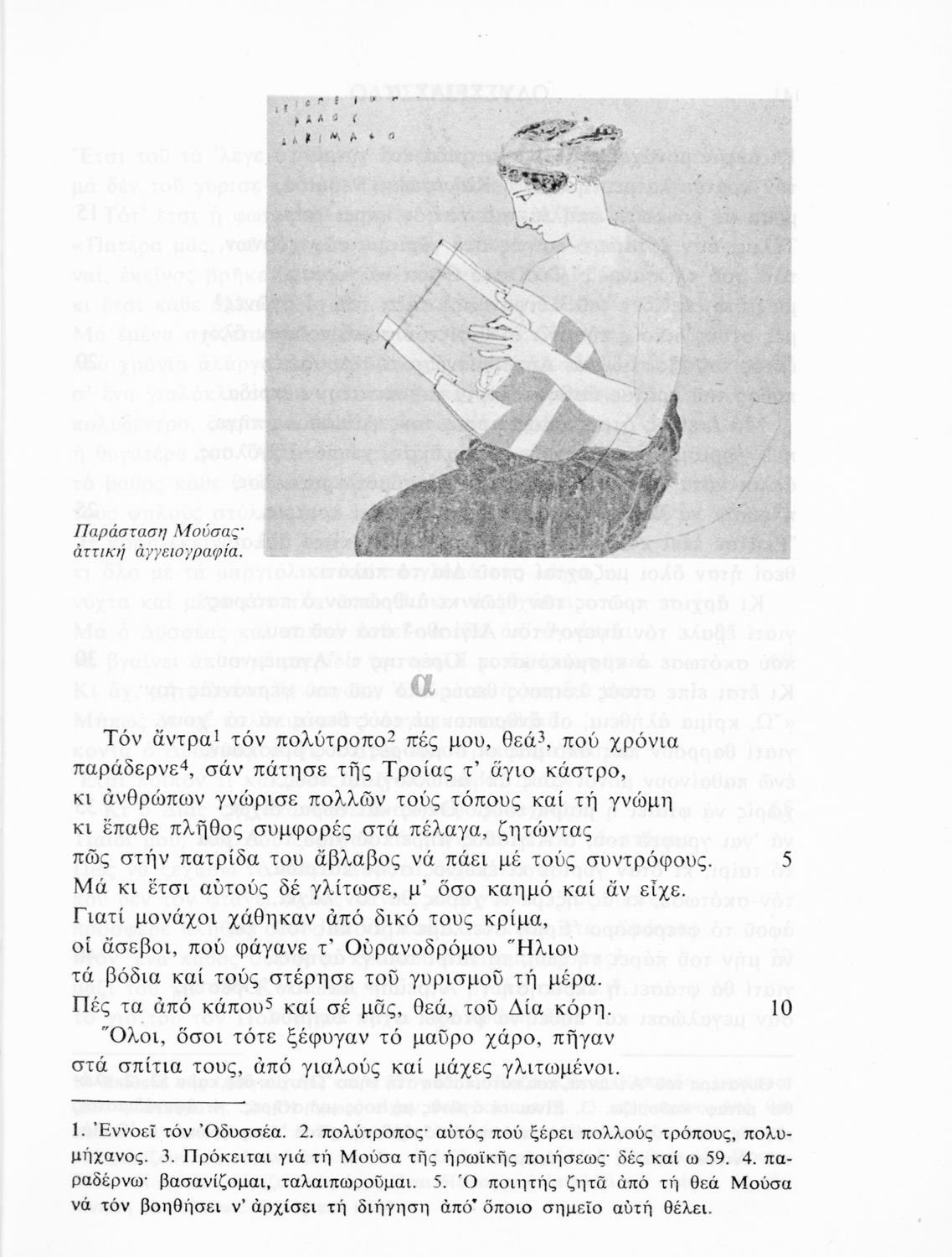 Σχολικό εγχειρίδιο Αρχαίων Ελληνικών για τις τάξεις του Γυμνασίου. Βιβλίο Οδύσσειας του Ομήρου για το Γυμνάσιο. Το προοίμιο αναφέρεται στο πρωτότυπο κείμενο. Η μετάφραση είναι έμμετρη.