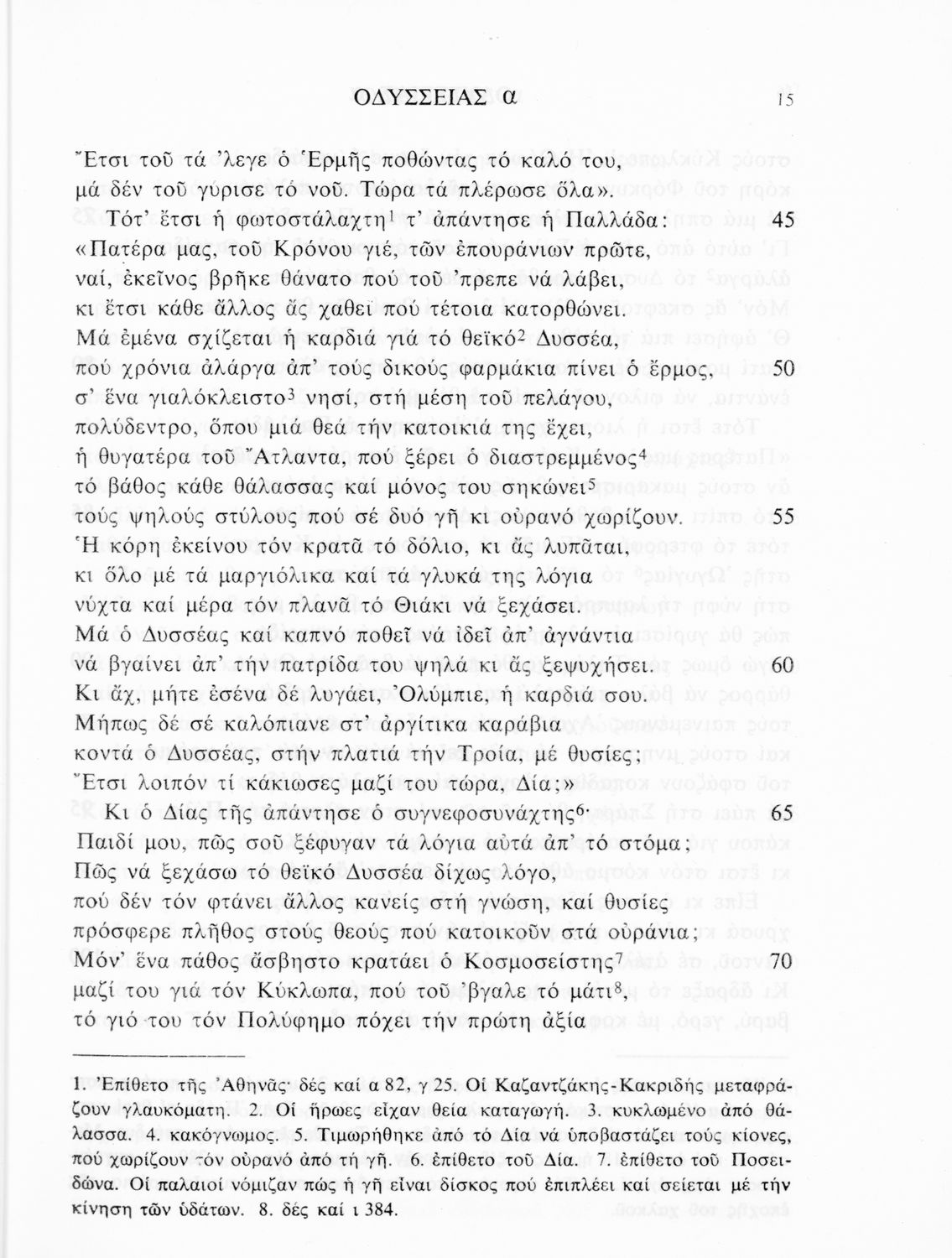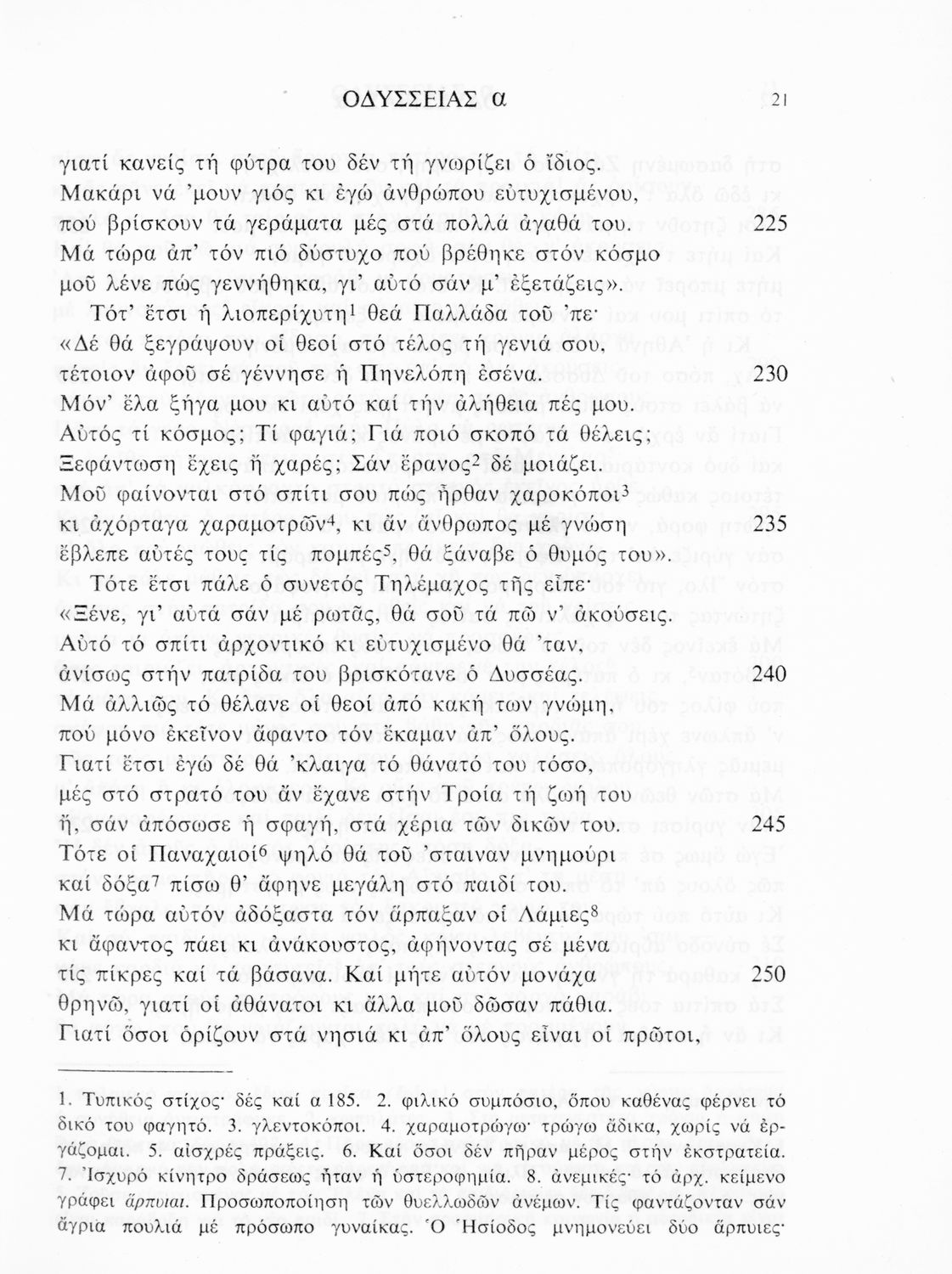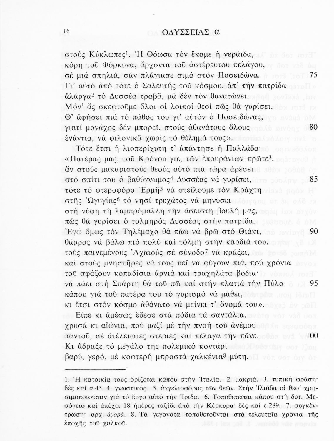 Σχολικό εγχειρίδιο Αρχαίων Ελληνικών για τις τάξεις του Γυμνασίου. Βιβλίο Οδύσσειας του Ομήρου για το Γυμνάσιο. Το προοίμιο αναφέρεται στο πρωτότυπο κείμενο. Η μετάφραση είναι έμμετρη.