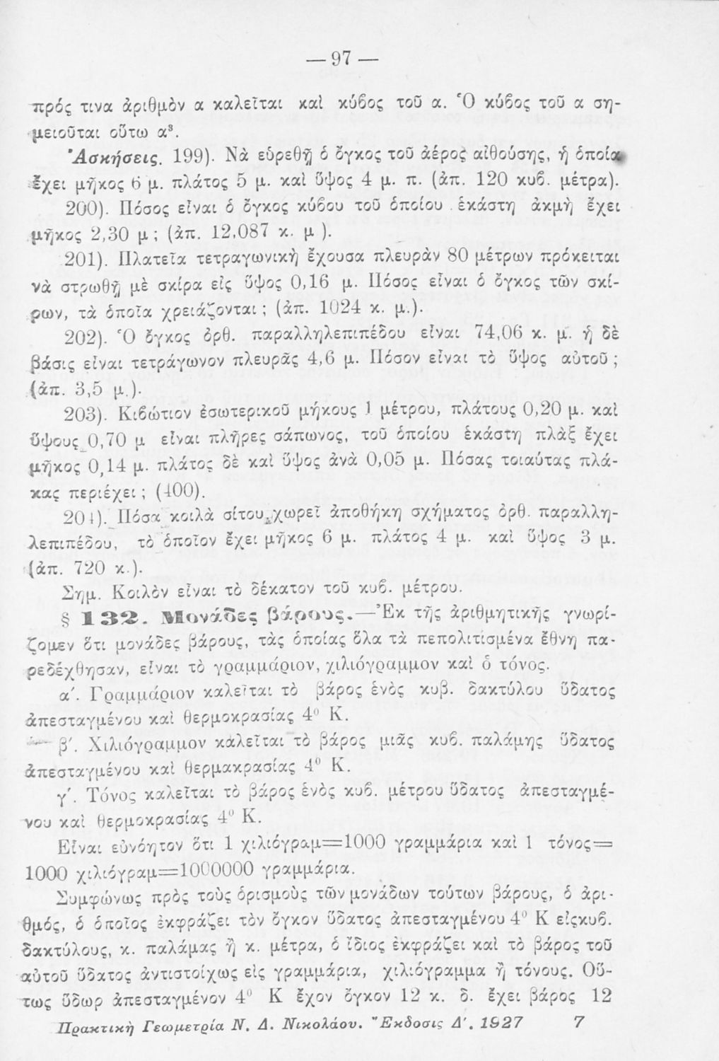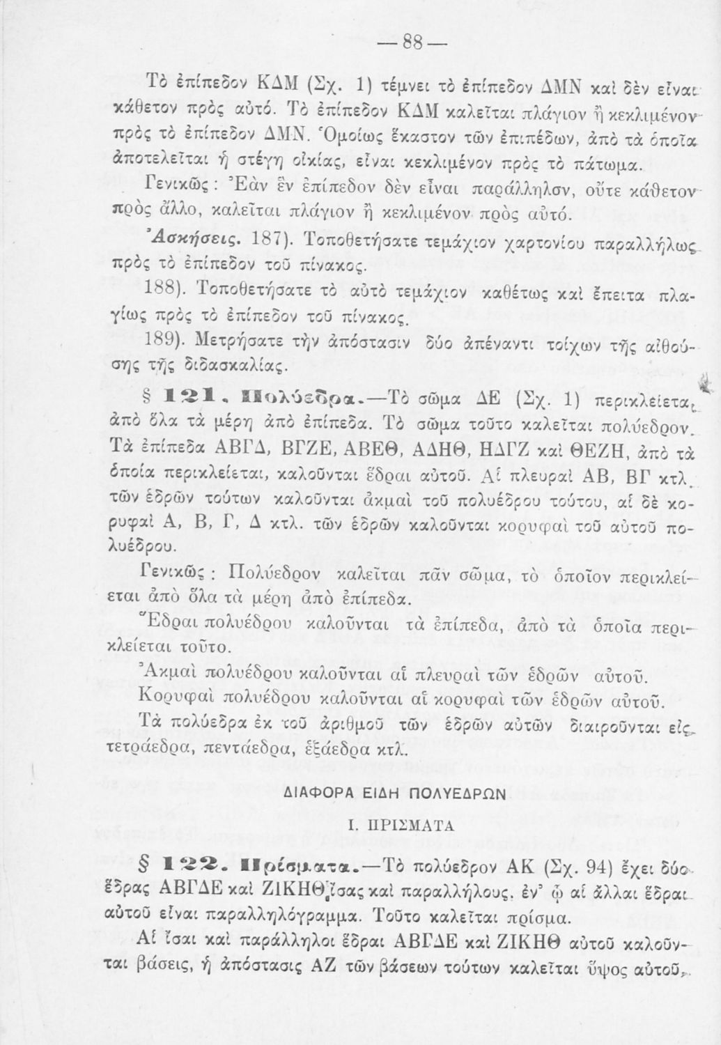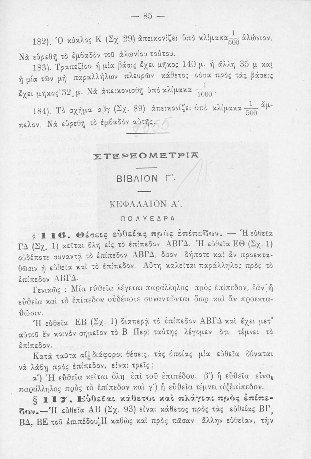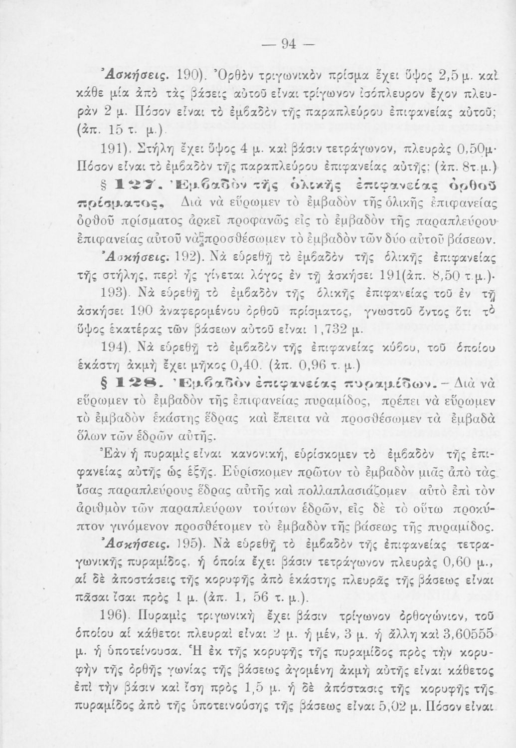 Σχολικό εγχειρίδιο Γεωμετρίας για τα Ελληνικά και Αστικά Σχολεία που περιέχει θεωρία και ασκήσεις και είναι χωρισμένο σε Επιπεδομετρία και Στερεομετρία.
