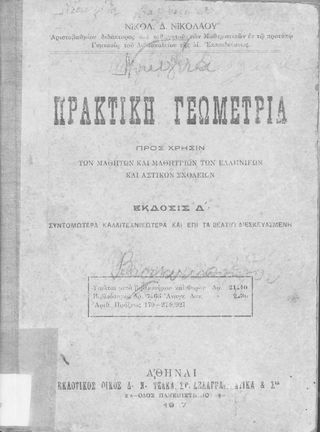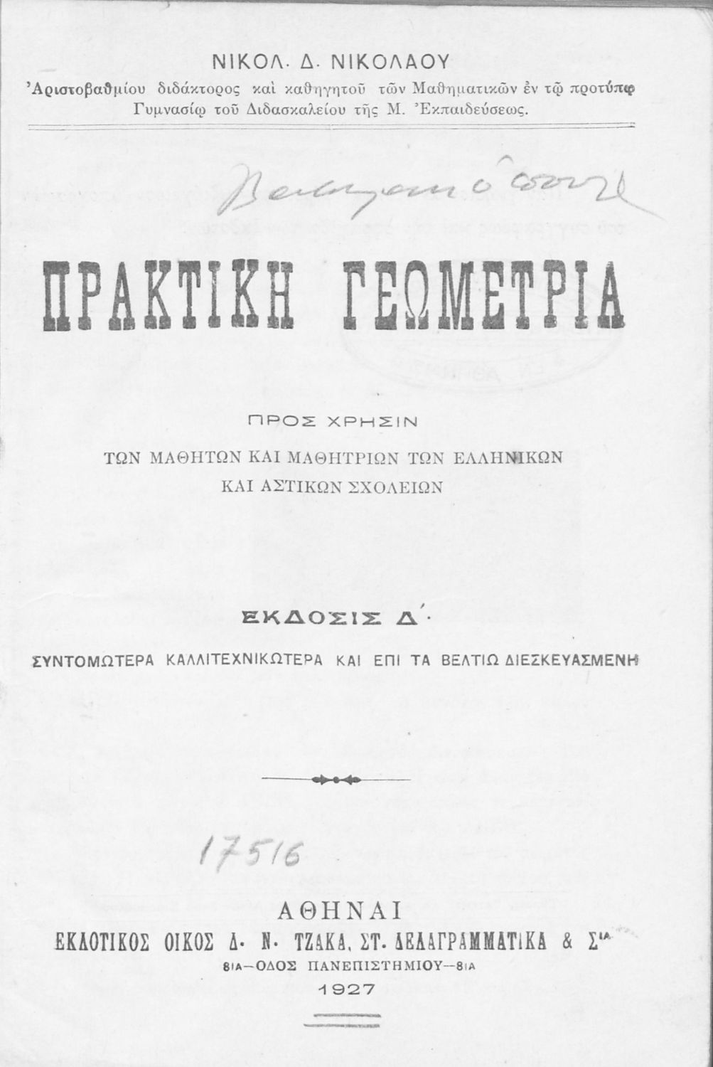 Τίτλος: Πρακτική γεωμετρία προς χρήσιν των μαθητών και μαθητριών των Ελληνικών και Αστικών Σχολείων
