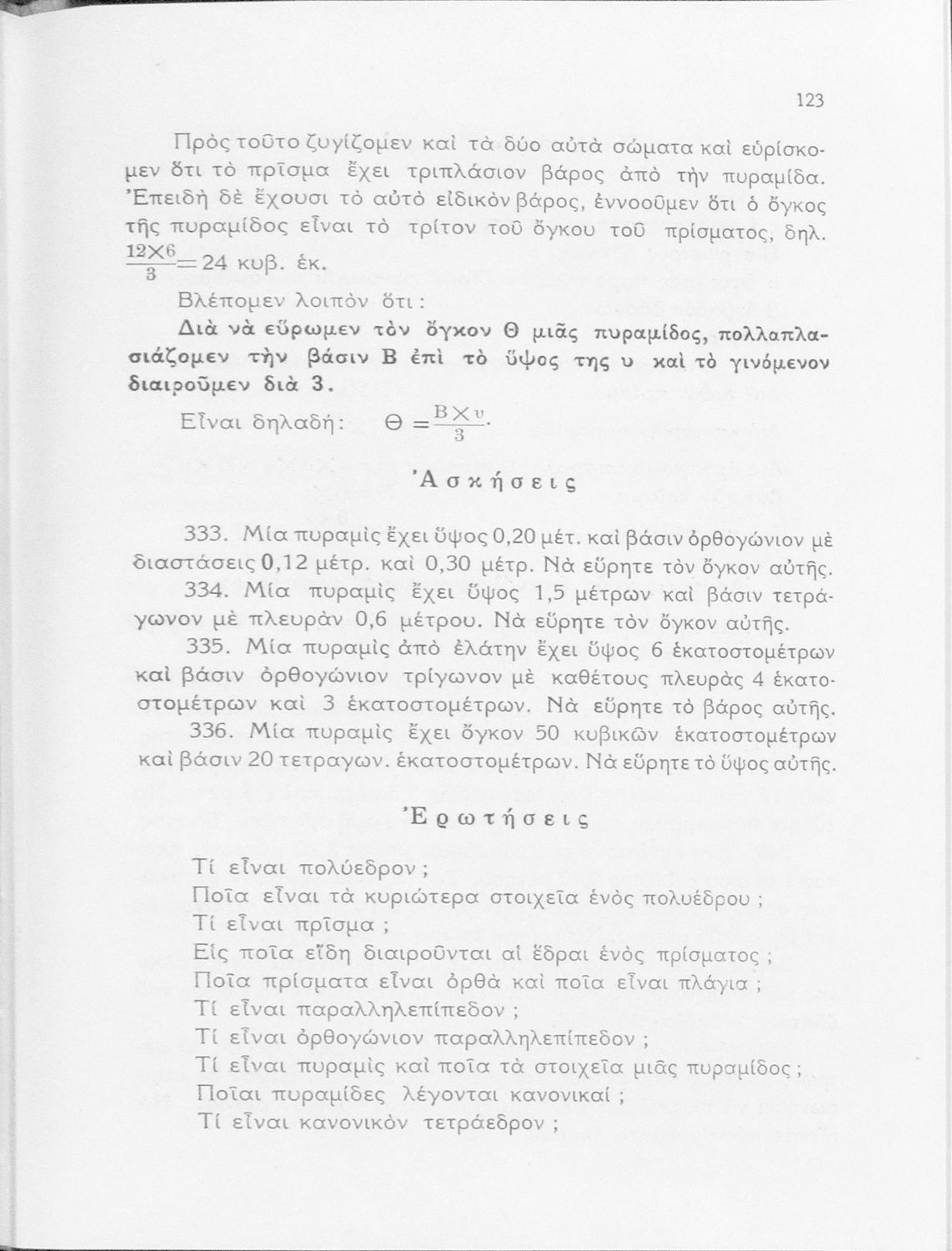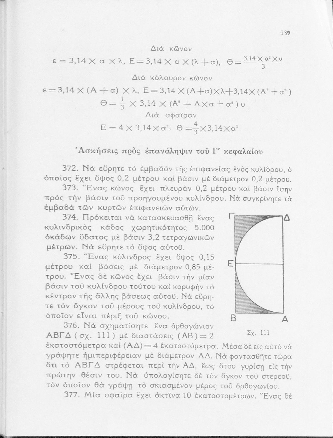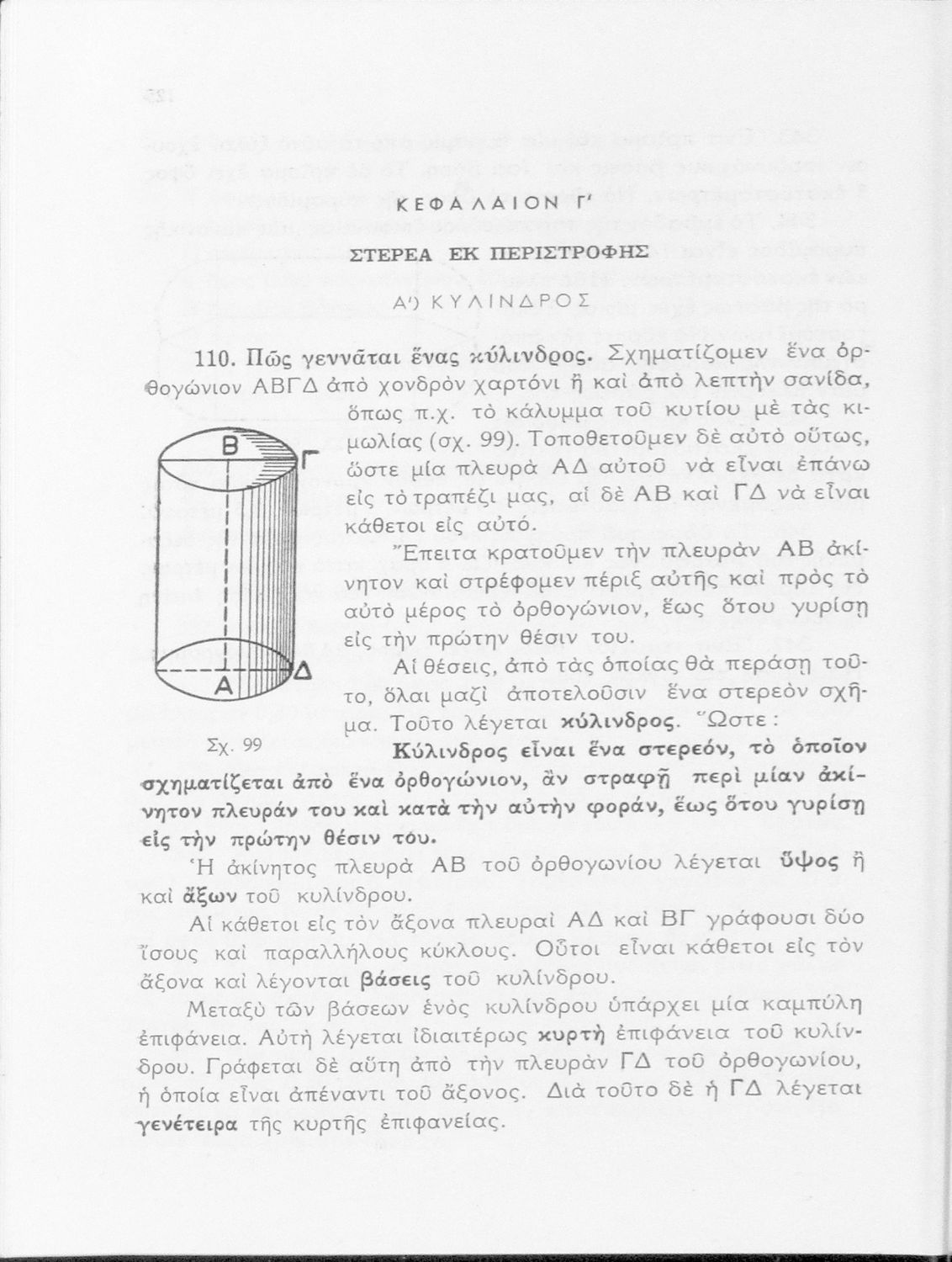 Σχολικό εγχειρίδιο Γεωμετρίας για τα Γυμνάσια και Αστικά Σχολεία που περιλαμβάνει θεωρία και ασκήσεις και είναι χωρισμένο σε Επιπεδομετρία και Στερεομετρία.