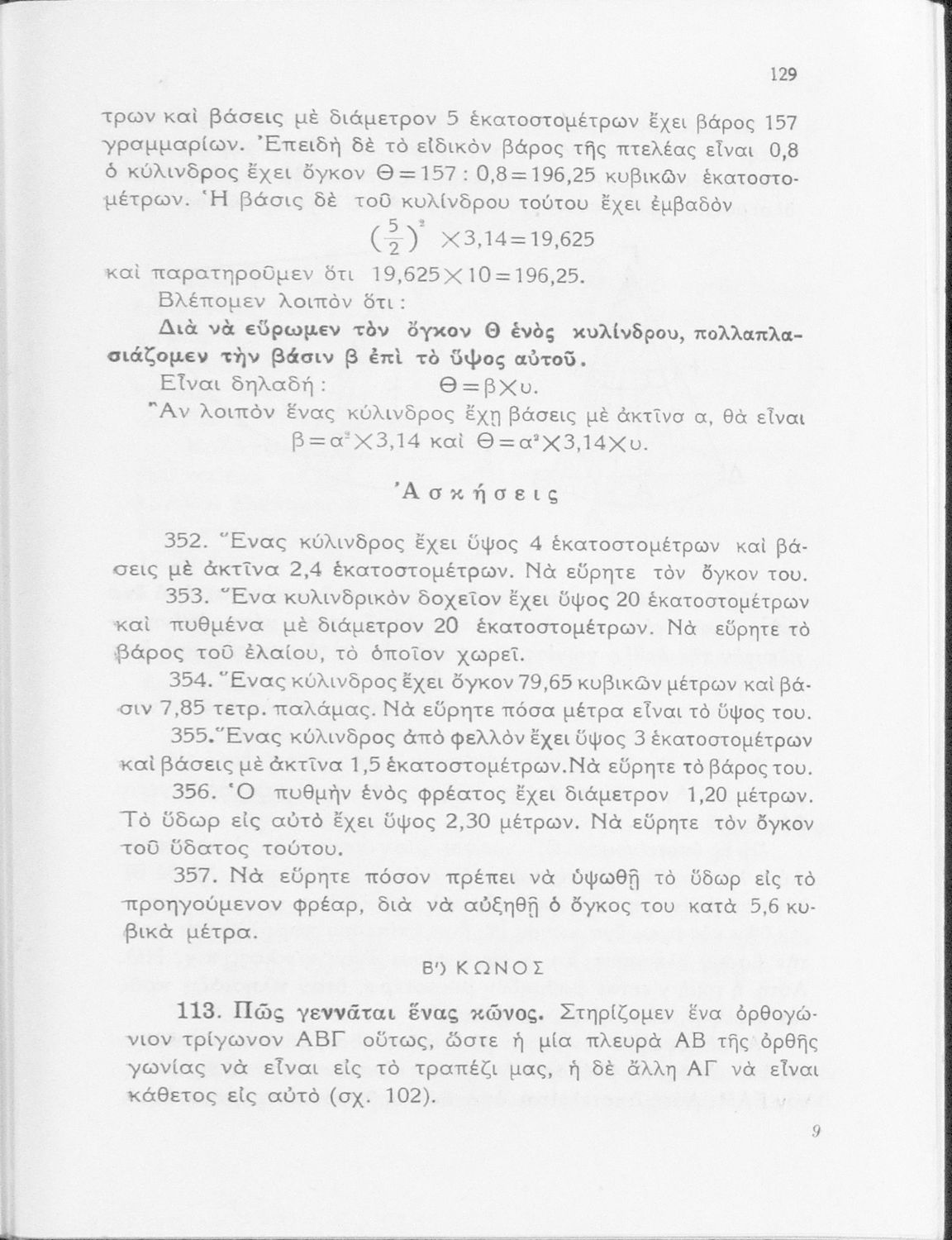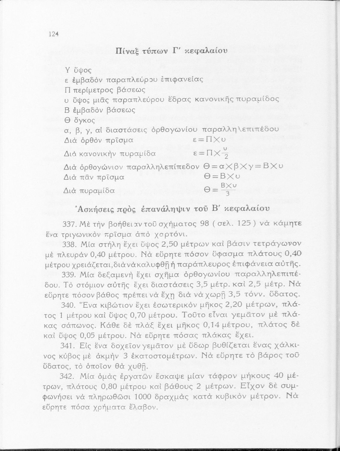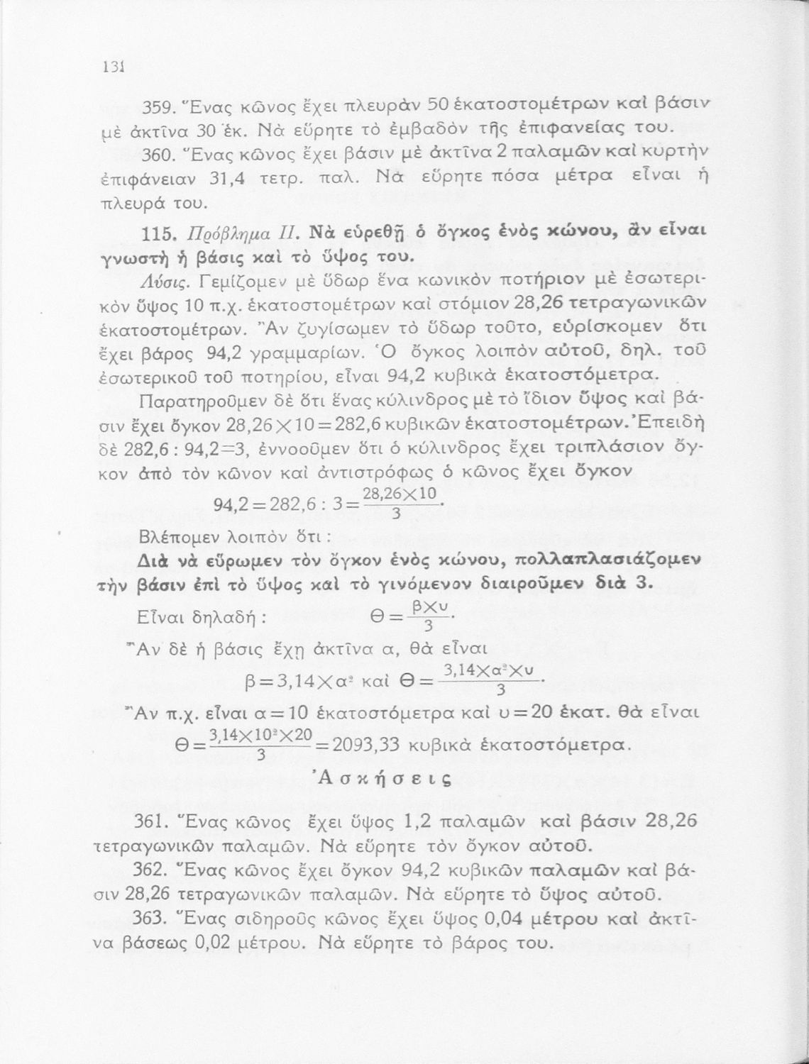 Σχολικό εγχειρίδιο Γεωμετρίας για τα Γυμνάσια και Αστικά Σχολεία που περιλαμβάνει θεωρία και ασκήσεις και είναι χωρισμένο σε Επιπεδομετρία και Στερεομετρία.