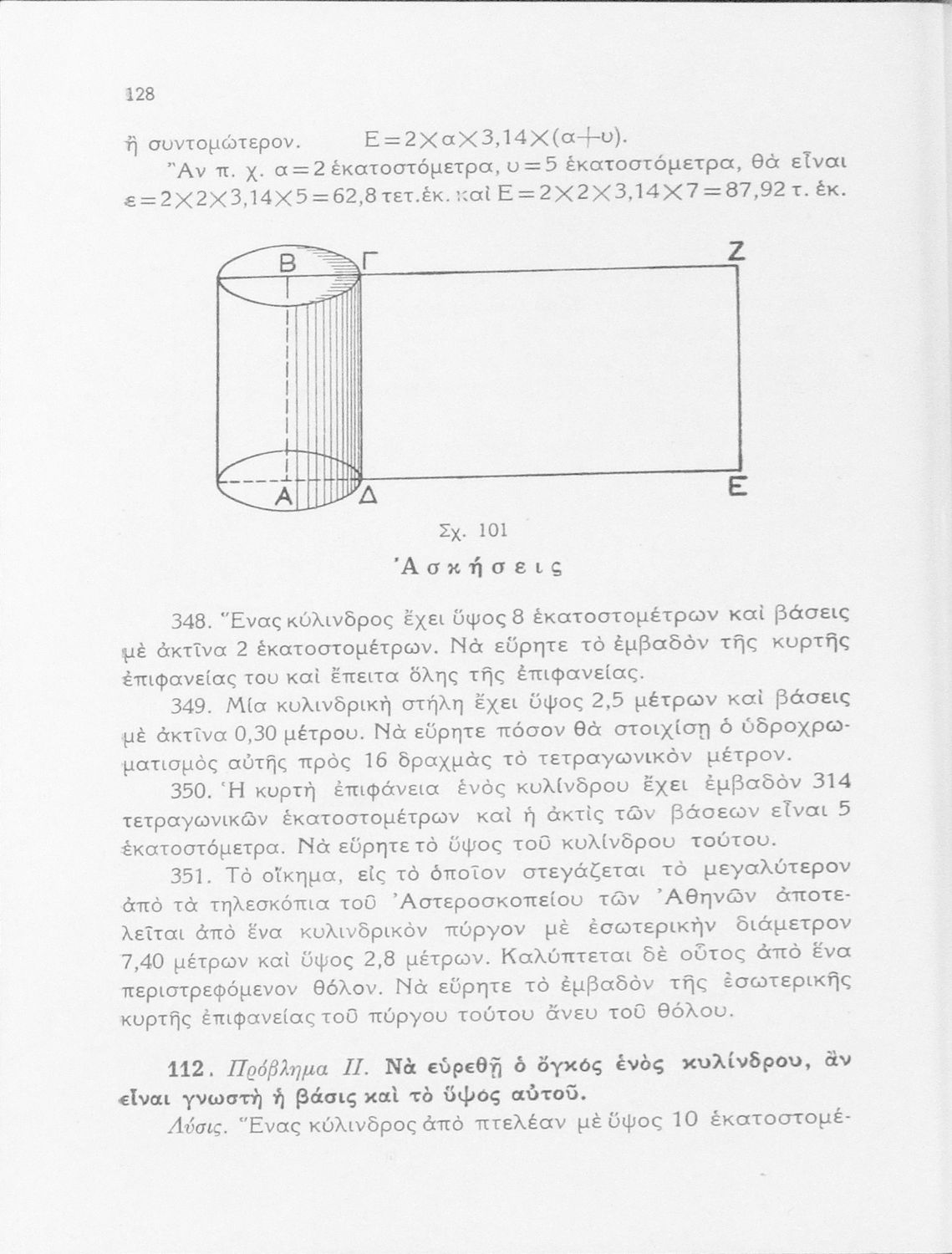 Σχολικό εγχειρίδιο Γεωμετρίας για τα Γυμνάσια και τα Αστικά Σχολεία που είναι χωρισμένο σε Επιπεδομετρία και Στερεομετρία και περιλαμβάνει θεωρία και ασκήσεις.