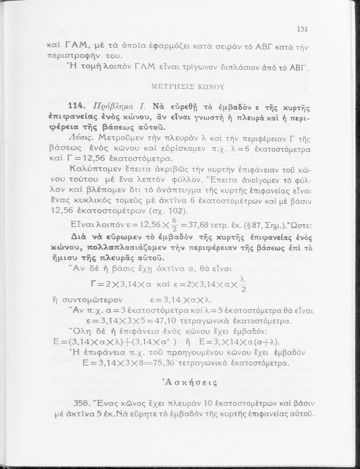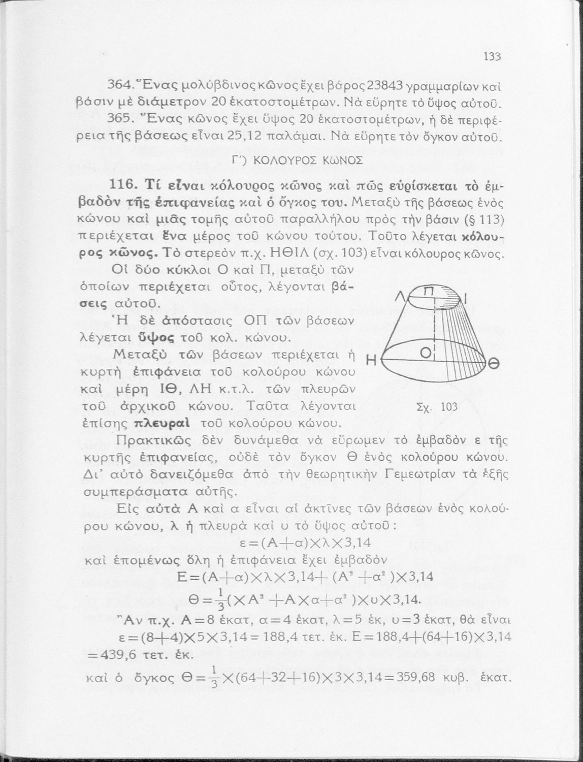 Σχολικό εγχειρίδιο Γεωμετρίας Γυμνασίων και Αστικών Σχολείων χωρισμένο σε Επιπεδομετρία και Στερεομετρία. Περιλαμβάνει και στοιχεία Χωρομετρίας.