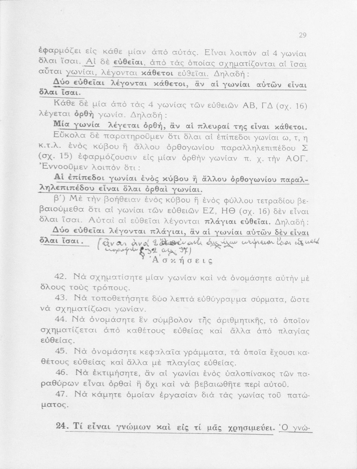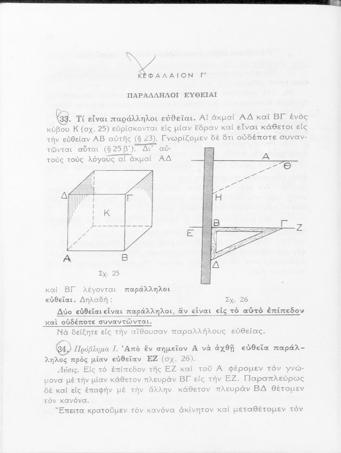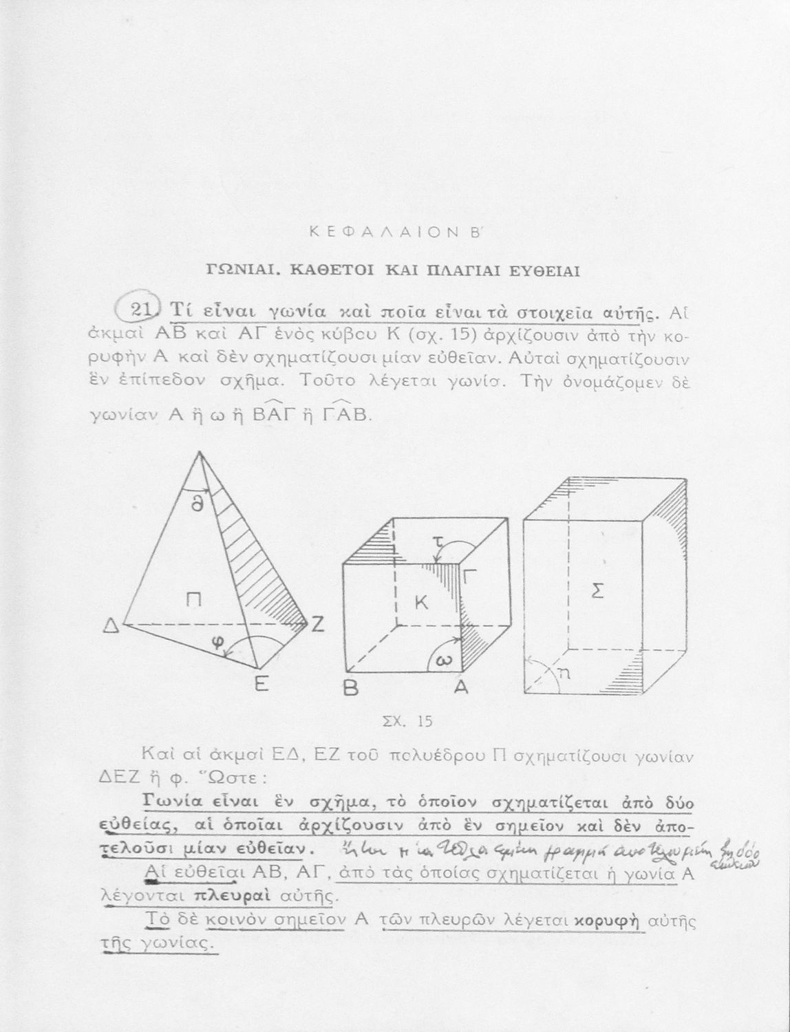 Σχολικό εγχειρίδιο Γεωμετρίας για τα Γυμνάσια και Αστικά Σχολεία που περιλαμβάνει θεωρία και ασκήσεις και είναι χωρισμένο σε Επιπεδομετρία και Στερεομετρία.