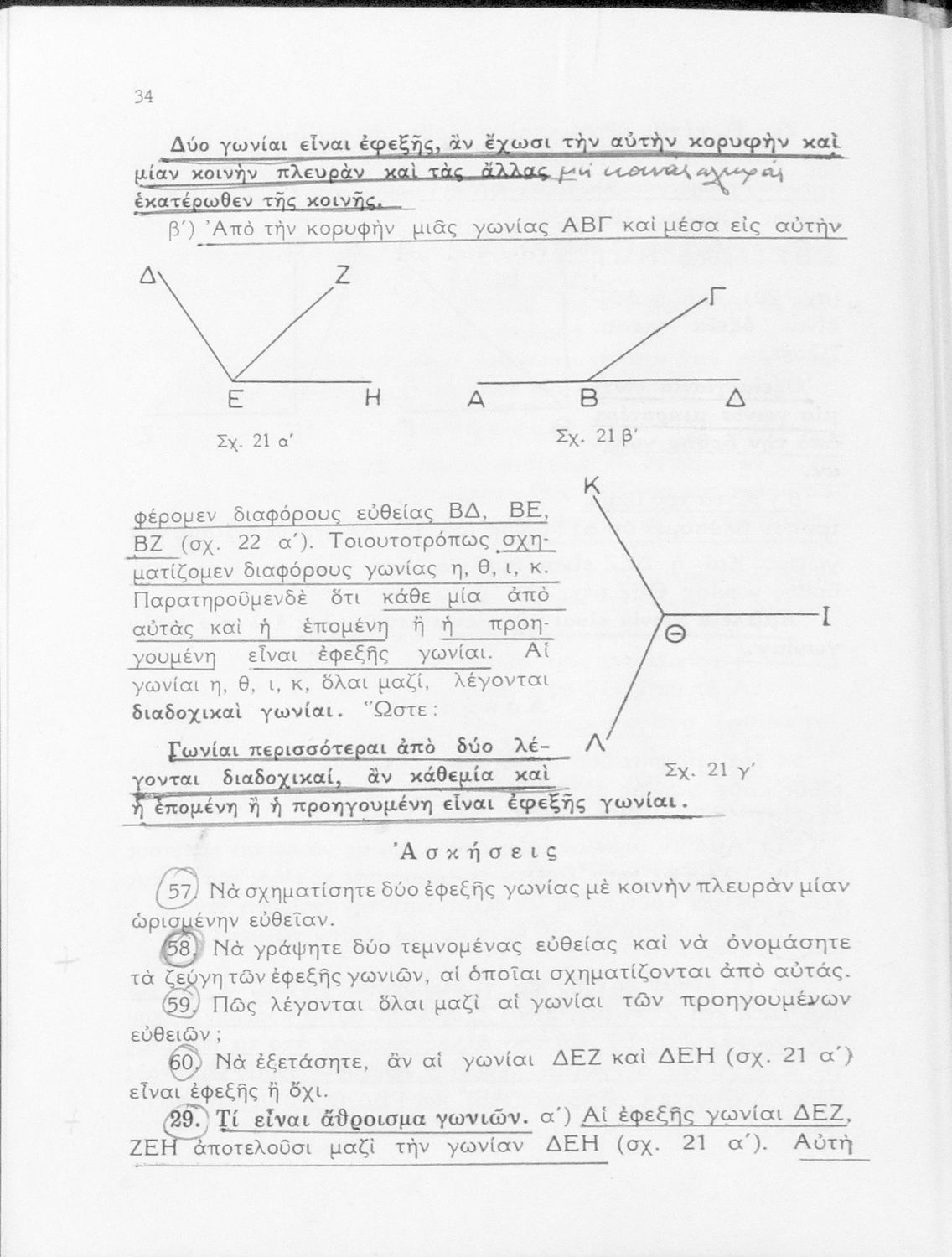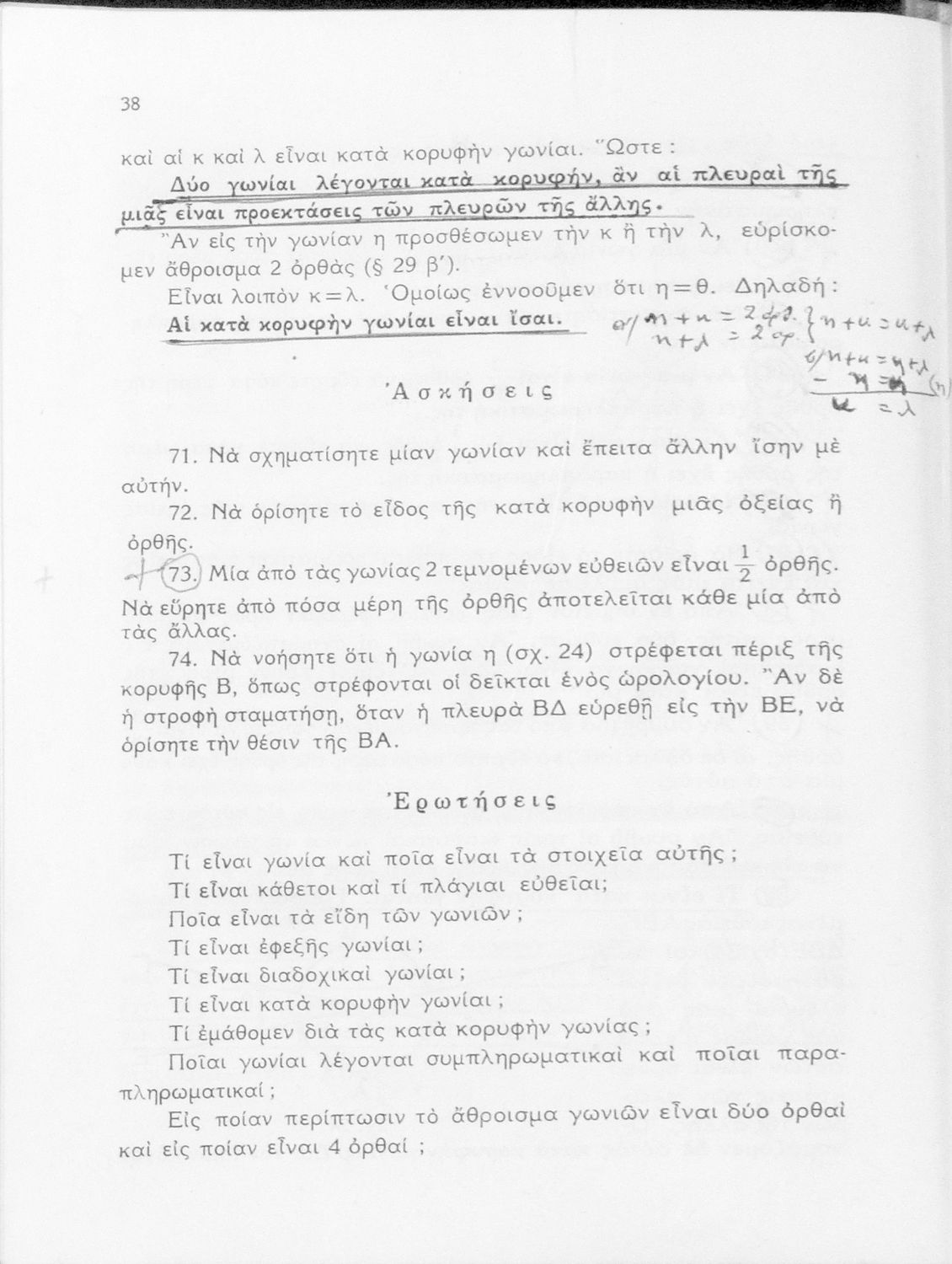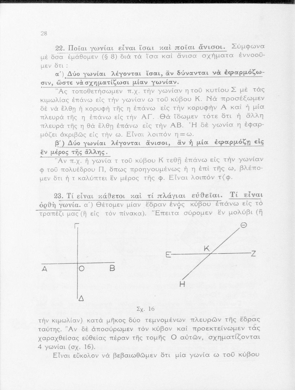 Σχολικό εγχειρίδιο Γεωμετρίας για τα Γυμνάσια και Αστικά Σχολεία που περιλαμβάνει θεωρία και ασκήσεις και είναι χωρισμένο σε Επιπεδομετρία και Στερεομετρία.
