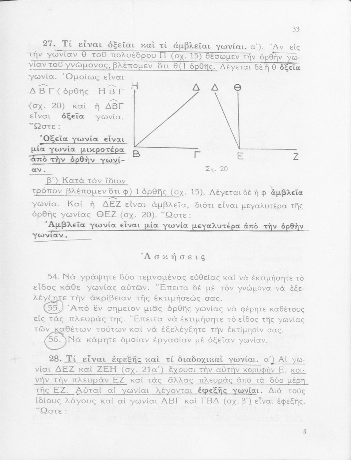 Σχολικό εγχειρίδιο των κατωτέρων τάξεων του Γυμνασίου για το μάθημα της Γεωμετρίας. Το εγχειρίδιο αποτελείται από την εισαγωγή, όπου αναλύονται οι βασικές έννοιες των ιδιοτήτων και γνωρισμάτων των γεωμετρικών ...
