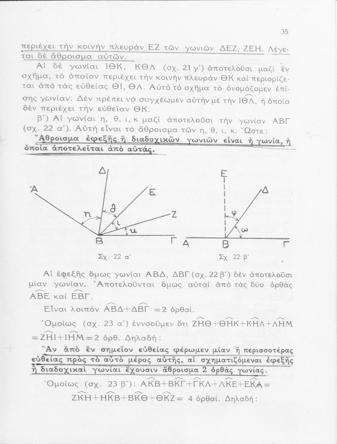 Σχολικό εγχειρίδιο Γεωμετρίας Γυμνασίων και Αστικών Σχολείων χωρισμένο σε Επιπεδομετρία και Στερεομετρία. Περιλαμβάνει και στοιχεία Χωρομετρίας.
