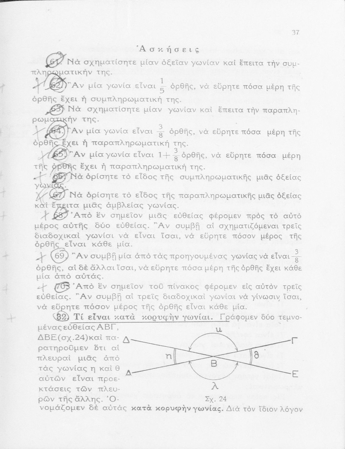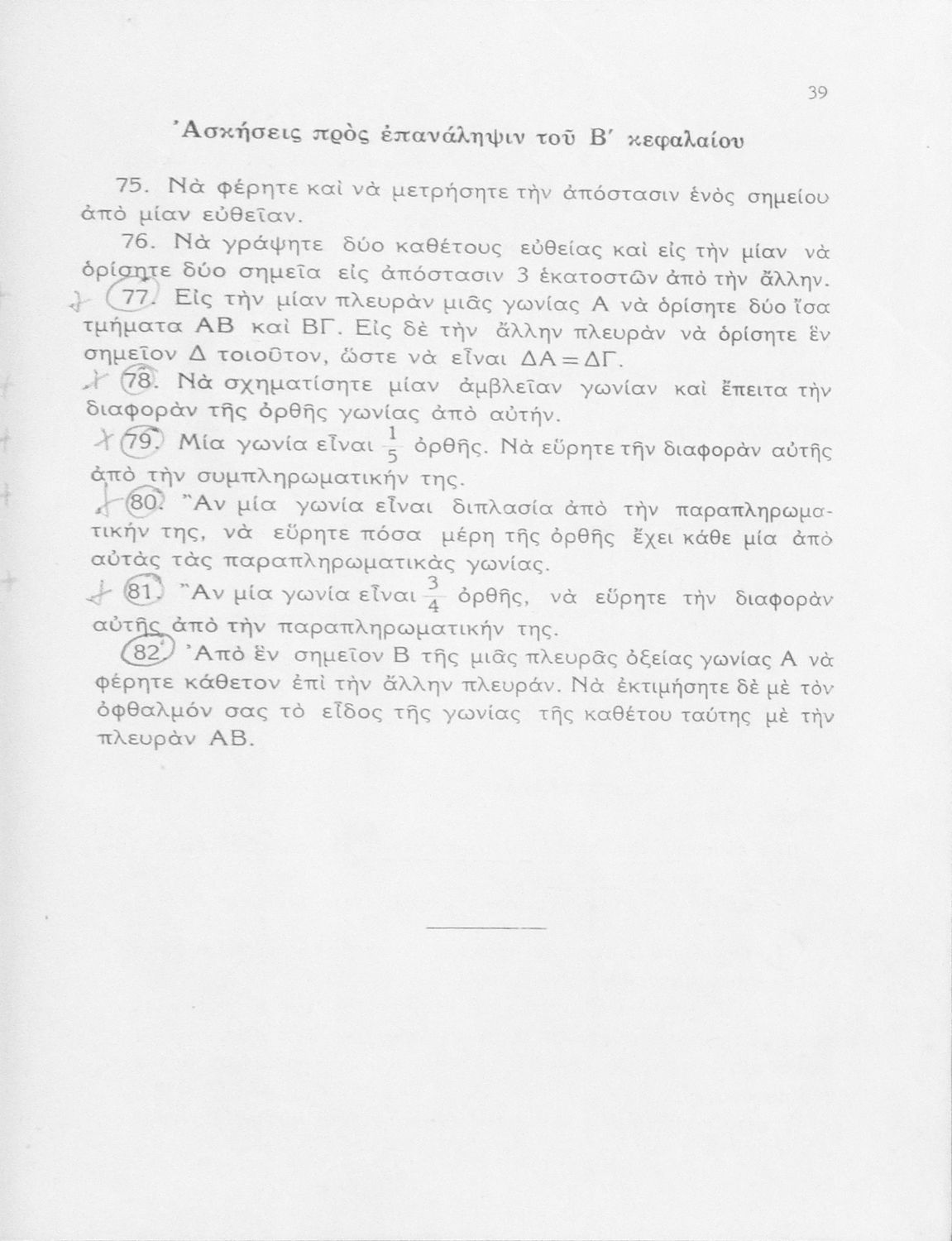 Σχολικό εγχειρίδιο Γεωμετρίας για τα Γυμνάσια και τα Αστικά Σχολεία που είναι χωρισμένο σε Επιπεδομετρία και Στερεομετρία και περιλαμβάνει θεωρία και ασκήσεις.