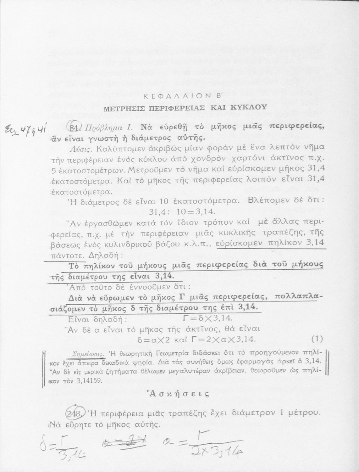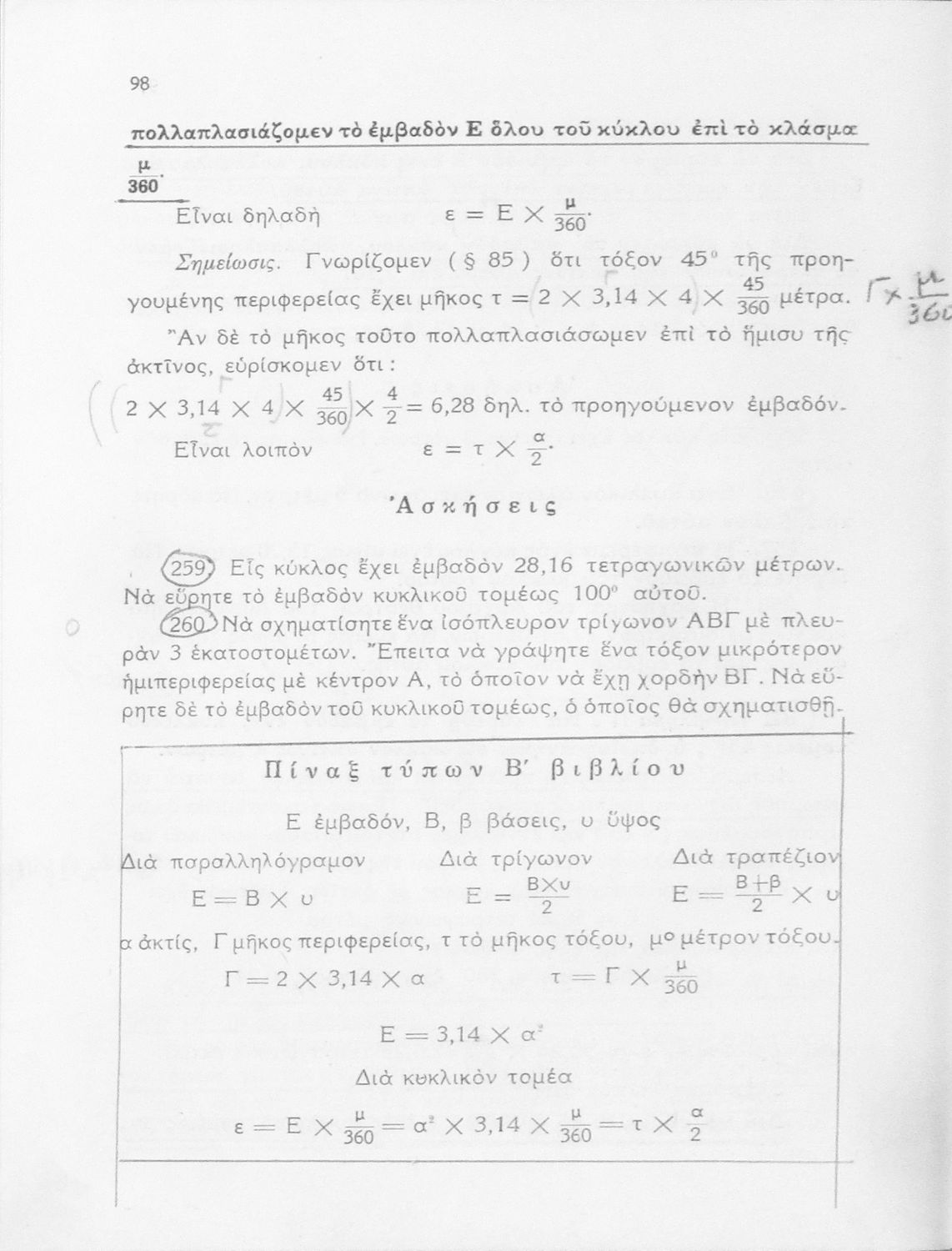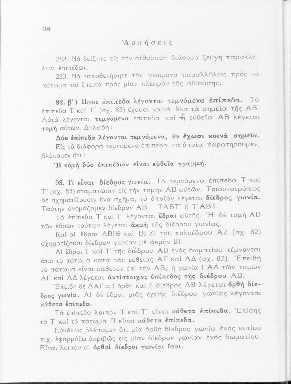 Σχολικό εγχειρίδιο Γεωμετρίας για τα Γυμνάσια και τα Αστικά Σχολεία που είναι χωρισμένο σε Επιπεδομετρία και Στερεομετρία και περιλαμβάνει θεωρία και ασκήσεις.