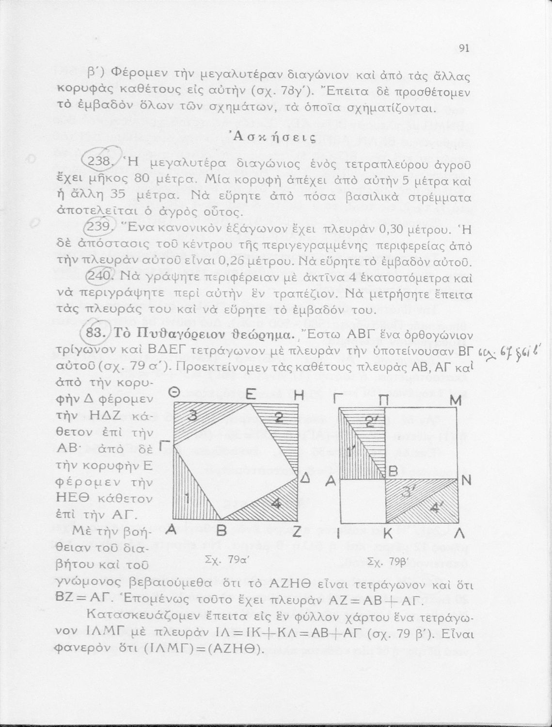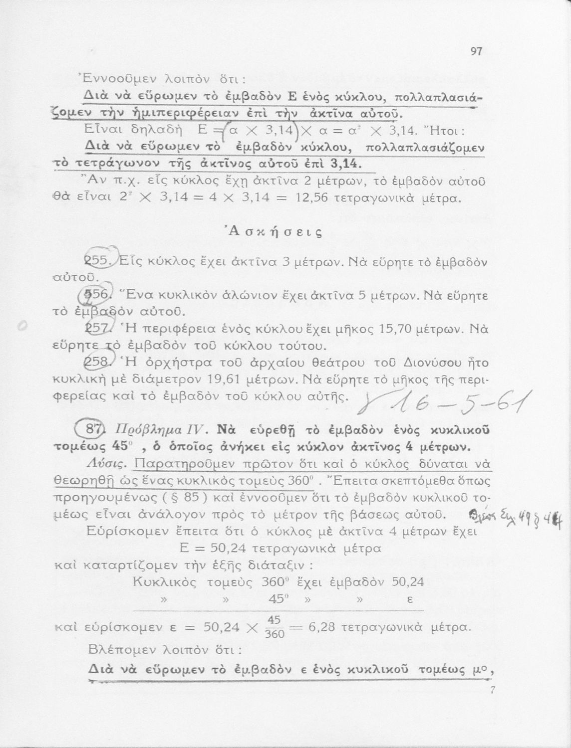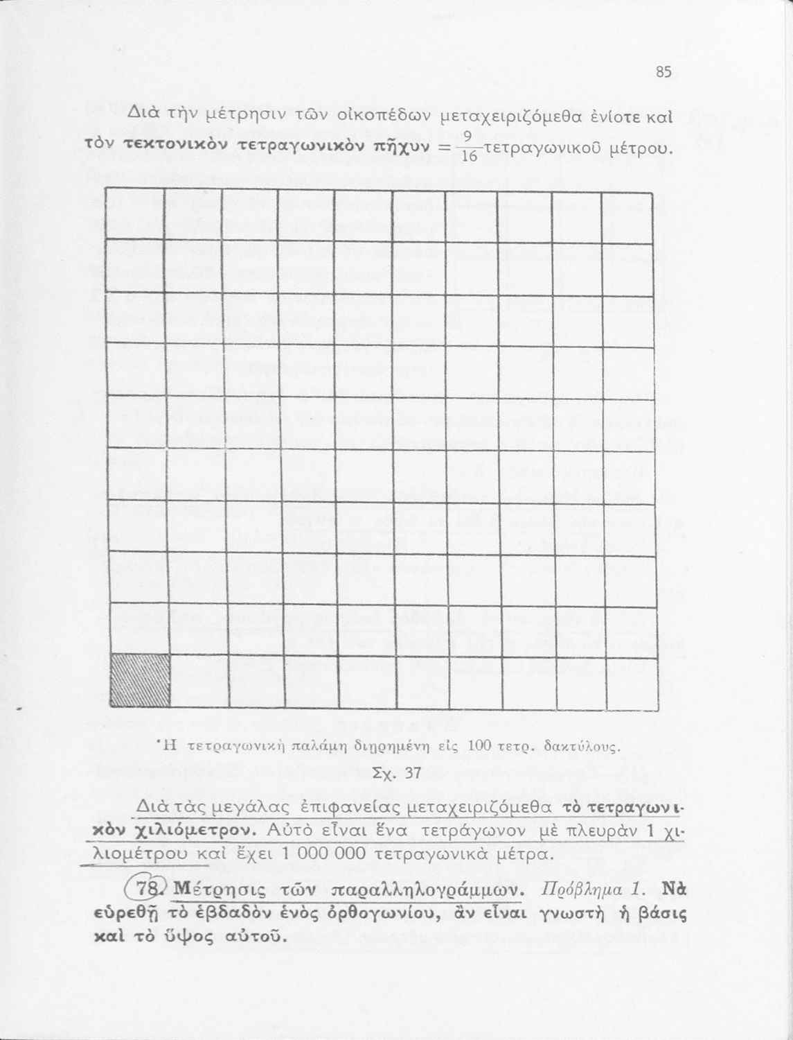Σχολικό εγχειρίδιο Γεωμετρίας για τα Γυμνάσια και τα Αστικά Σχολεία που είναι χωρισμένο σε Επιπεδομετρία και Στερεομετρία και περιλαμβάνει θεωρία και ασκήσεις.