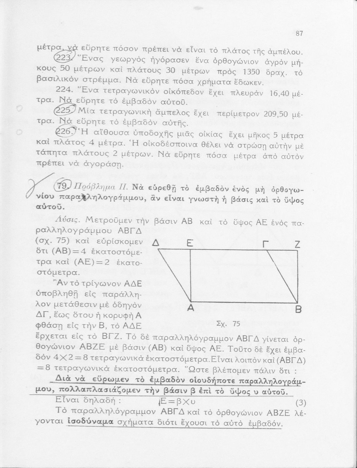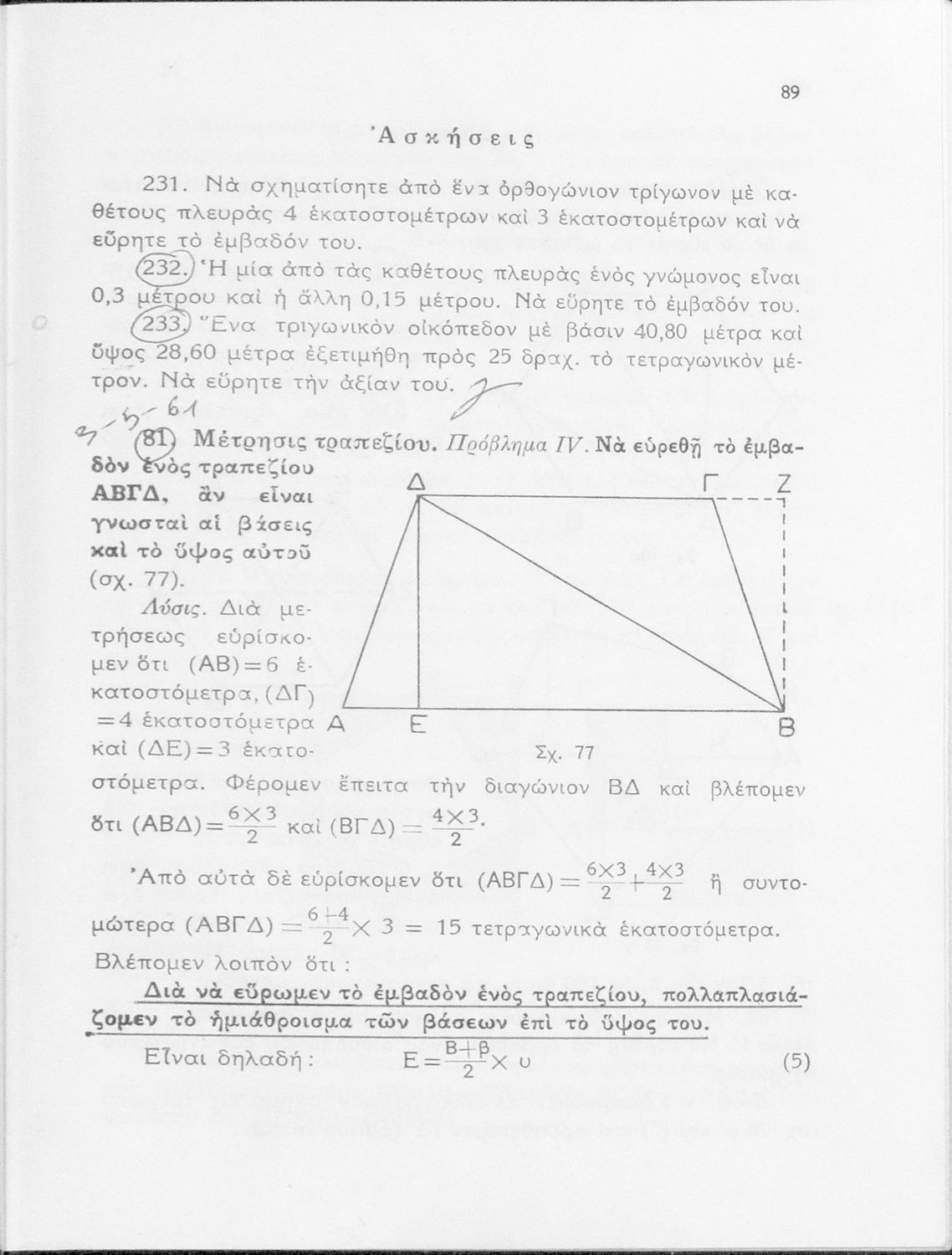 Σχολικό εγχειρίδιο Γεωμετρίας Γυμνασίων και Αστικών Σχολείων χωρισμένο σε Επιπεδομετρία και Στερεομετρία. Περιλαμβάνει και στοιχεία Χωρομετρίας.